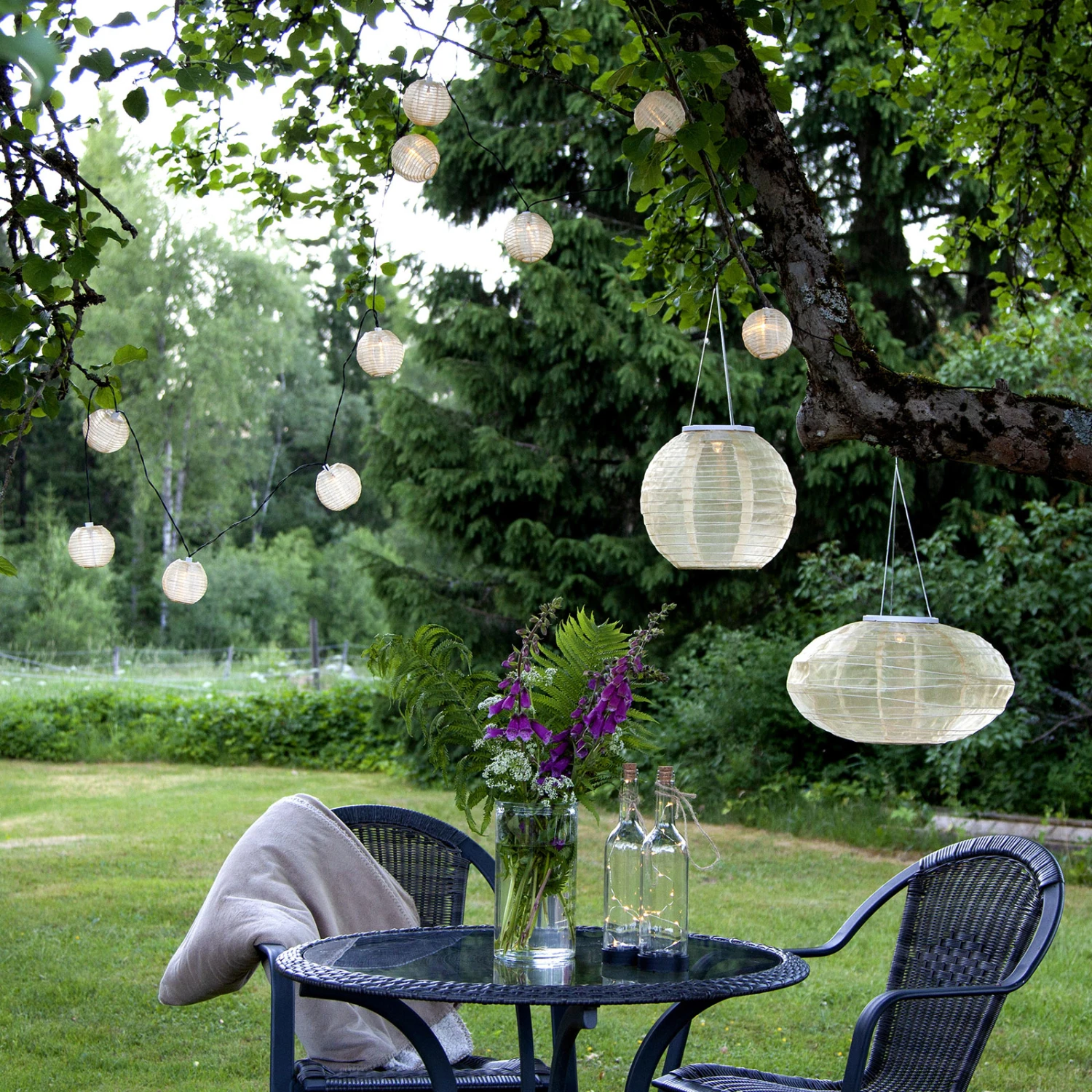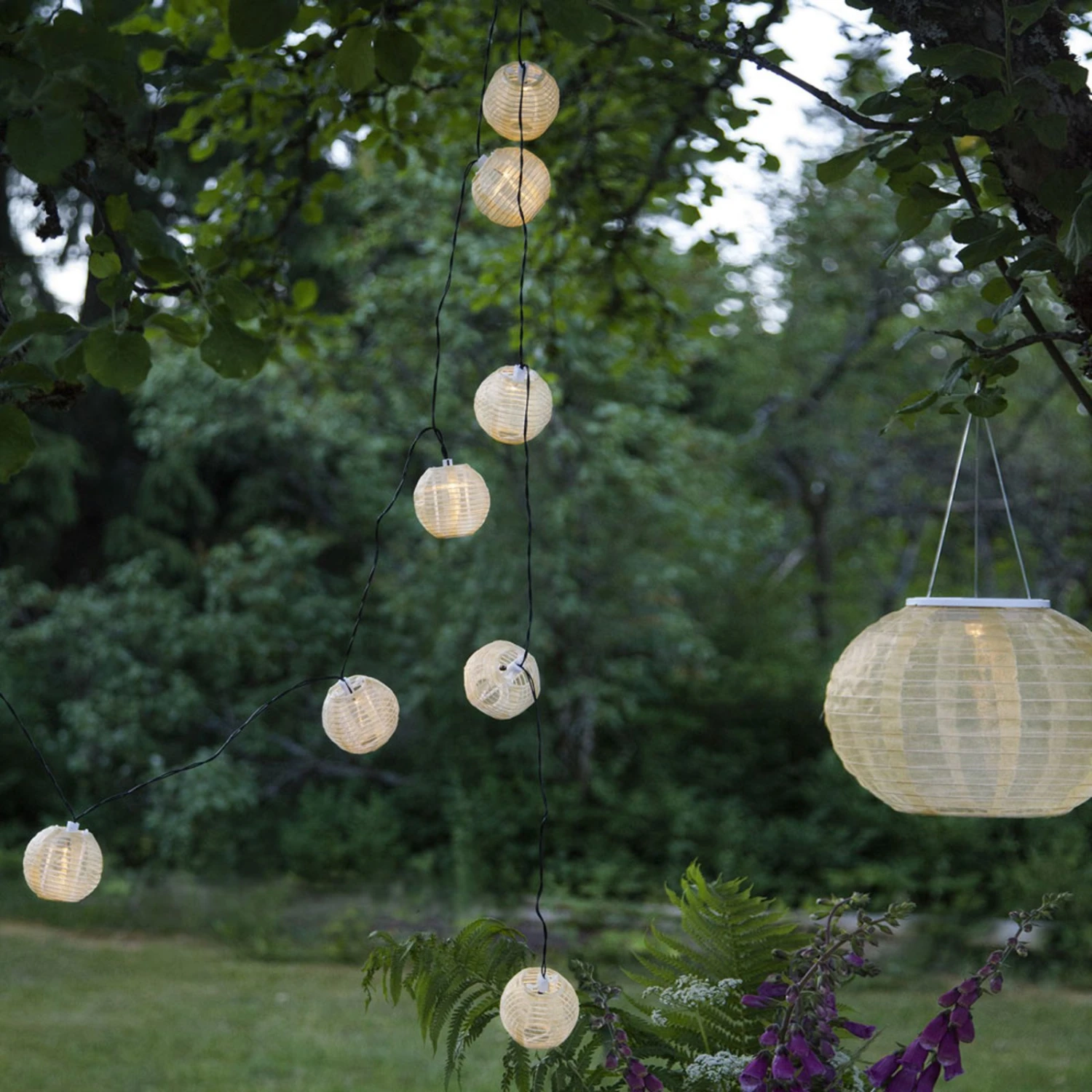 Lichterkette mit vielen kleinen Lampions für den Außenbereich