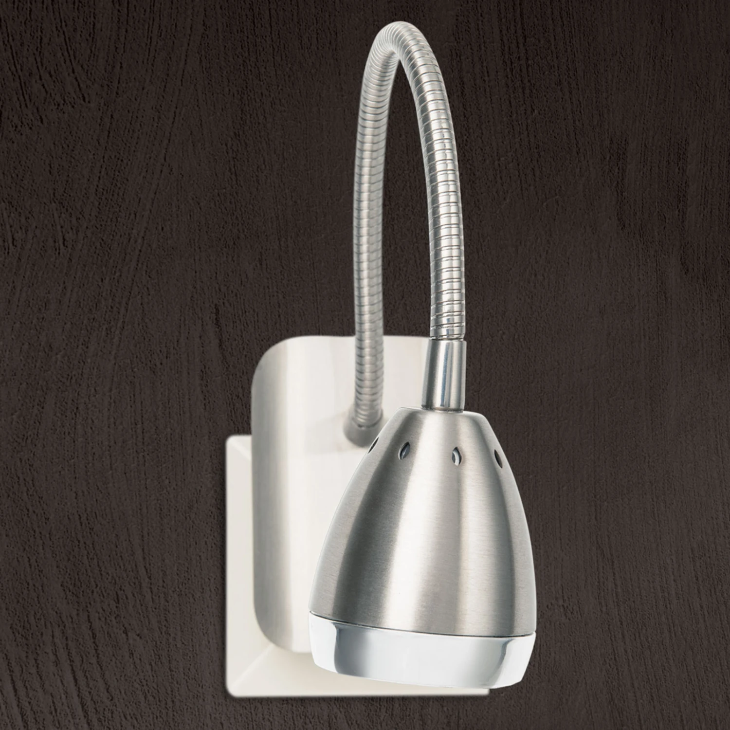 Steckdosenleuchten erweisen sich immer dann als praktisch, wenn bereits eine Steckdose an gewünschtem Ort, z. B. neben dem Bett auf Kopfhöhe, vorhanden ist und man sich eine kabellose Beleuchtung wünscht. Einmal eingesteckt, hat man bei der LED-Steckdosenleuchte Manvel die Möglichkeit, sie über den Kippschalter am Gehäuse ein- und auszuschalten und ihren Lichtkegel mit Hilfe des Schwanenhalses in die gewünschte Richtung zu lenken, damit man lesen oder andere wichtige Sehaufgaben verrichten kann. Optisch punktet Manvel mit einem nickel-satinierten Korpus, der am Ende des Leuchtenkopfs mit einem nickel-glänzenden Ring versehen ist.