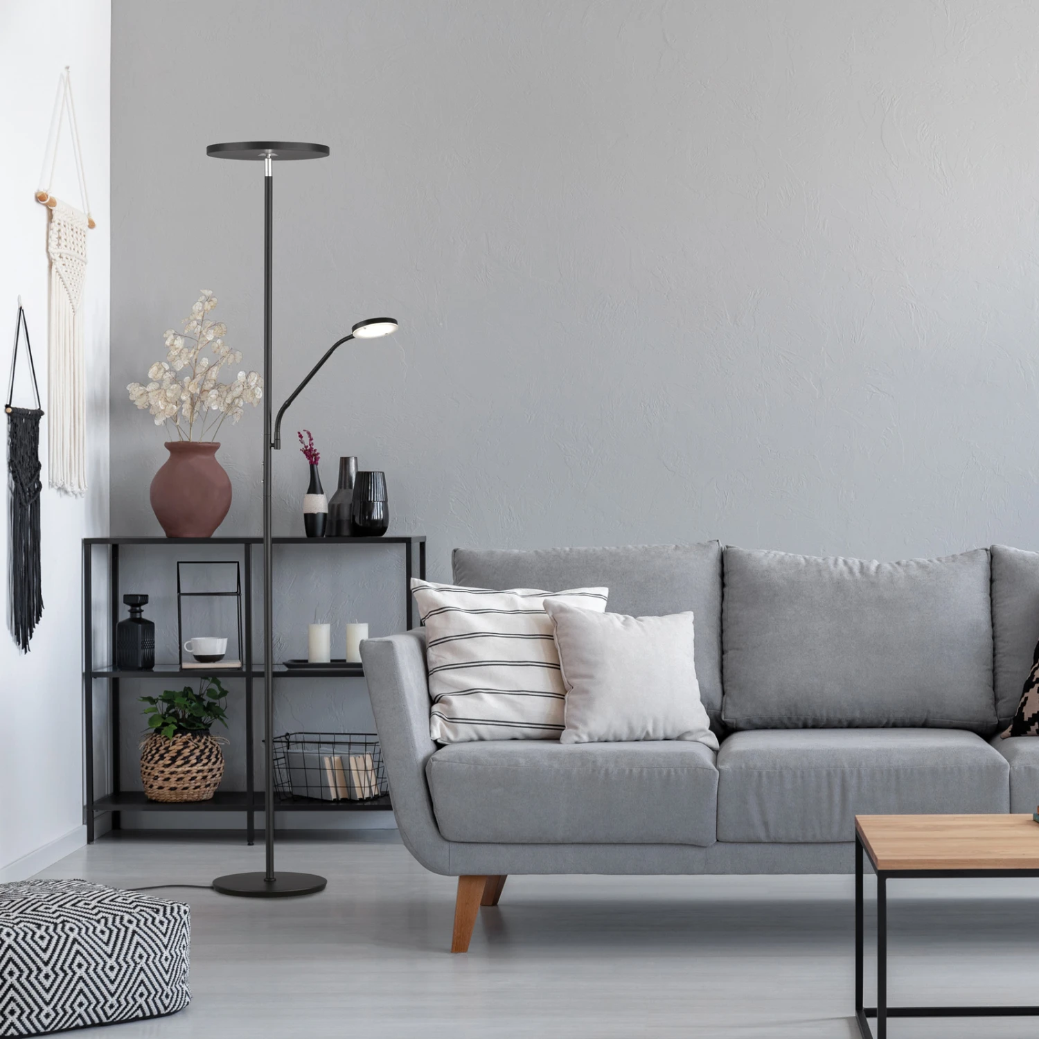 Dimmbare LED-Stehleuchte Fabi mit praktischem Leselicht