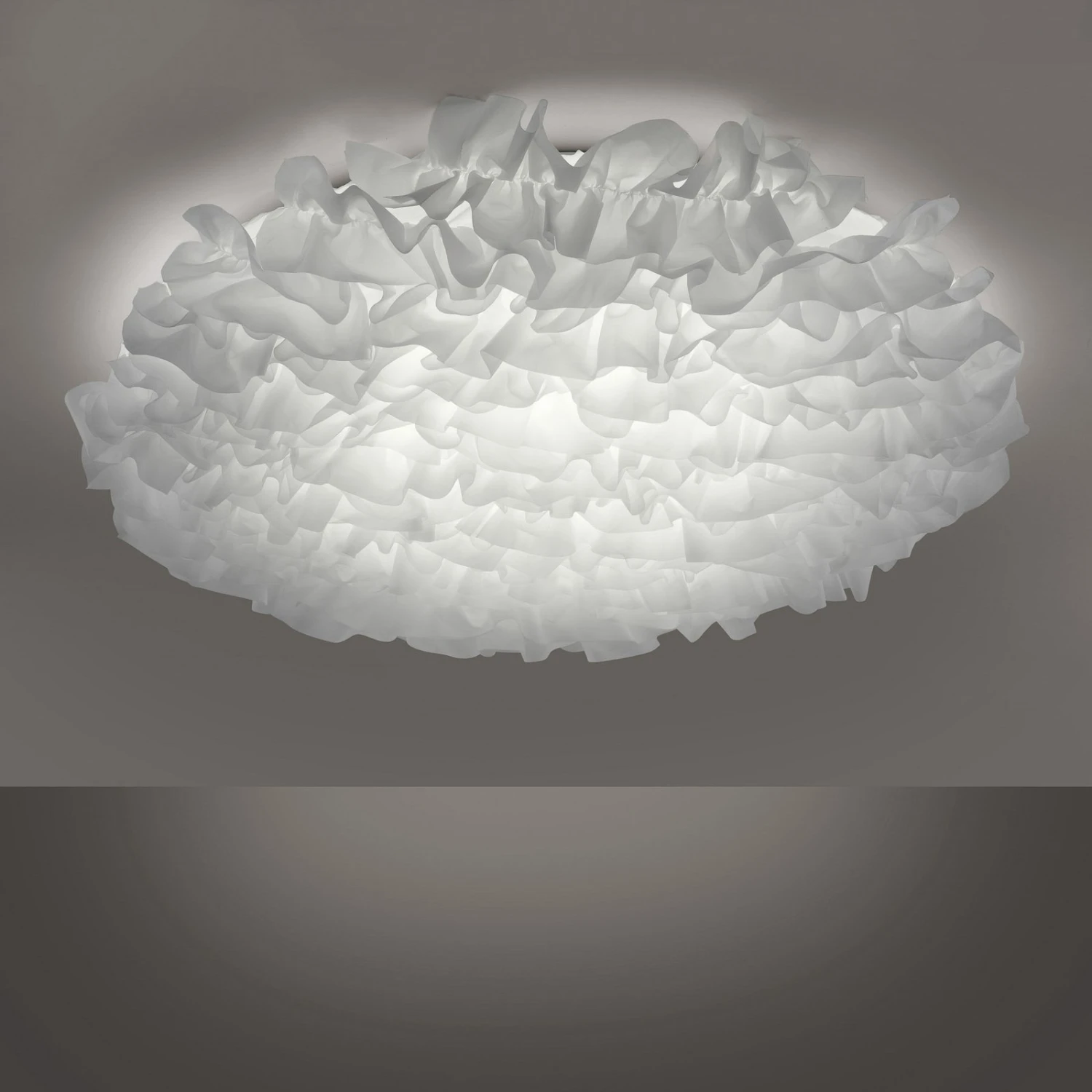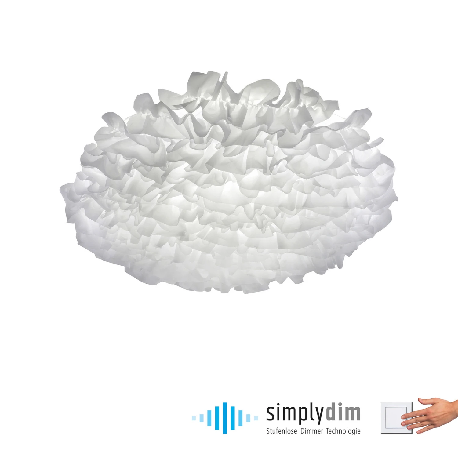 Die weiße LED-Deckenleuchte Xenia erinnert, an der Zimmerdecke montiert, an eine sanfte Wolke. Möglich macht das der textile Stoffüberzug. Dieser kann jederzeit abgenommen und gewaschen werden. Im Innern verstecken sich warmweiß strahlende LEDs, die die Sanftheit der Deckenleuchte noch unterstreichen. Mit Hilfe des Wandschalters kann Xenia zudem dank der Switchmo-Dimmer-Technologie über drei Stufen in der Helligkeit variiert werden. Eine praktische Memoryfunktion merkt sich die zuletzt eingestellte Stufe.