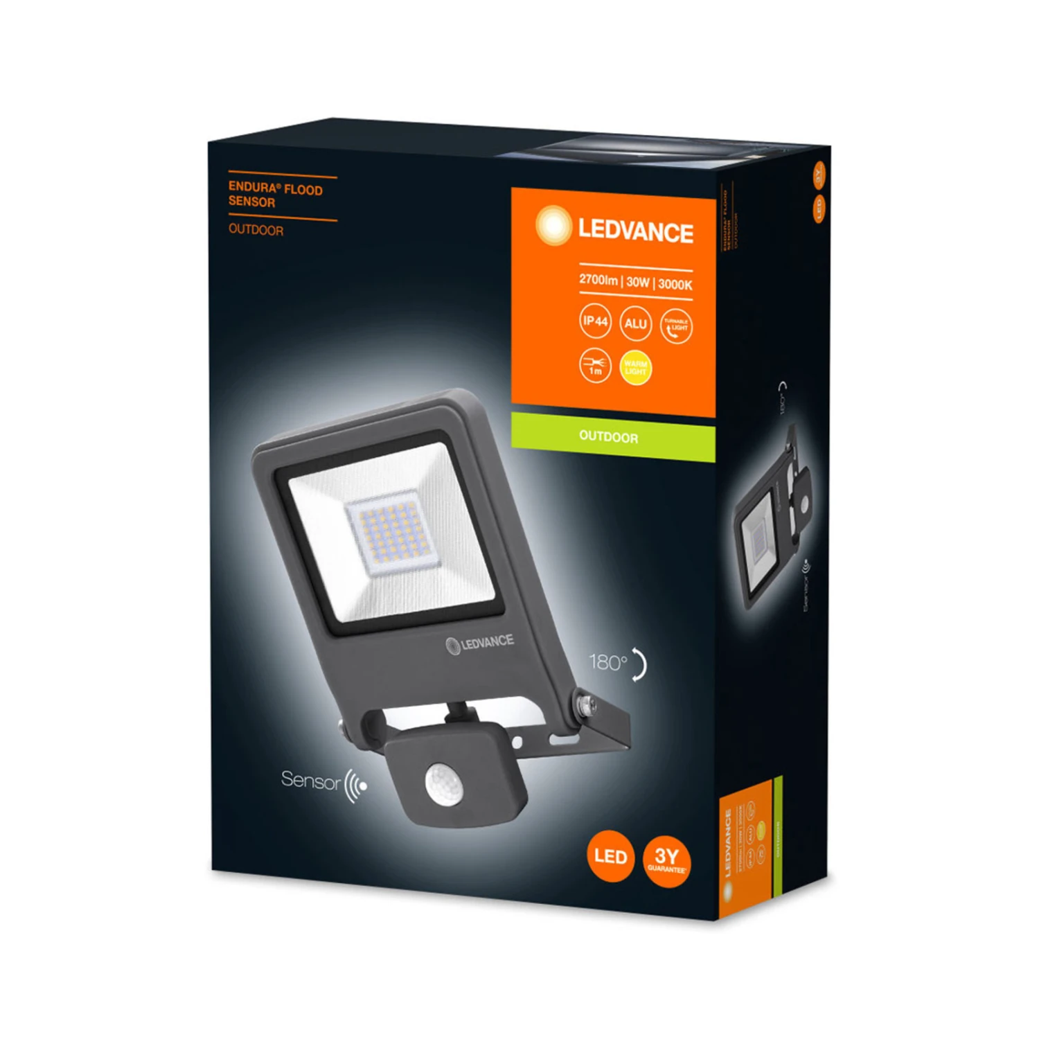 Der integrierte Bewegungsmelder macht den Strahler interessant für Einfahrten, Parkplätze sowie öffentliche Räume. Außerdem lässt er sich um 90 Grad drehen und um 180 Grad neigen – für einen idealen Erfassungswinkel. Die Leuchtdauer, die Erfassungsweite und auch die Empfindlichkeit des Sensor lassen sich zusätzlich noch einstellen.