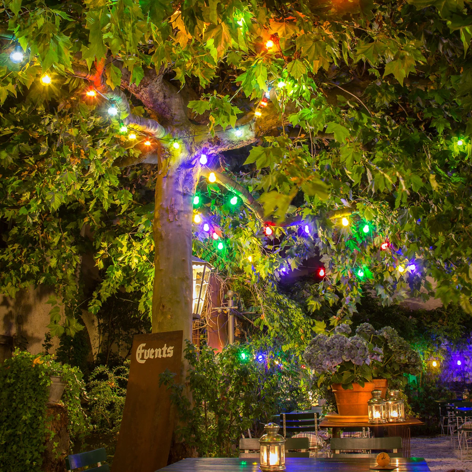 Bunte LED-Lichterkette Biergarten für Balkon und Garten