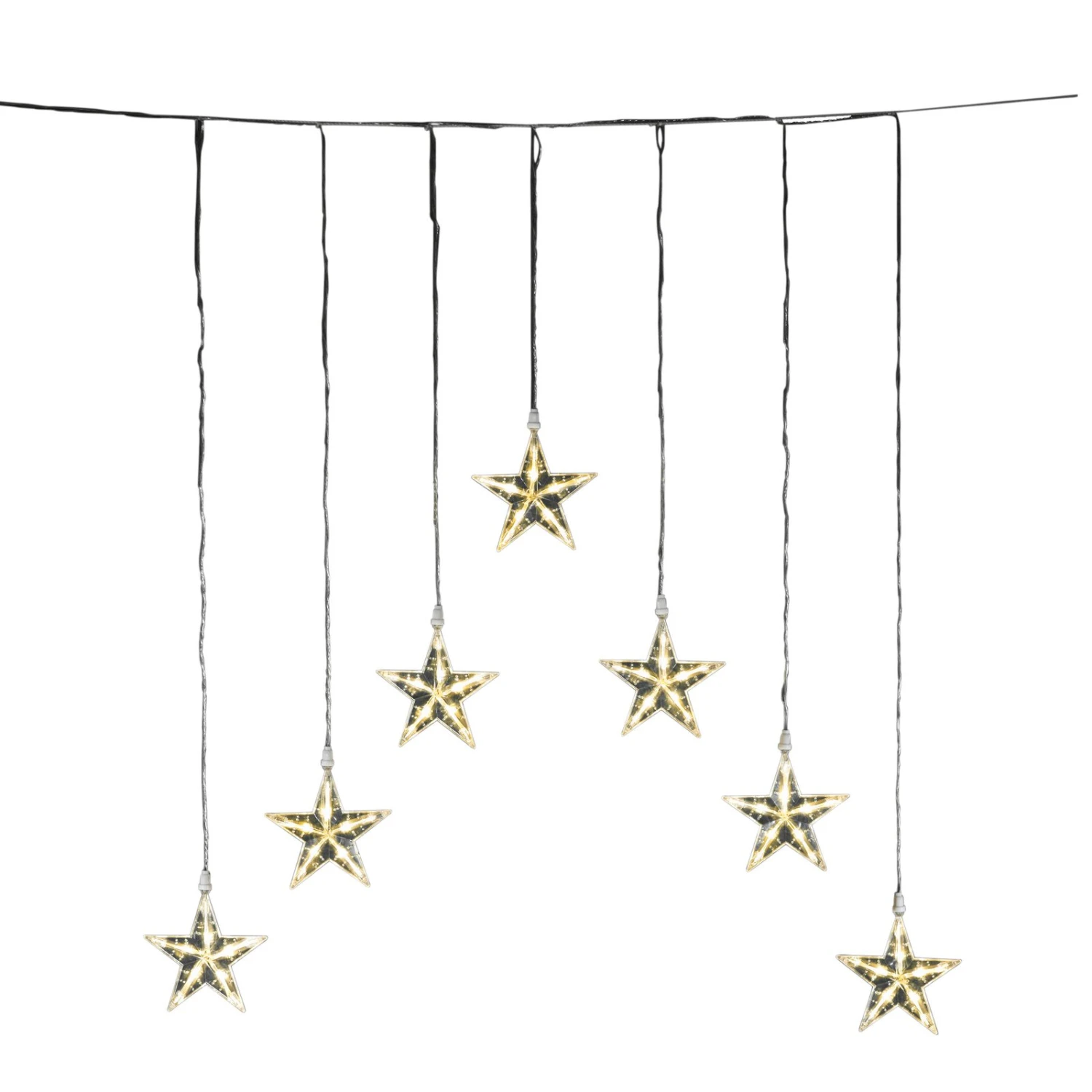 Warmweißer LED Lichtervorhang mit 7 Sternen für den Außenbereich