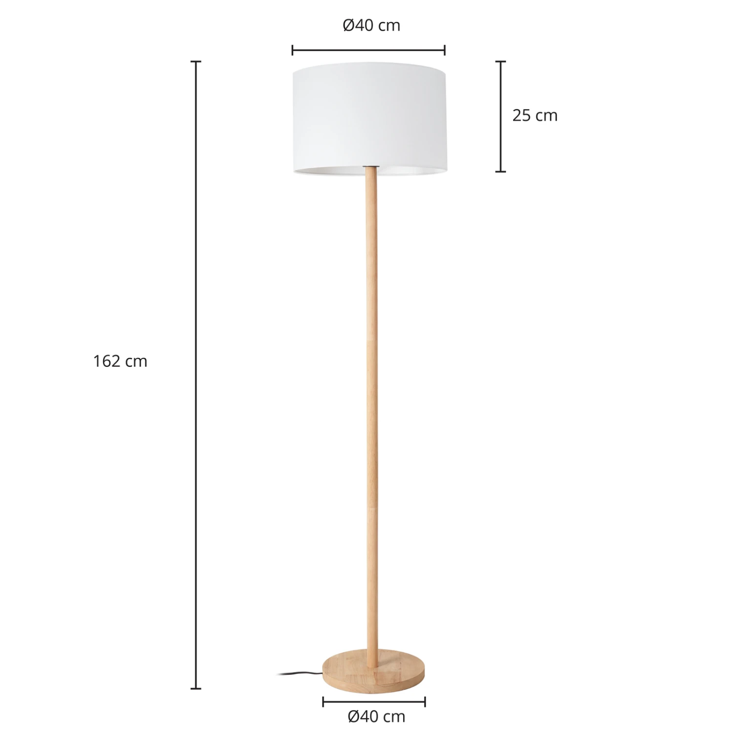 Die Stehlampe Chava überzeugt mit ihrem schlanken Design und ihrer dezenten Farbgebung. Sie steht auf einem hölzernen Standbein auf dem ein zylinderförmiger Leuchtenschirm sitzt, welcher aus weißem Textil hergestellt ist. Bestückt man die Leuchte mit einem passenden Leuchtmittel, so wird das generierte Licht durch die matten Schirmwände abgegeben und es entsteht eine angenehme, seitlich blendfreie Beleuchtung. Die Stehleuchte Chava passt hervorragend ins Wohnzimmer und kann die perfekte Begleiterin beim abendlichen Bücherlesen auf der Couch sein. Ihr Stromkabel macht eine flexible Platzierung möglich und über ihren Trittschalter ist sie unkompliziert ein- und ausschaltbar.