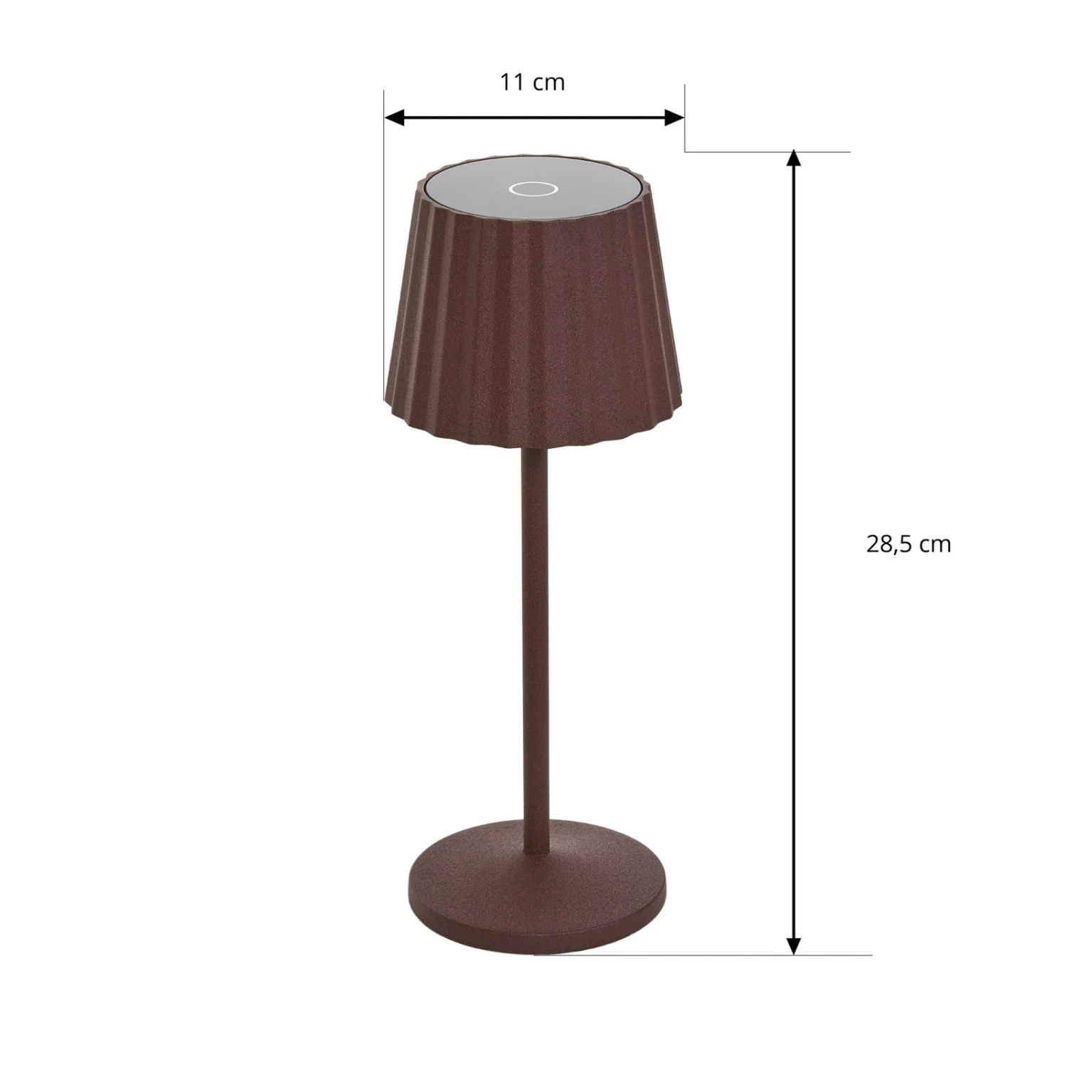 Ihr Lichtkonzept ergänzen Sie mit dieser Tischlampe auf geschmackvolle Art und Weise. Die Lampe lässt sich mit Hilfe eines Lichtschalters problemlos an- und ausschalten und verfügt über eine Option zum Dimmen für eine individuelle Regulierung der Helligkeit nach Ihren Wünschen. Durch das warmweiße Licht wird Ihr Außenbereich in eine tolle Wohlfühlstimmung getaucht. Alle Qualitäten und Highlights der Marke Lindby kommen in dieser Leuchte zusammen. Die Tischlampe ist in Rostbraun gehalten und ist eine ausgezeichnete Lösung für den Garten oder die Terrasse. Durch die Schutzart IP54 ist die Leuchte nachweislich gegen Staub und Spritzwasser geschützt.