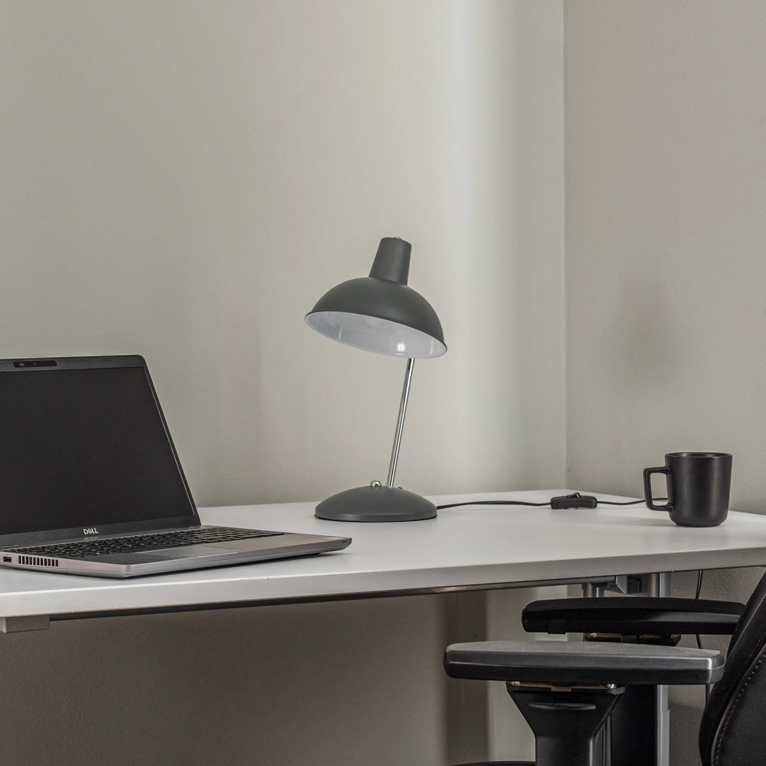 Graue Schreibtischlampe Jamelia mit Vintageflair – gut für einen Schreibtisch geeignet
