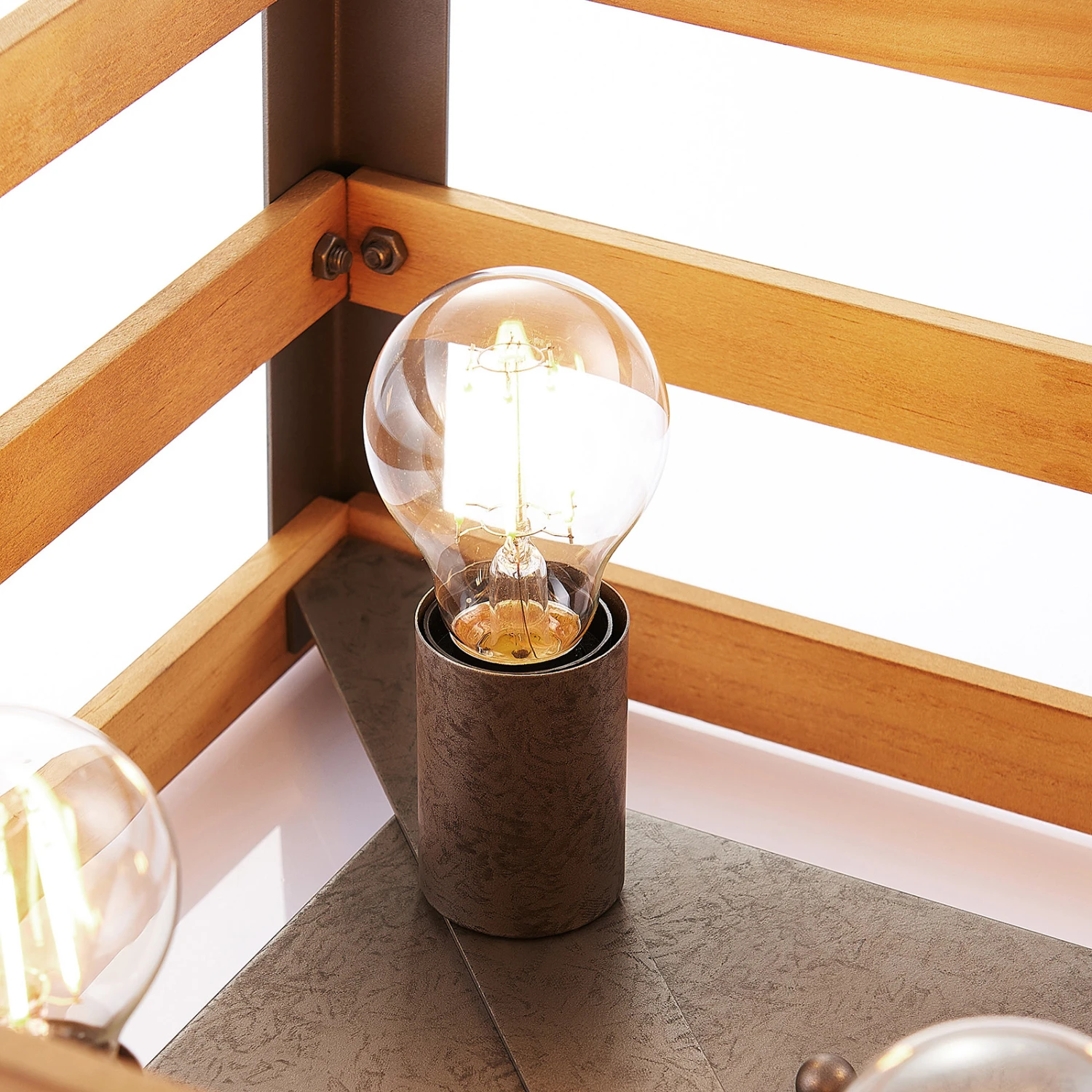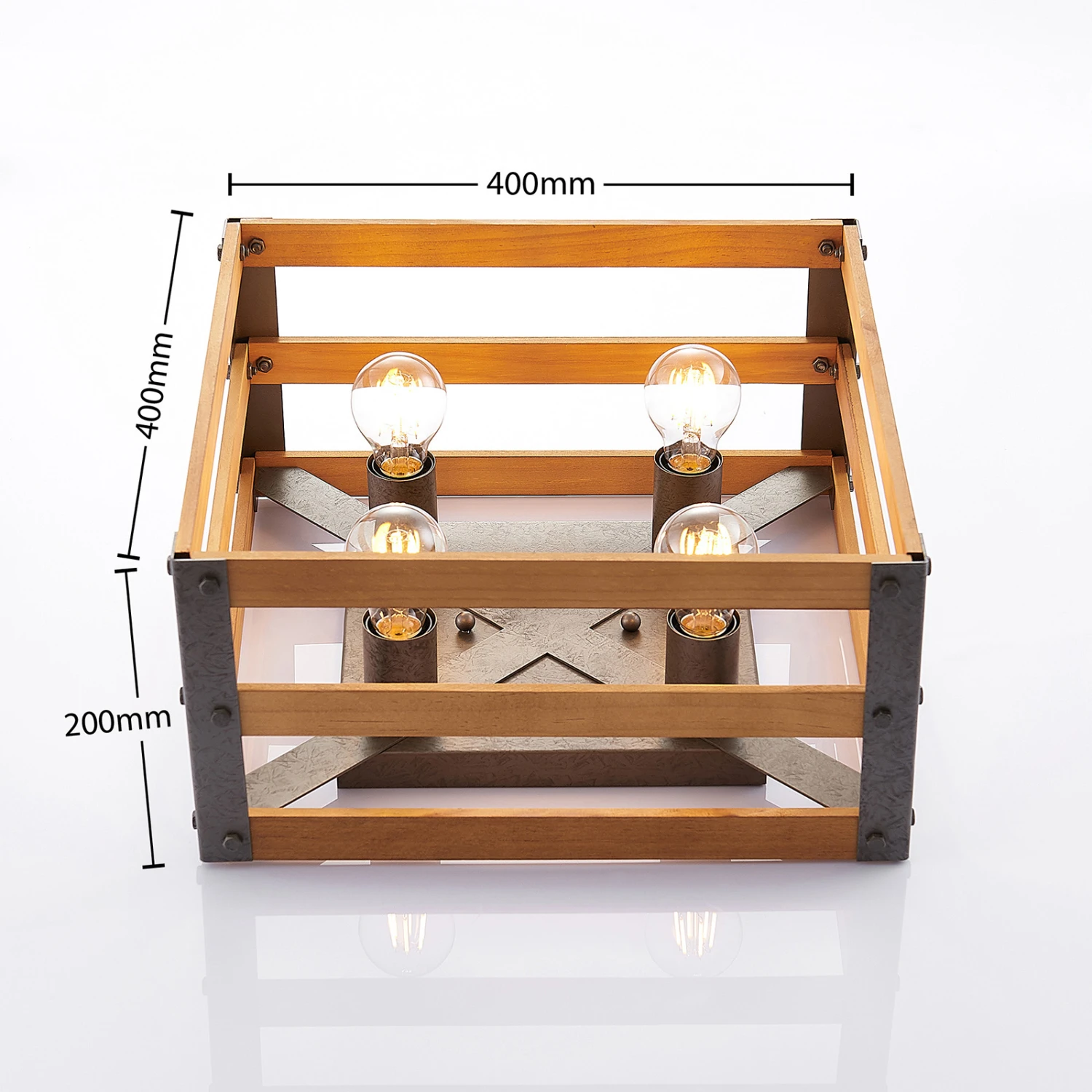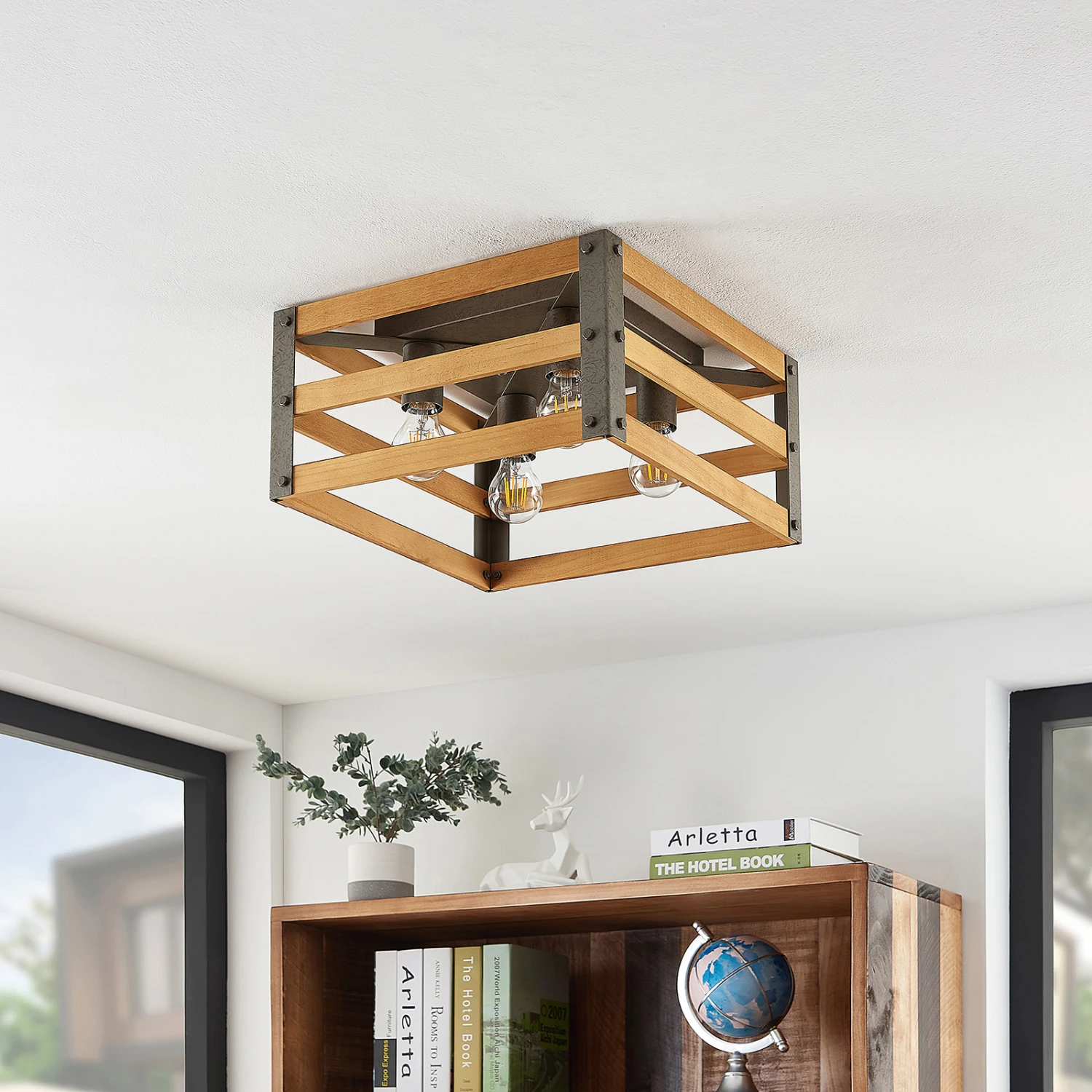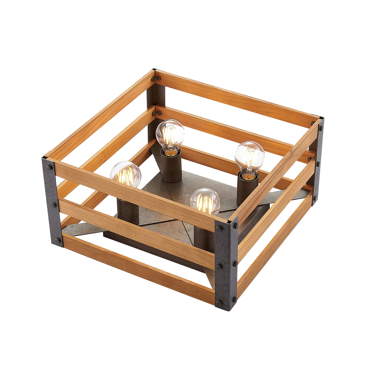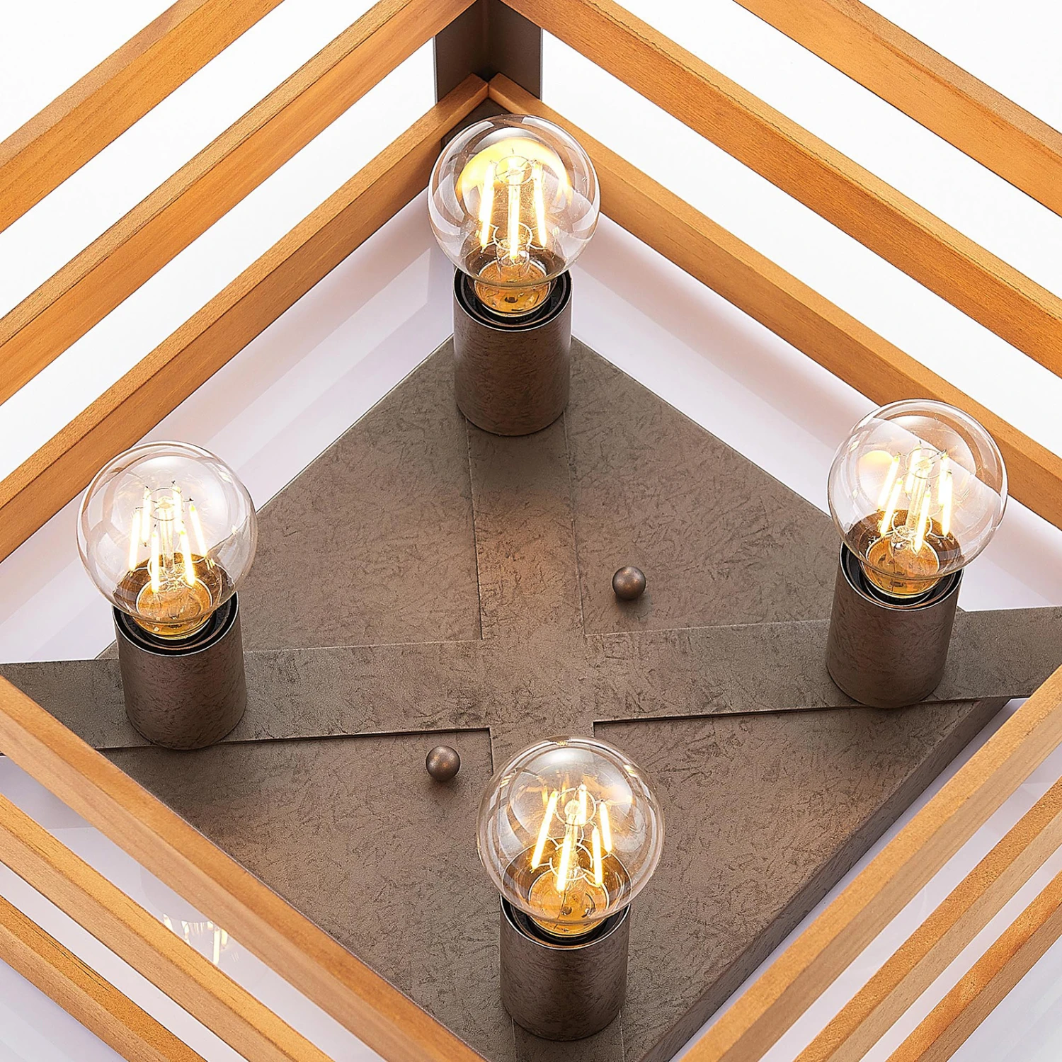 Quadratische Holz-Deckenleuchte Jamina für den Betrieb mit vier E27-Lampen