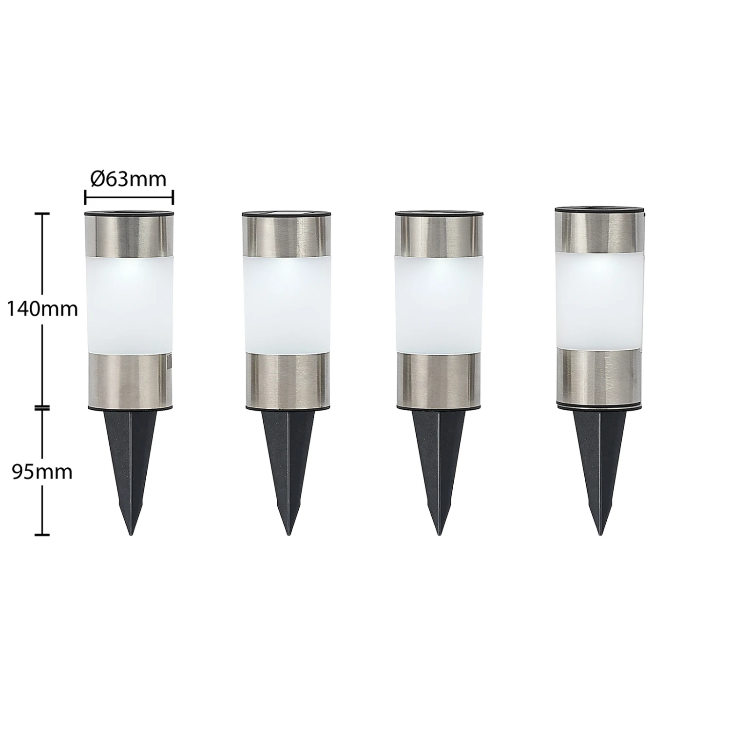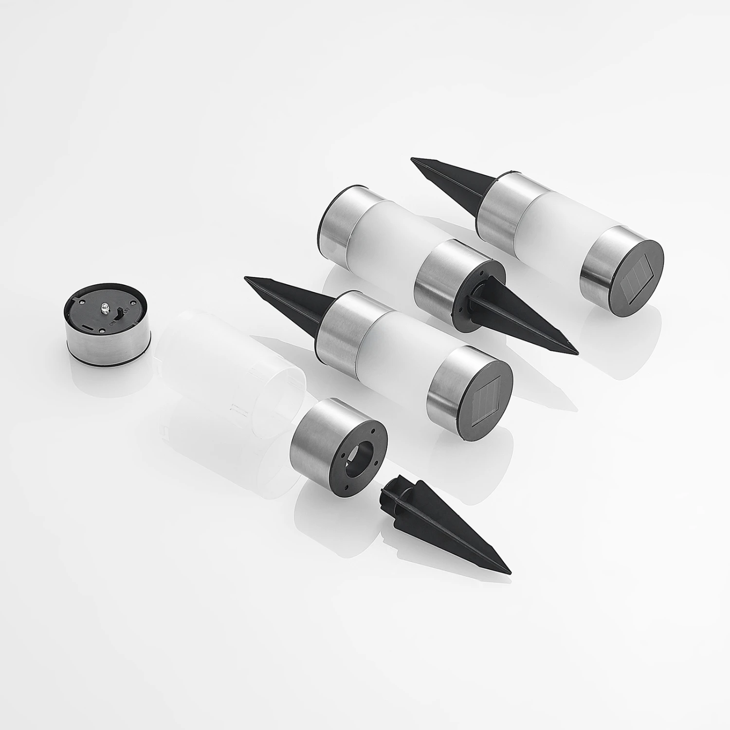 Dezenter LED-Solar-Erdspieß Jocob im 4er-Set, Edelstahl