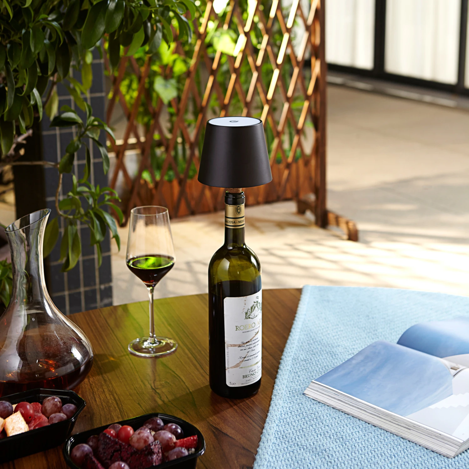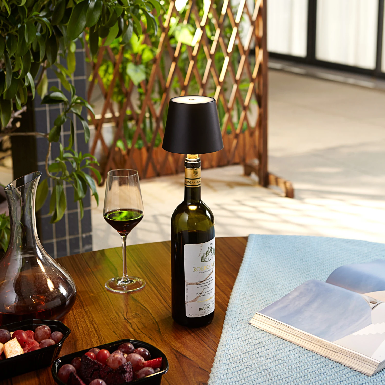 Moderne LED-Weinflaschenleuchte Linor mit Akku