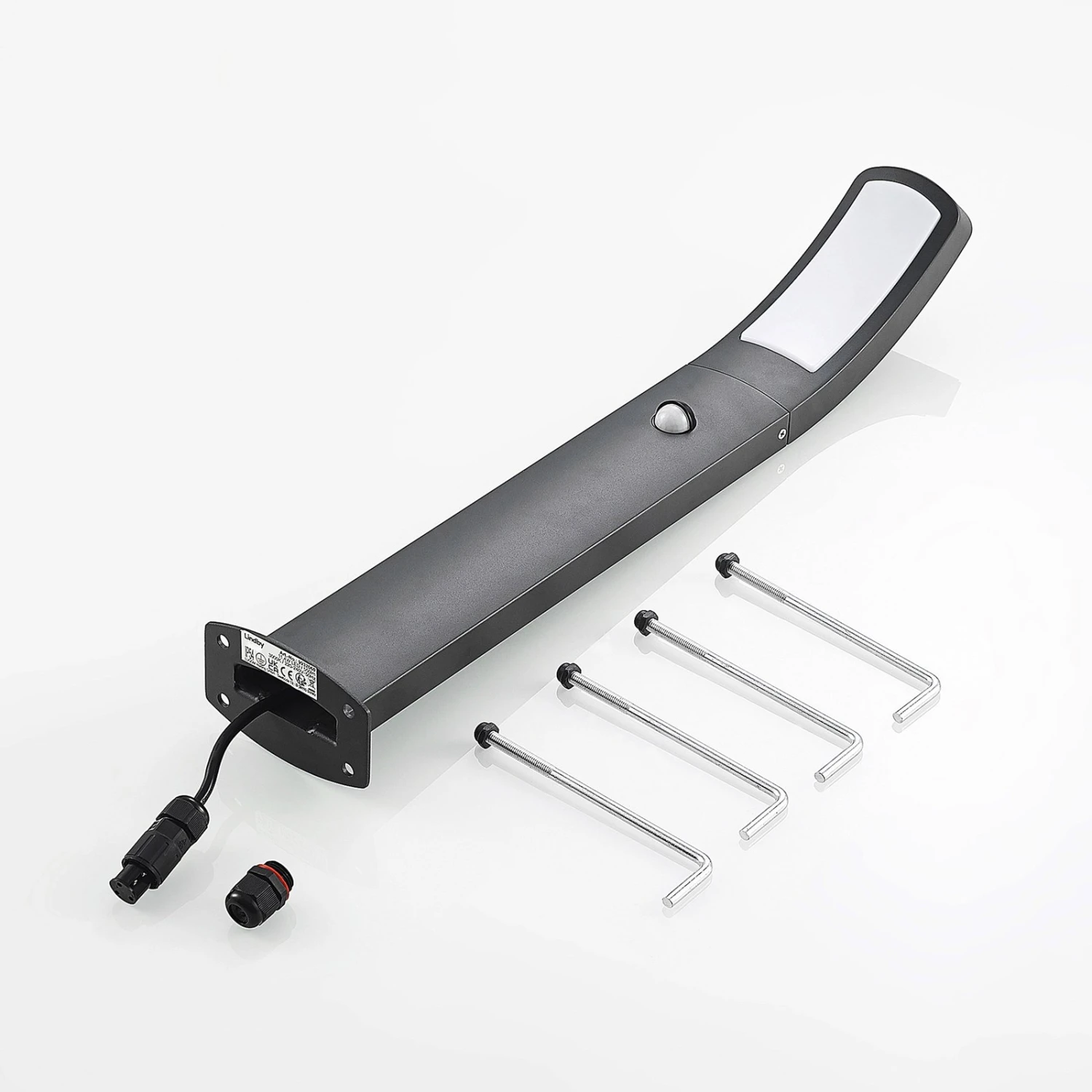 Dunkelgraue LED-Sockelleuchte Moshe aus Aluminium mit praktischem Bewegungssensor