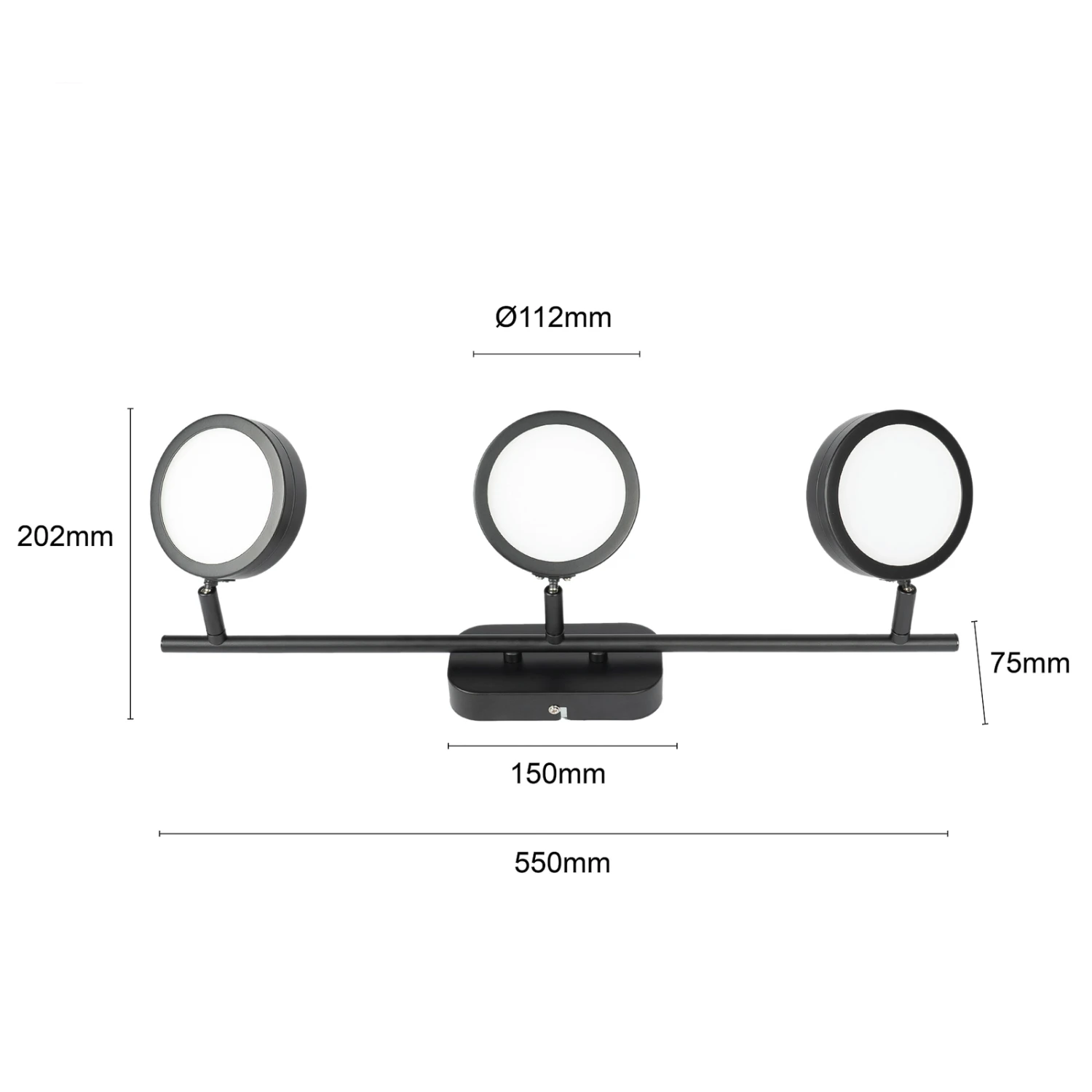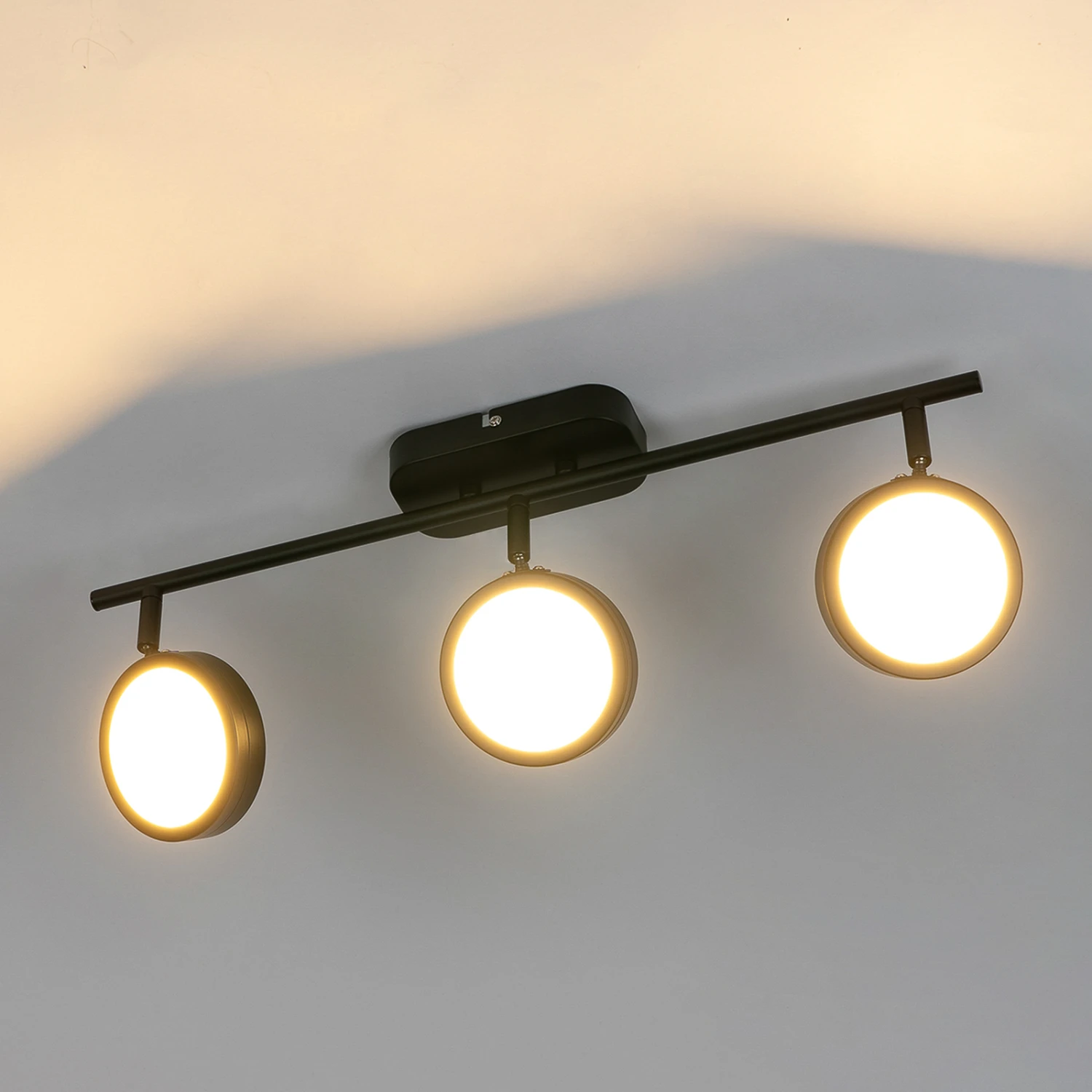 Dreiflammiger Deckenstrahler Neros mit LED-Lampen und runden, flachen Leuchtköpfen, CCT