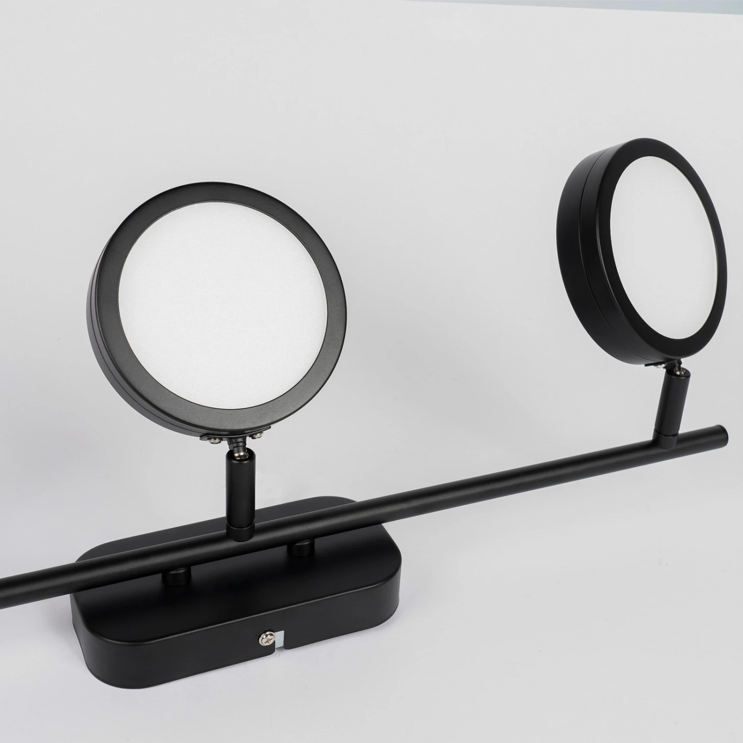 Neros sieht sehr modern aus und punktet mit einem puristischen Look. Die beiden Leuchtköpfe sind flach und rund und können dank der Gelenke nach Bedarf geschwenkt werden. Zudem erlauben die beiliegenden Leuchtmittel ein Ändern der Lichtfarbe in zwei Stufen, was über den Schalter gesteuert werden kann. So leuchte der Strahler Neros dann entweder warmweiß oder in einem kühleren Universalweiß, das sich besser zum konzentrierten Arbeiten eignet. Das schwarze Finish von Leuchköpfen und Gestell unterstreicht die moderne Wirkung dieses LED-Strahlers und lässt ihn ein wenig kühler und markanter wirken.