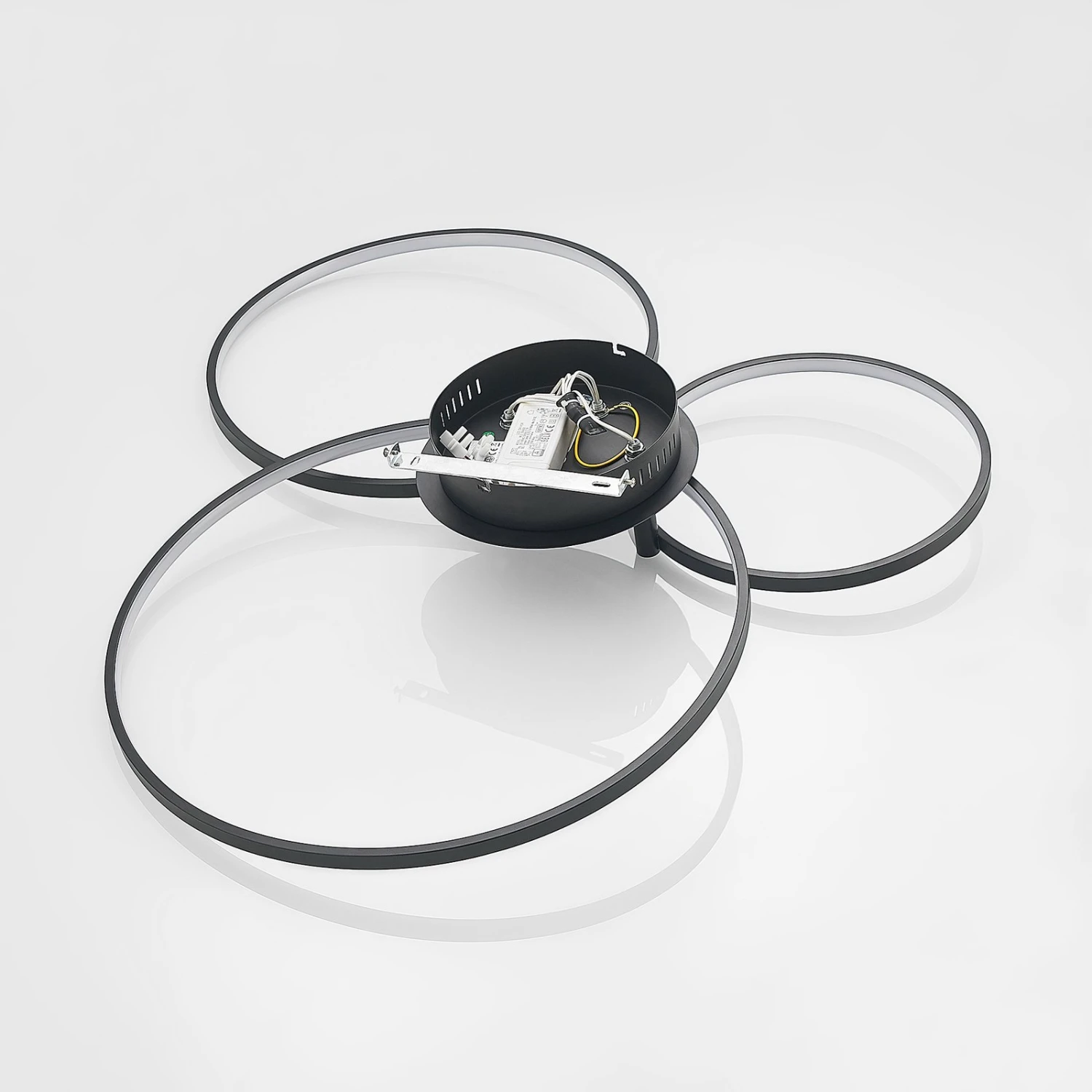 Schicke LED-Deckenleuchte Rayk in mattem Schwarz mit drei Lichtkreisen