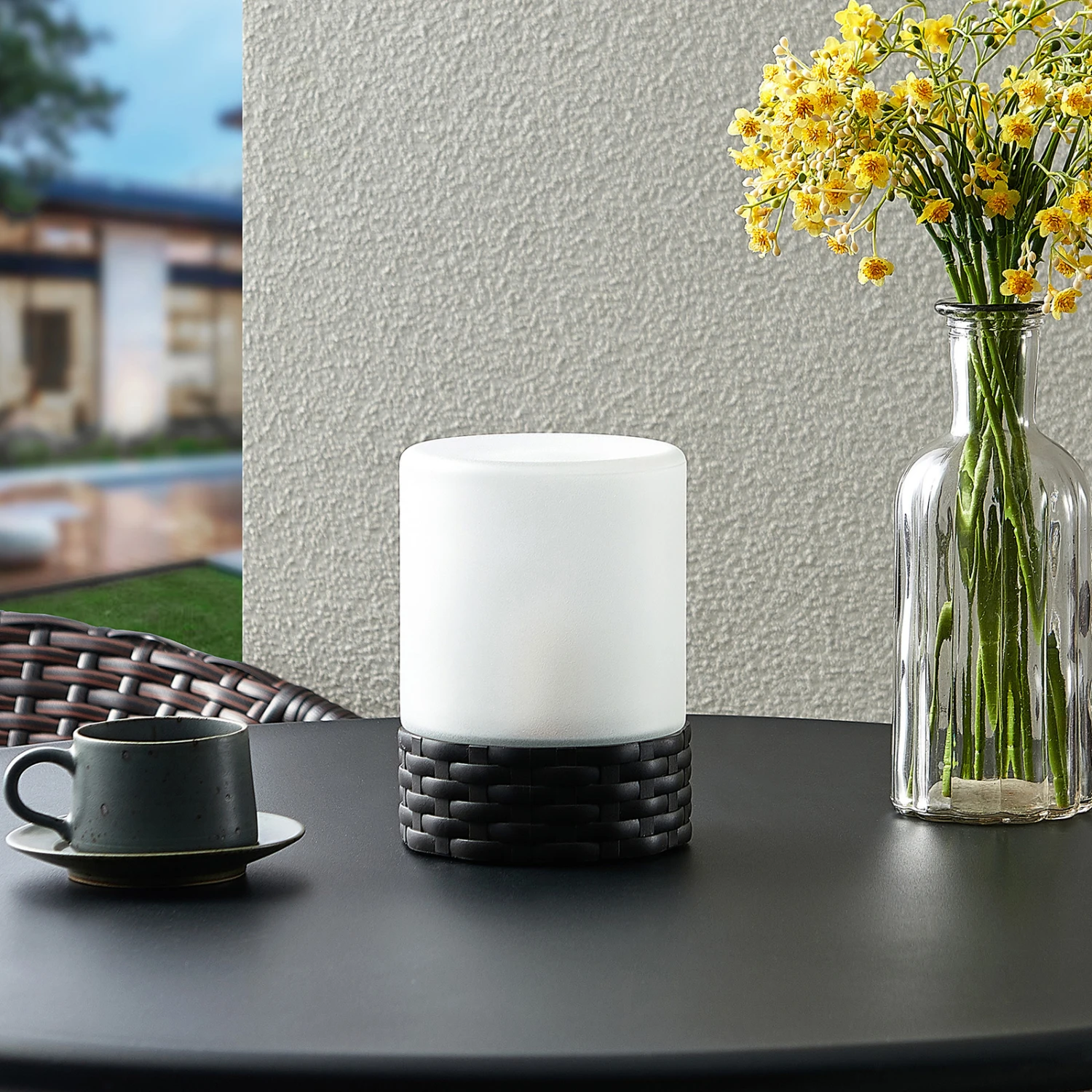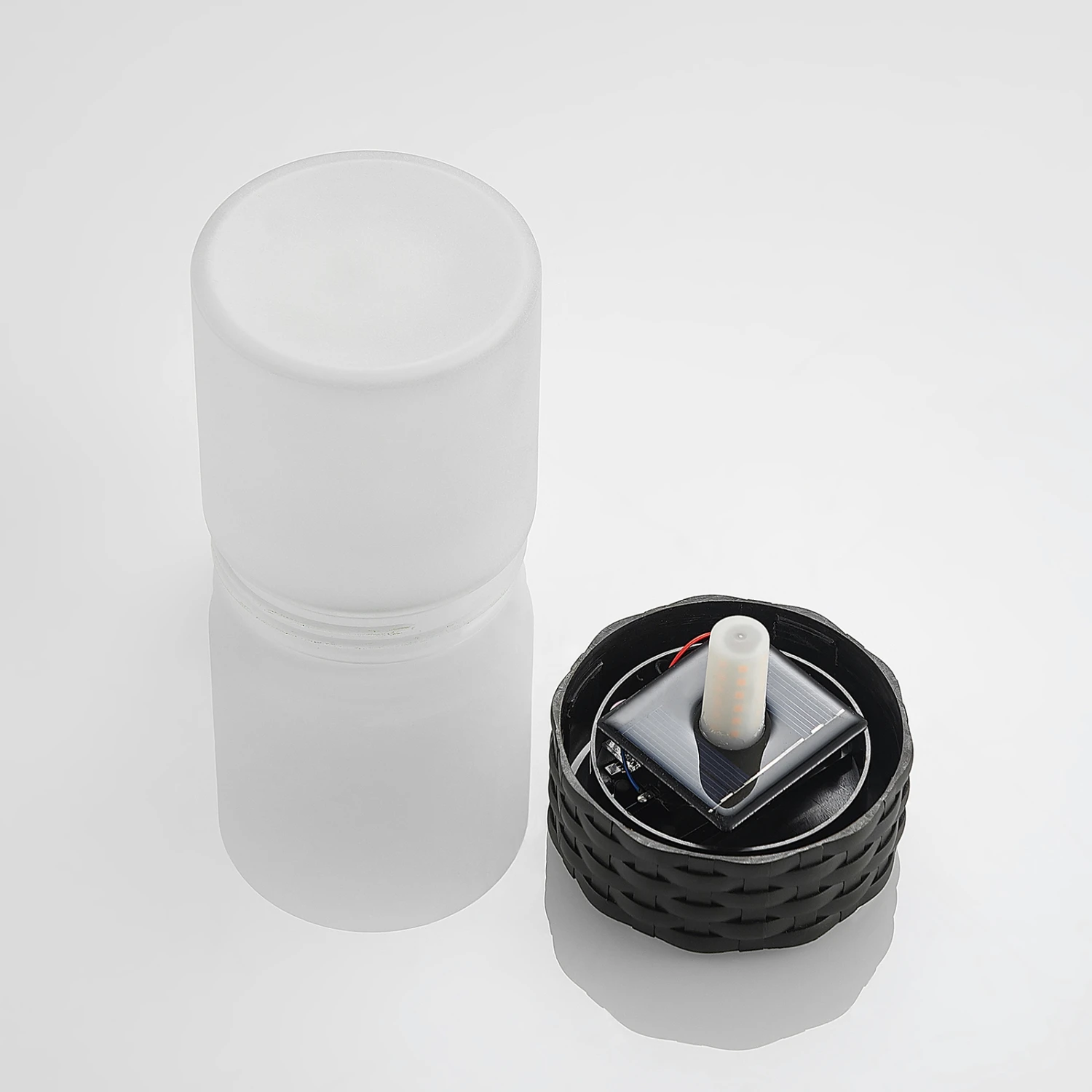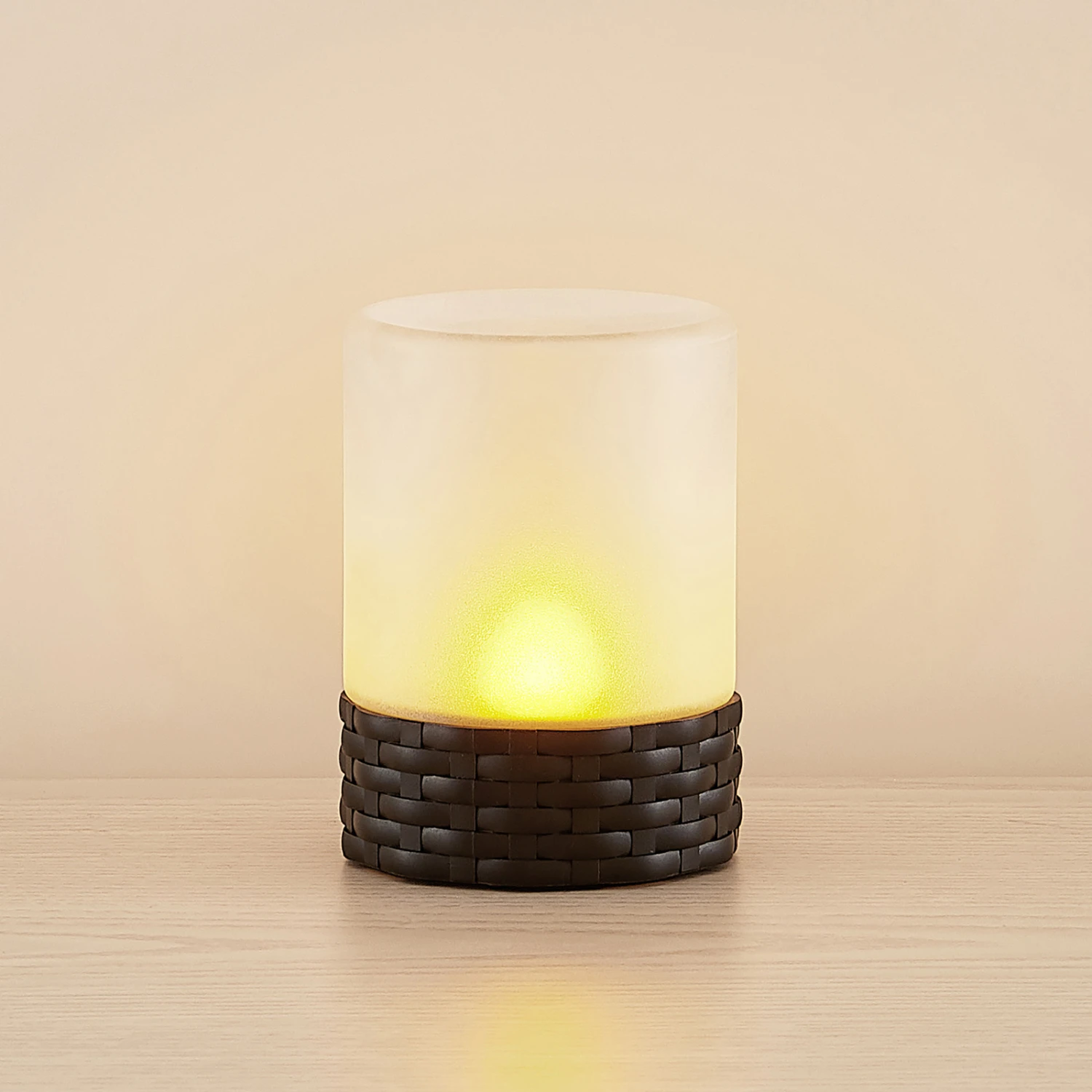 Kleine Dekorationsleuchte Saquir mit solarbetriebenen LEDs Flackern wie ein echtes Feuer, diesen Effekt bietet die dekorative LED-Solarleuchte Saquir. Sie besteht aus einem Sockel im Rattan-Look, der einen gefrosteten Glasschirm trägt. Im Innern verstecken sich die solarbetriebenen LEDs, die mit ihrem Flackereffekt für eine angenehme Atmosphäre im Dunklen sorgen. Saquir ist als Deko und Tischleuchte perfekt für den Balkon, die Terrasse oder auch für das Gartenhaus.