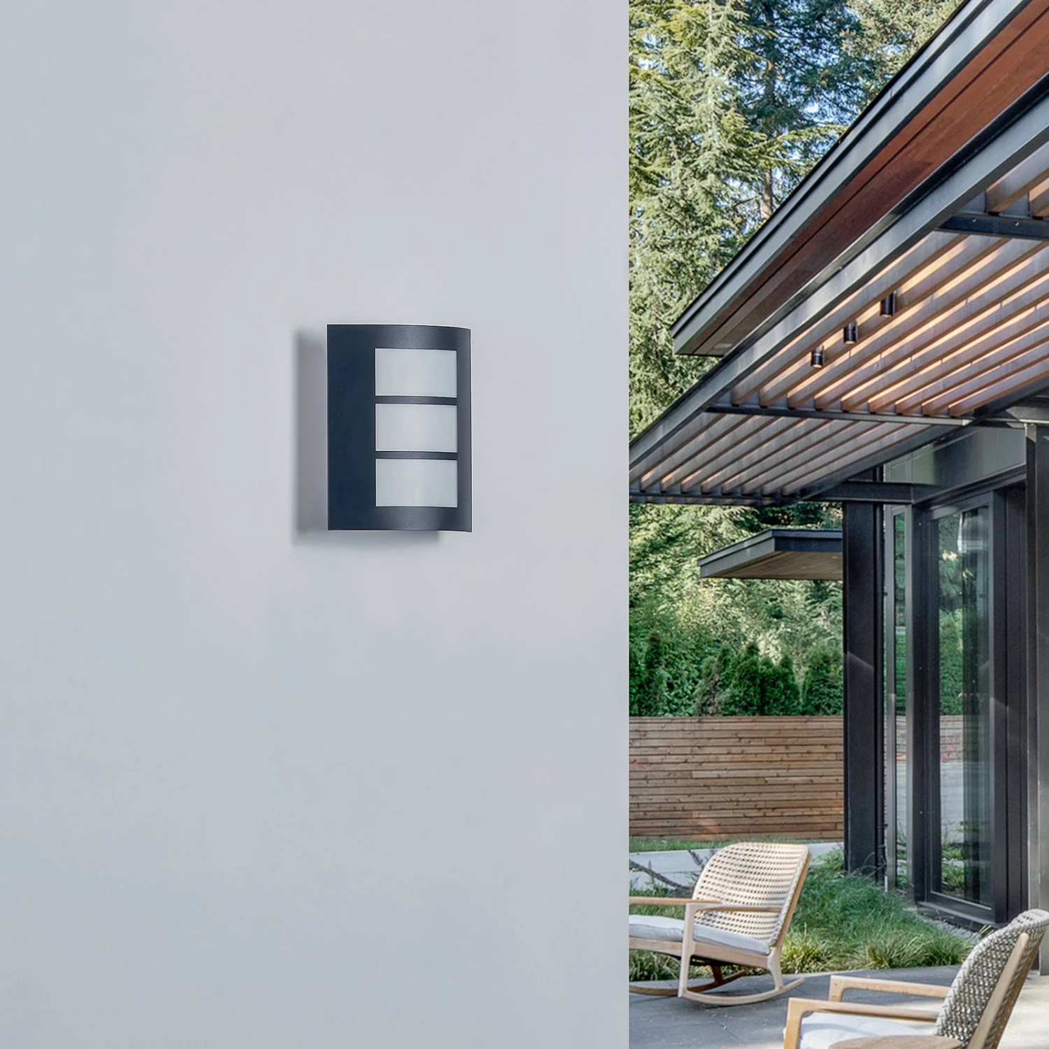 Wenn Sie gerne Zeit auf dem Balkon, der Terrasse oder in Ihrem Garten verbringen, werden Sie diese Wandleuchte ganz bestimmt lieben lernen. Die Lampe ist mit der Schutzart IP44 ausgestattet und aufgrund dessen vor Eindringen fester Fremdkörper mit einem Durchmesser größer als 1 Millimeter und Spritzwasser gesichert. Sie fügt sich mit ihrem schönen Aussehen wirkungsvoll in jede Außeneinrichtung ein und schafft eine angenehme Atmosphäre. Aufgrund der Möglichkeit mit Hilfe eines externen Dimmers (nicht inklusive) die Leuchte zu Dimmen können Sie für eine gemütliche Wohlfühlstimmung sorgen. Die Außenwandleuchte wurde für die Aufnahme von Leuchtmitteln mit E27-Sockel konzipiert. Die schwarze Lampe bereichert Ihren Garten oder Ihre Einfahrt durch das moderne Design zusätzlich. Diese Wandleuchte lässt in jedem Bereich eine schöne Atmosphäre entstehen und bringt eine angenehme Komponente in Ihre Einrichtung. Für die Herstellung werden Aluminium und Kunststoff verwendet. Die Wandleuchte bietet Ihnen mit einer Lichtquelle ideales Licht. Sie harmoniert dank ihrer hervorragenden Optik mit jedem Ambiente und schafft dadurch eine Atmosphäre zum Wohlfühlen. Hohe Funktionalität und tolles Design treffen bei dieser Leuchte zusammen.