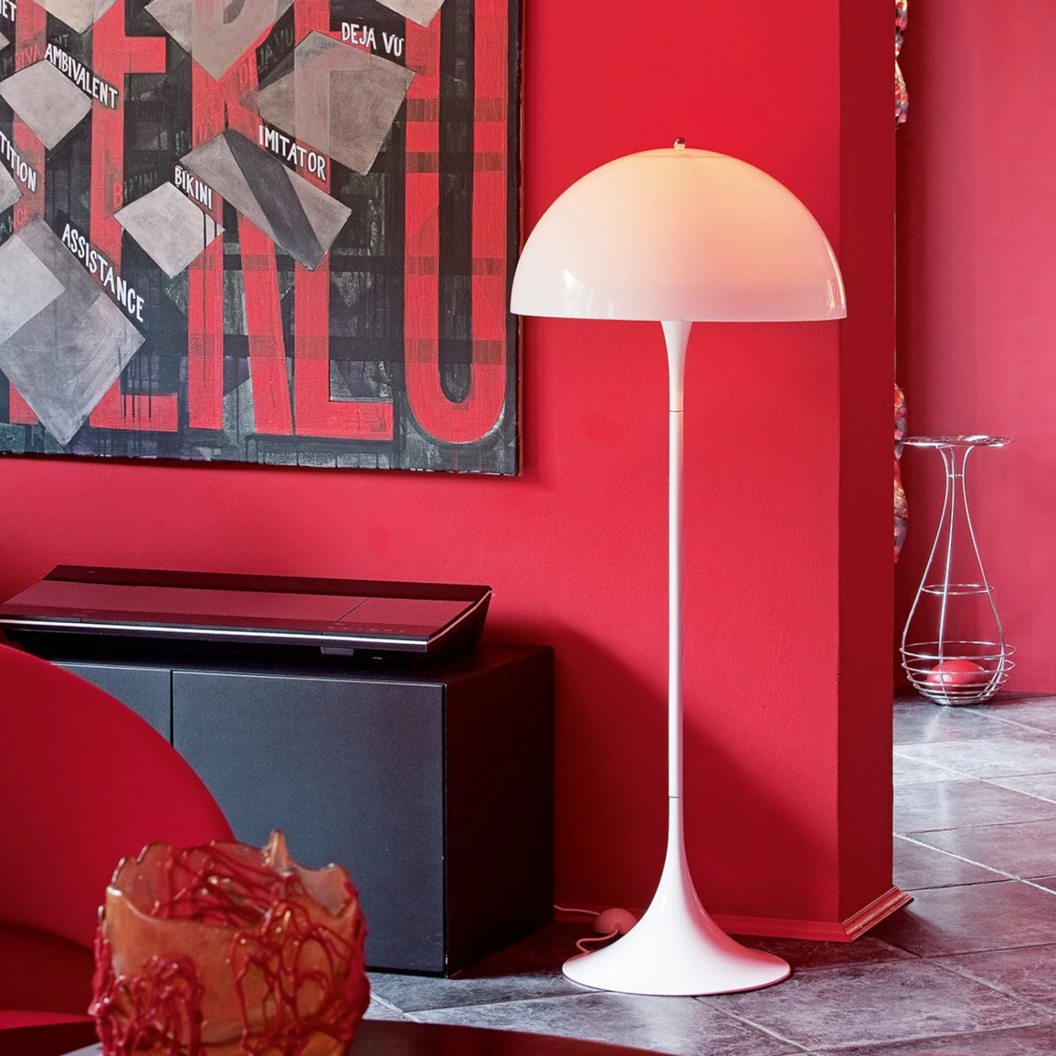Die schon 1971 von Verner Panton entworfene Stehleuchte Panthella ist ein nach wie vor sehr beliebter Lichtspender, wobei der Fokus hier nicht nur darauf liegt, eine stimmungsvolle Beleuchtung für den Wohnraum zu erzeugen, sondern auch darauf, sich ihrer ungewöhnlichen Optik als Einrichtungselement zu bedienen.