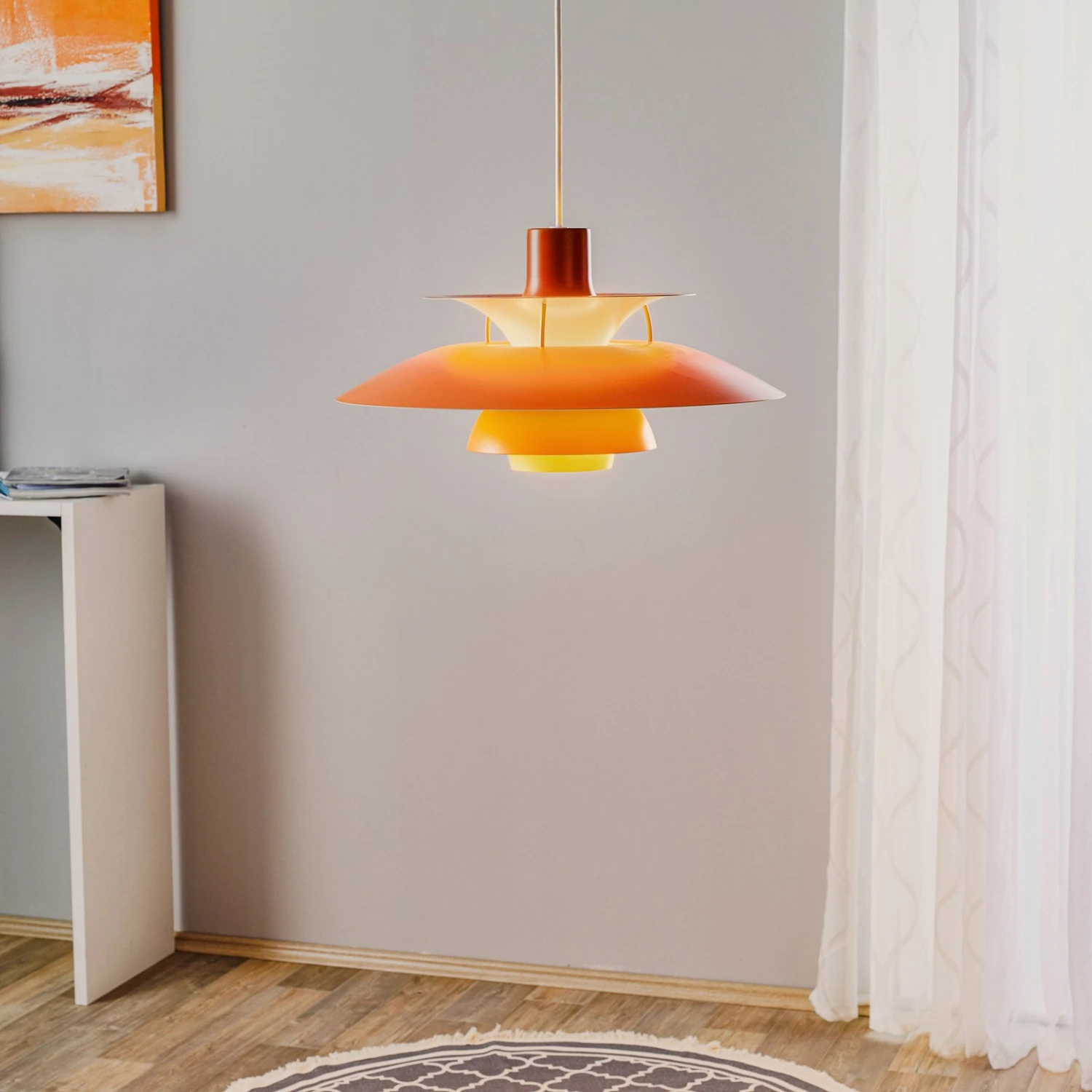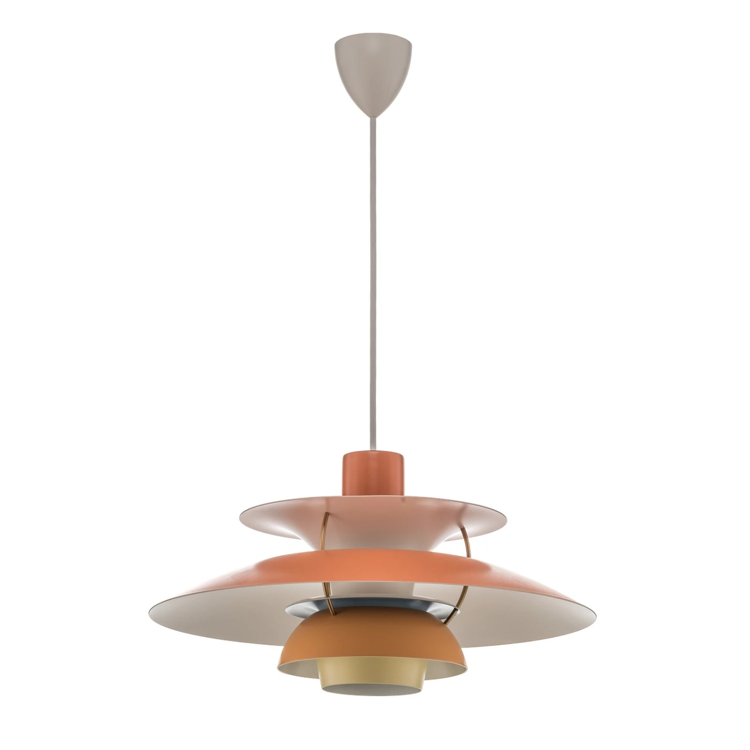 Der Dreifachschirm, mit dem die Pendelleuchte ausgestattet ist, geht auf die Entwürfe von Poul Henningsen zurück, dem bekannten, dänischen Designer, der von 1925 bis zu seinem Ableben 1967 Produkte für die Firma Louis Poulsen kreierte. Louis Poulsen ist ein dänisches Traditionsunternehmen, was die Herstellung von Designerleuchten betrifft, die getreu dem Prinzip „Form folgt Funktion“ entwickelt wurden. Seit über 100 Jahren produziert Louis Poulsen typisch skandinavische Beleuchtungslösungen, einige Modelle sind bereits seit Jahrzehnten erhältlich und werden immer wieder neu aufgelegt. 2018 jährt sich die Geburtsstunde der PH 5 zum 60. Male. Aus diesem Anlass sind neue Farbkombinationen des Leuchtenklassikers auf den Markt gekommen.