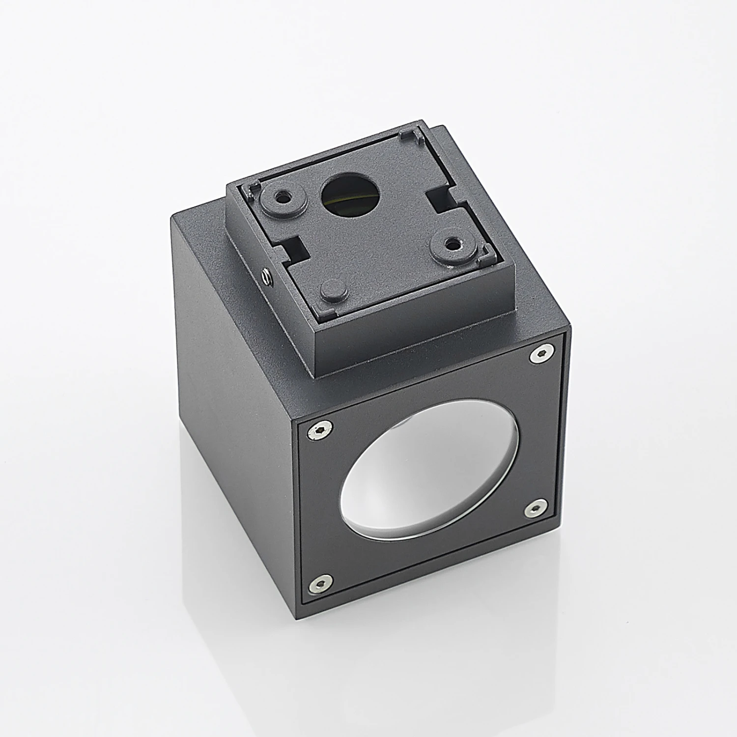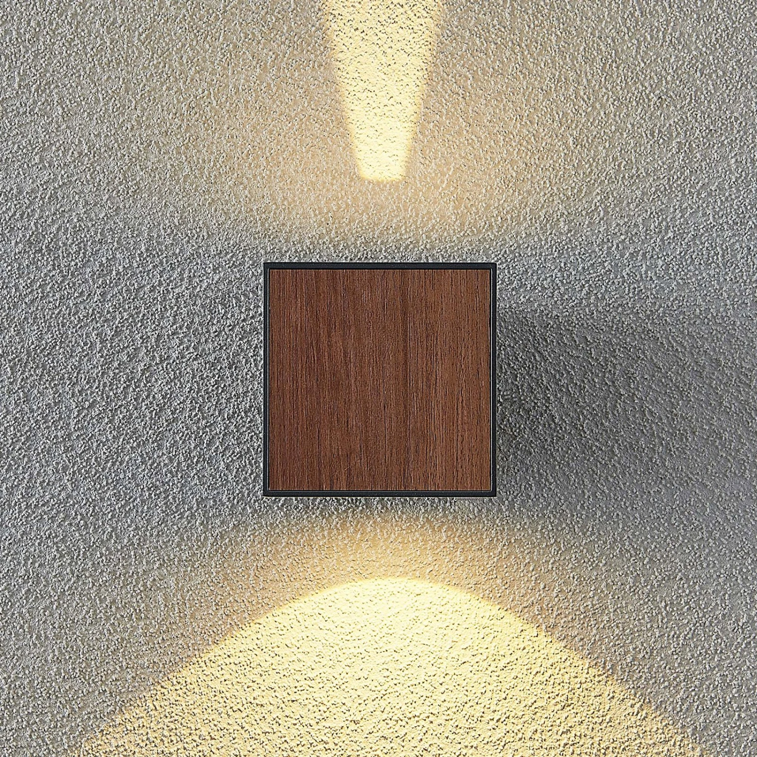 LED-Außenwandleuchte Cimala mit Holzapplikationen in Würfelform, up and down