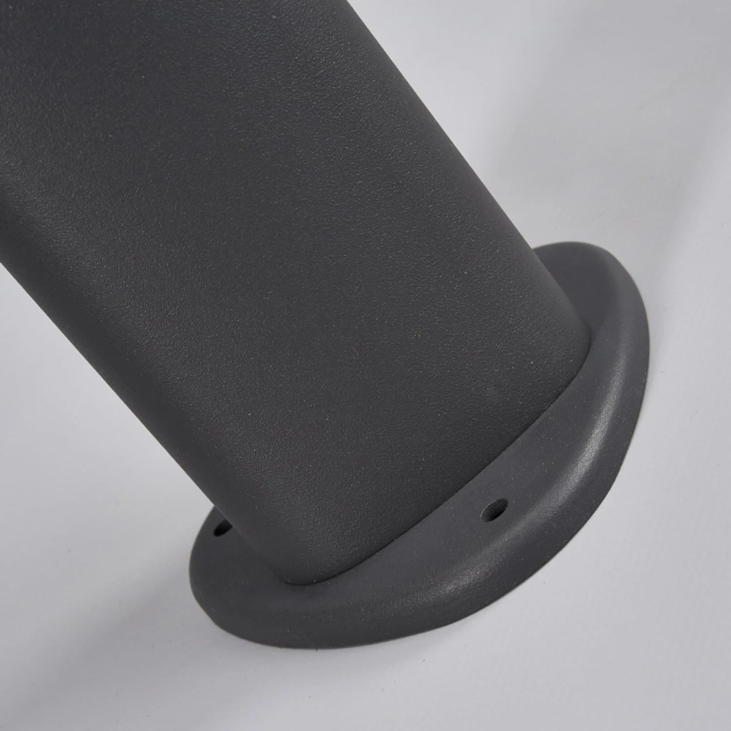 Die Sockelleuchte Milou ist aus Aluminium-Druckguss gefertigt und präsentiert sich in zeitgemäßer Optik. Die Oberfläche des dreikantigen Aluminium-Korpus ist anthrazitfarben lackiert, im oberen Teil befindet sich ein Einsatz aus Polycarbonat, hinter dem die leuchtstarken LED-Leuchtmittel sitzen. Es handelt sich bei ihnen um ein energieeffizientes Markenprodukt von Osram.