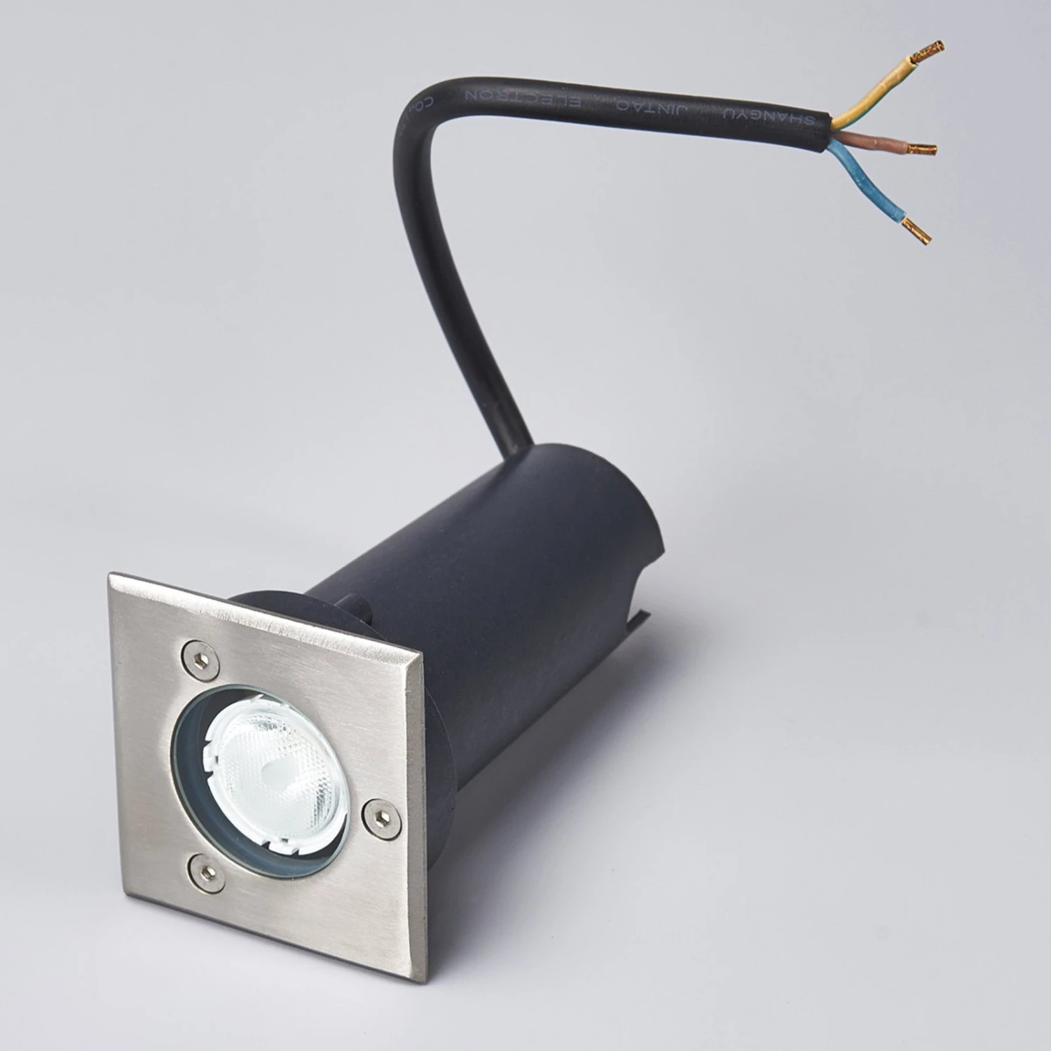 Ein Edelstahlrahmen in eckiger Form fügt sich bei dieser LED-Bodeneinbauleuchte um das LED-Leuchtmittel. Dieses Design wirkt sehr zeitlos und so kann Kenan, die in warmweißer Lichtfarbe leuchtet, im Außenbereich sehr vielfältig zum Einsatz kommen. Die Bodeneinbauleuchte hat einen Aluminiumkorpus und die LEDs werden von einer Abdeckung aus Temperglas geschützt, so dass sie besonders robust ist. Die LED-Leuchte kann bis maximal 500 kg belastet bzw. befahren werden.