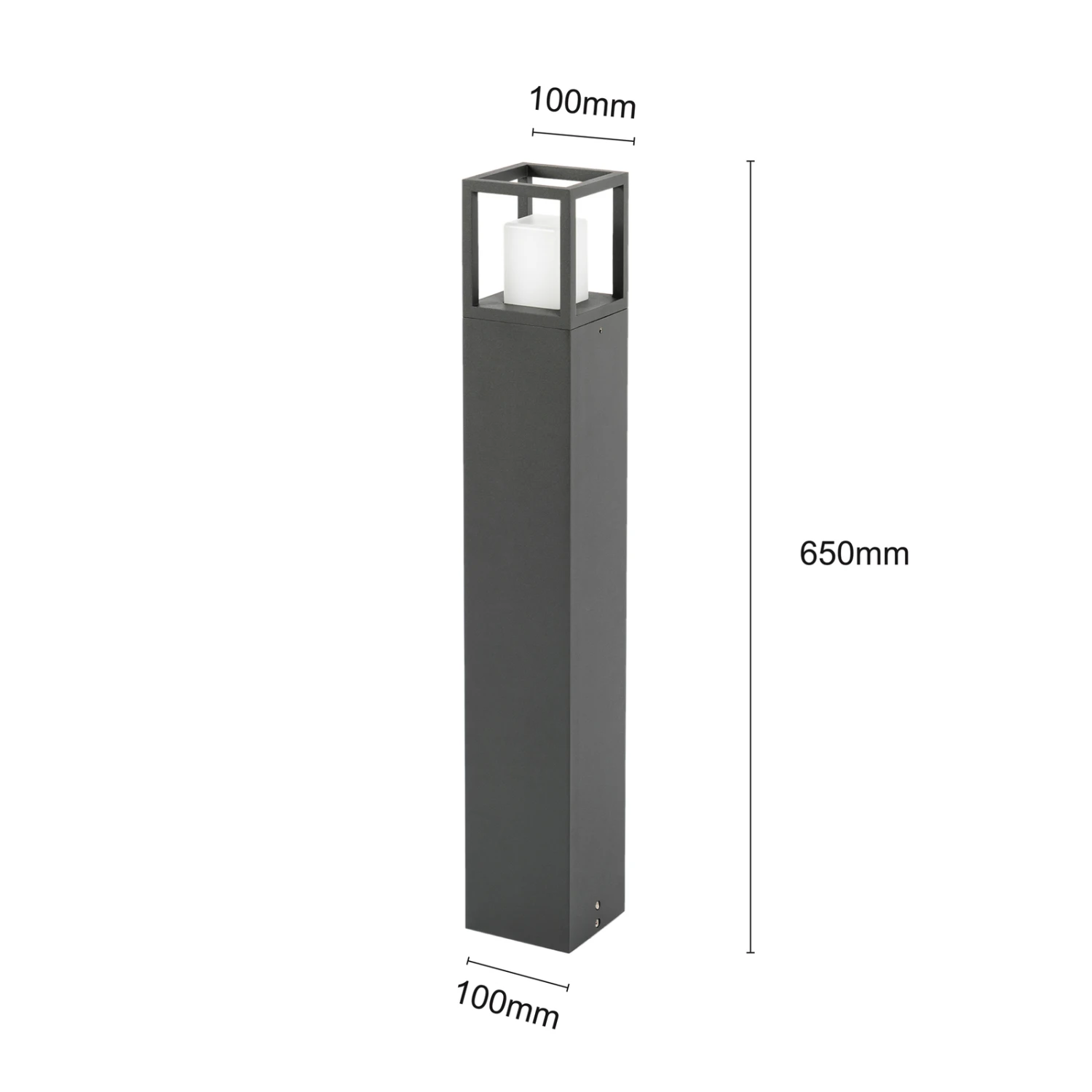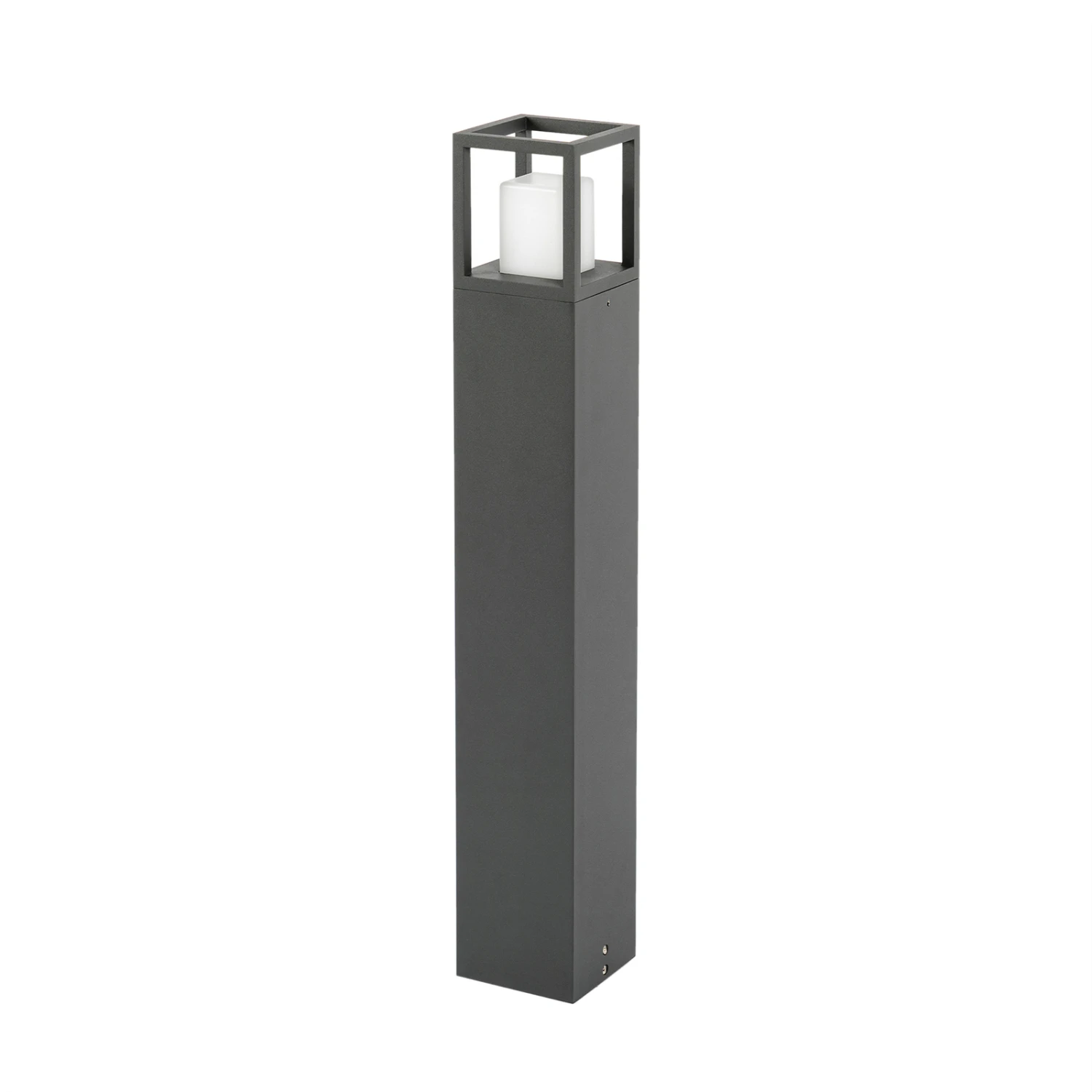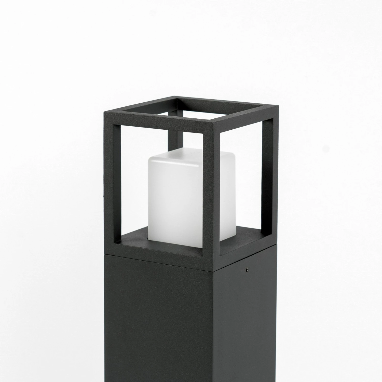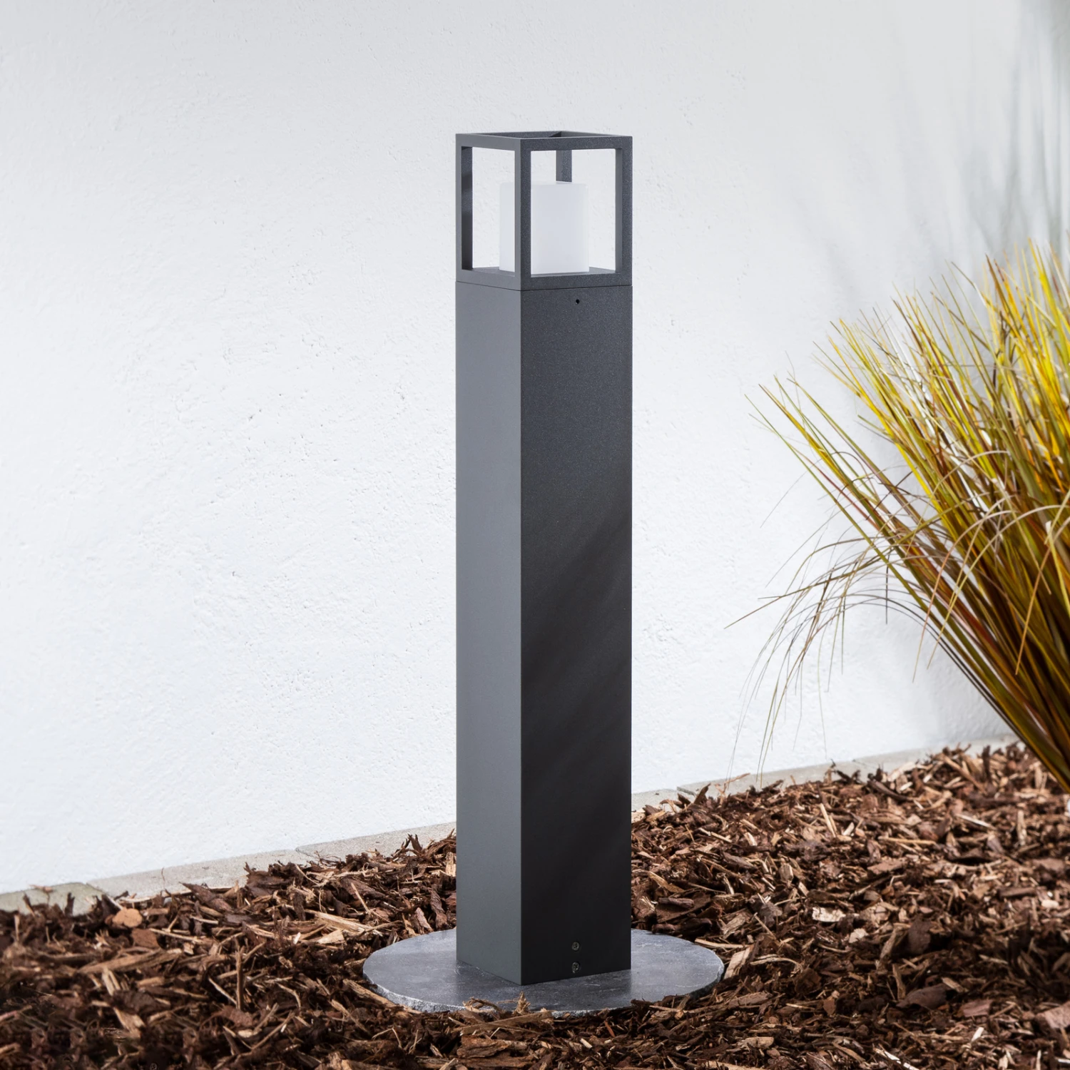 Die LED-Wegeleuchte Rumina besticht mit ihrem dunklen Design. Das dunkelgraue Finish, mit dem das robuste Aluminiumgehäuse verarbeitet wurde, lässt sich sehr gut in moderne Umgebungen einfügen, ohne dabei sofort aufzufallen. Die Leuchte besitzt eine kubusförmige Schirmabdeckung, unter der zahlreiche leuchtstarke LEDs verborgen sind. Sie spenden ein angenehmes, warmweißes Licht, das entlang eines Gartenweges sehr einladend aussehen kann. Die LEDs sind sparsam im Stromverbrauch und gut vor der Witterung geschützt, sodass diese Leuchte zuverlässig im Außenbereich ihren Dienst verrichten kann.