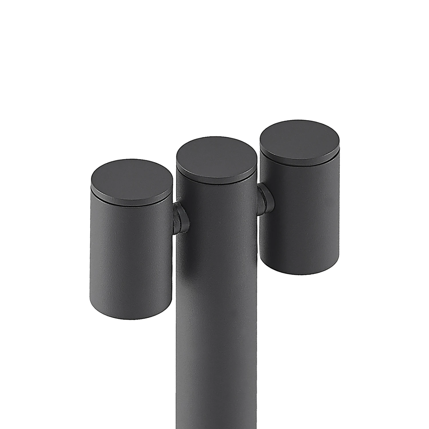 Wer auf der Suche nach einer modernen und stimmigen Beleuchtung für den Außenbereich ist, wird mit der LED-Sockellampe Saige nicht enttäuscht. Ihr Leuchtenkörper besteht aus Aluminium und besitzt eine dunkelgraue Oberfläche. An der Spitze ihres Standbeines sitzen zwei Leuchtenschirme, die eine Zylinderform besitzen und mit festverbauten LEDs ausgestattet sind und zudem bewegt werden können, so dass sich das Licht flexibel ausrichten lässt. Für ein stimmiges Gesamtbild im Garten kann Saige mit weiteren Leuchten ihrer Serie kombiniert werden. Die Schutzart IP54 verleiht ihr einen robusten Charakter, denn sie ist gegen Spritzwasser und Staub geschützt.