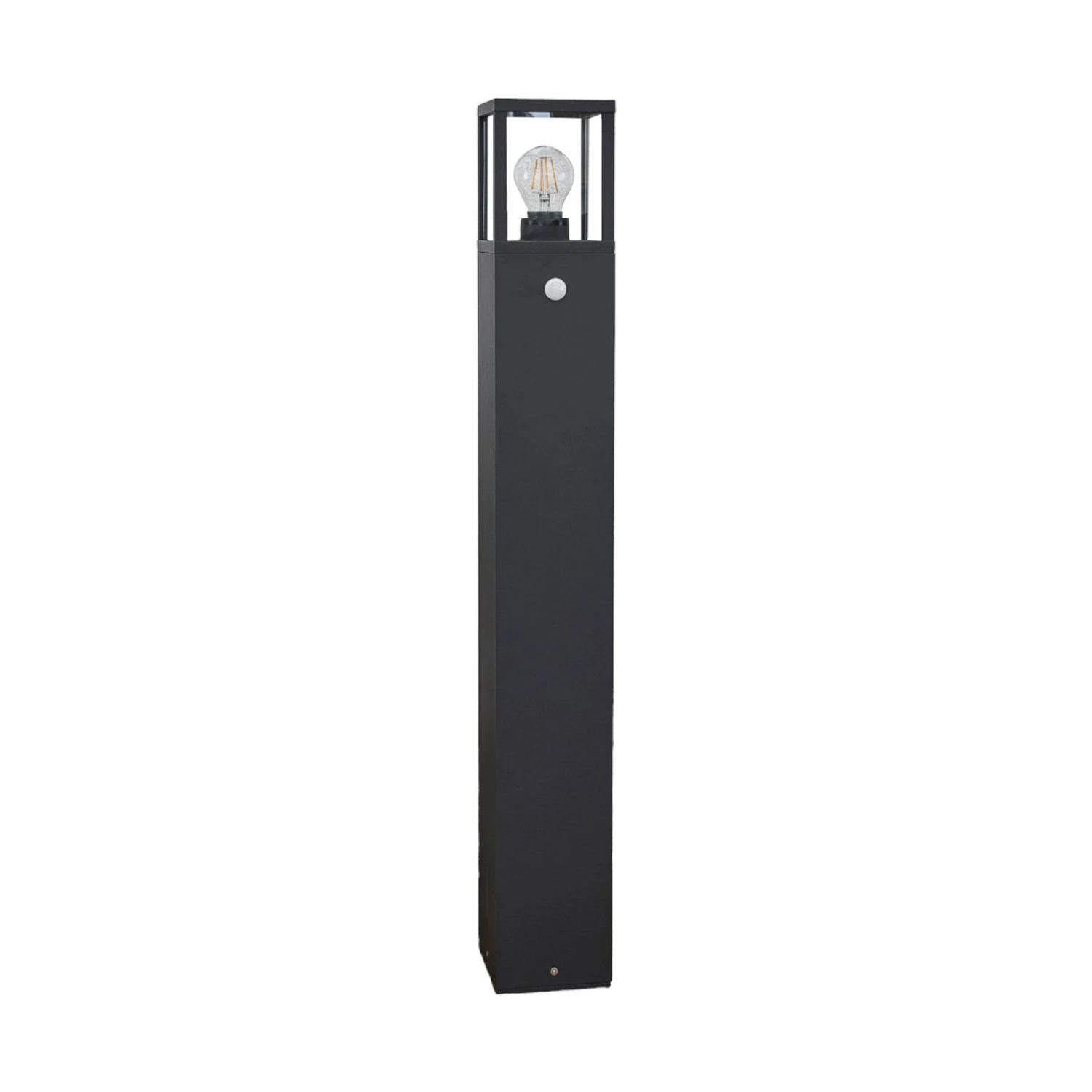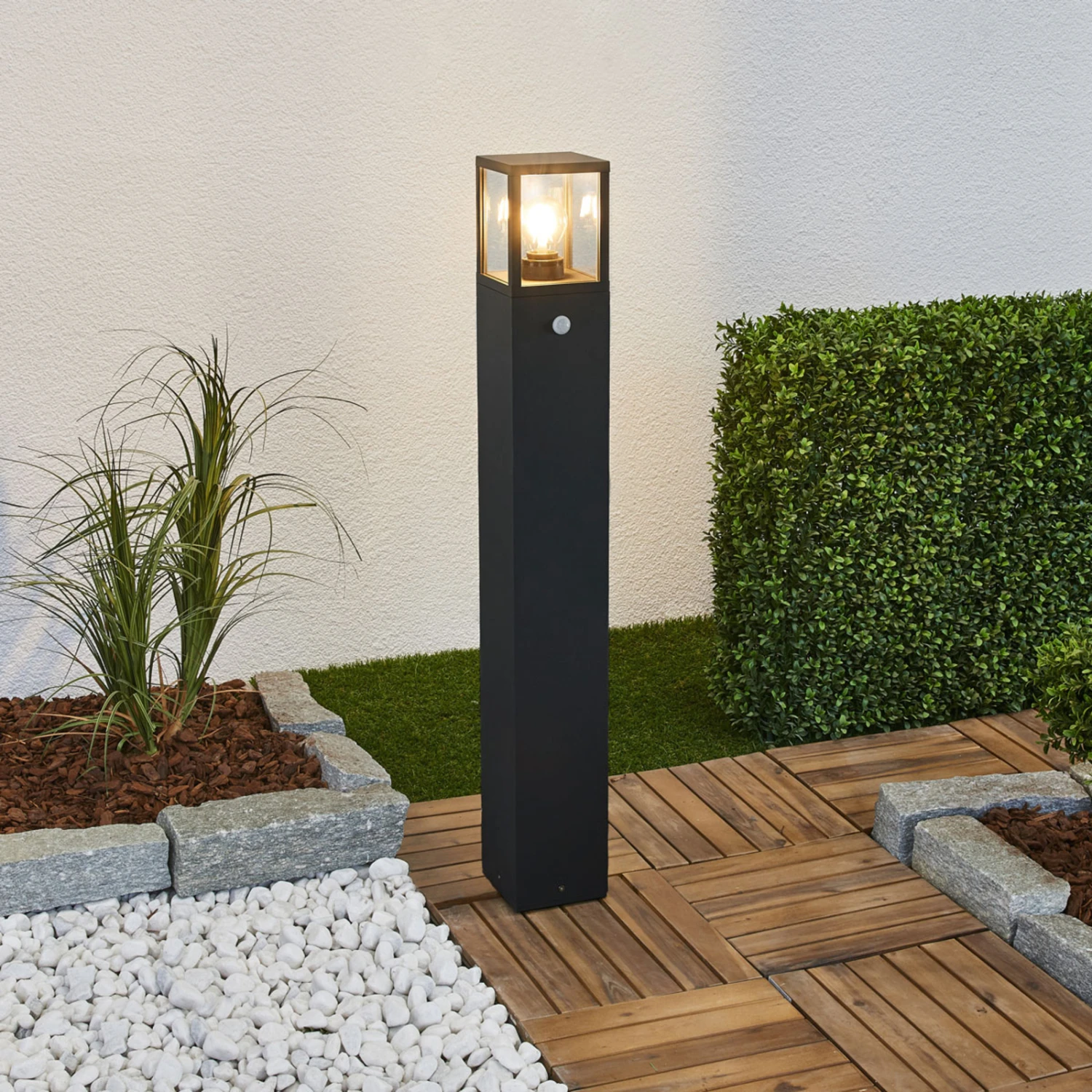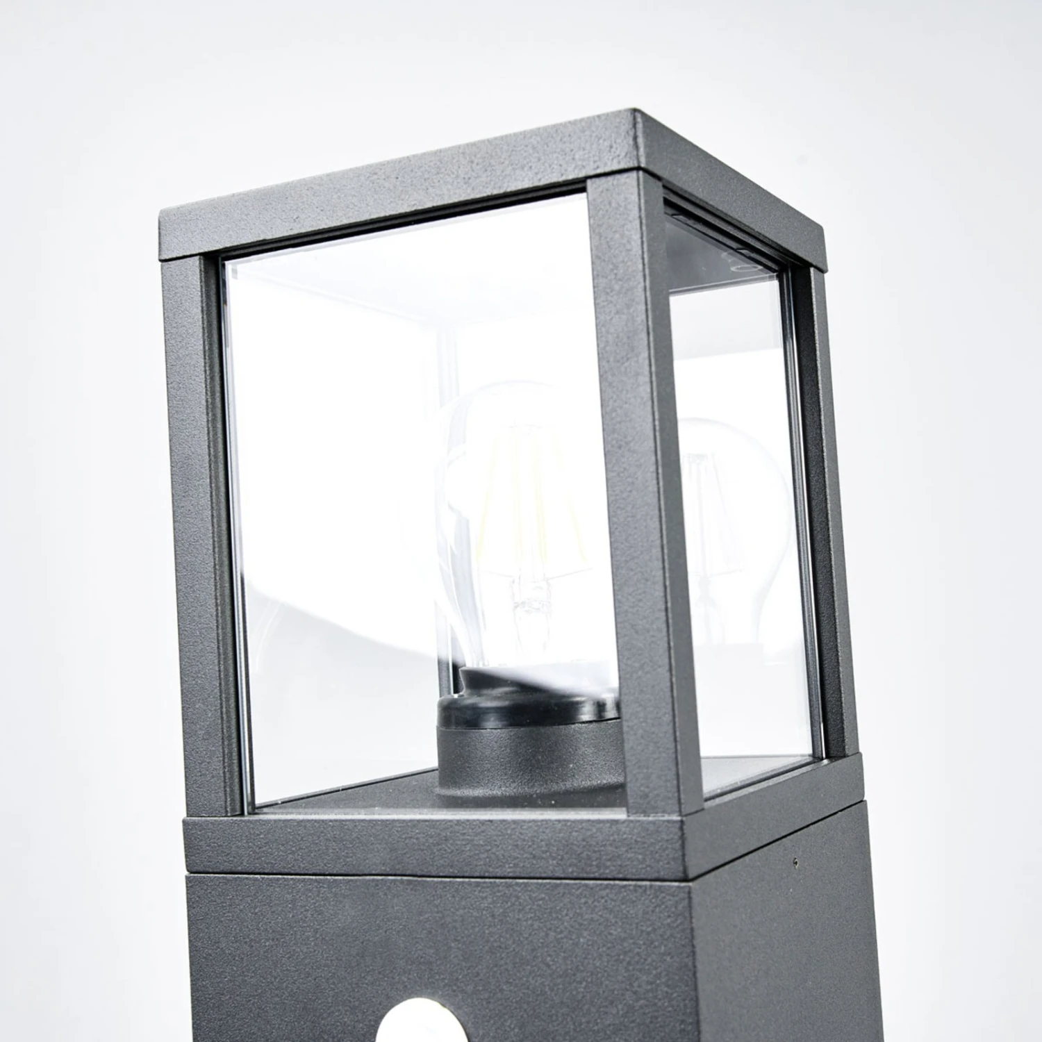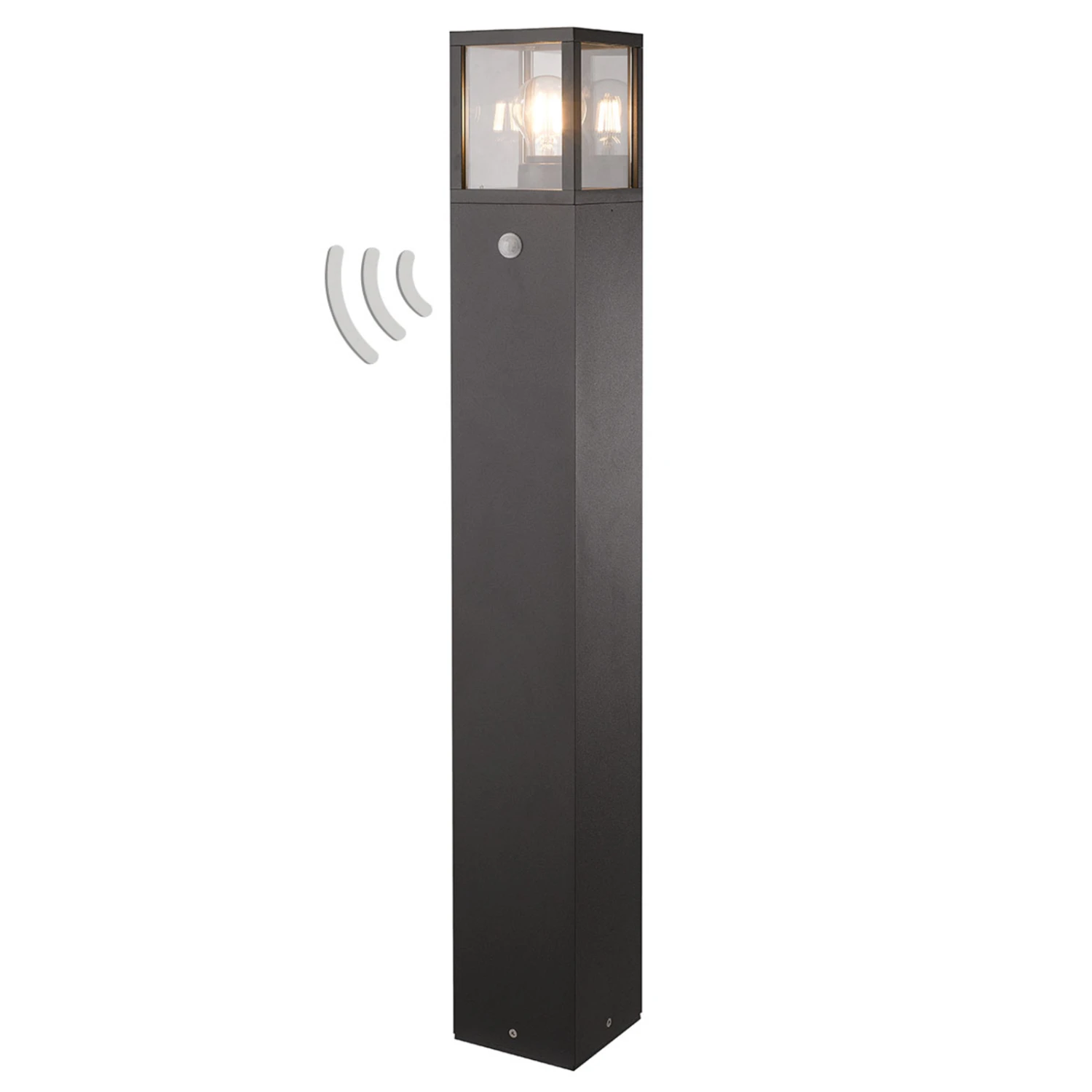 Eckige Wegeleuchte Klemens mit grafitgrauem Aluminiumkörper und integriertem Bewegungsmelder