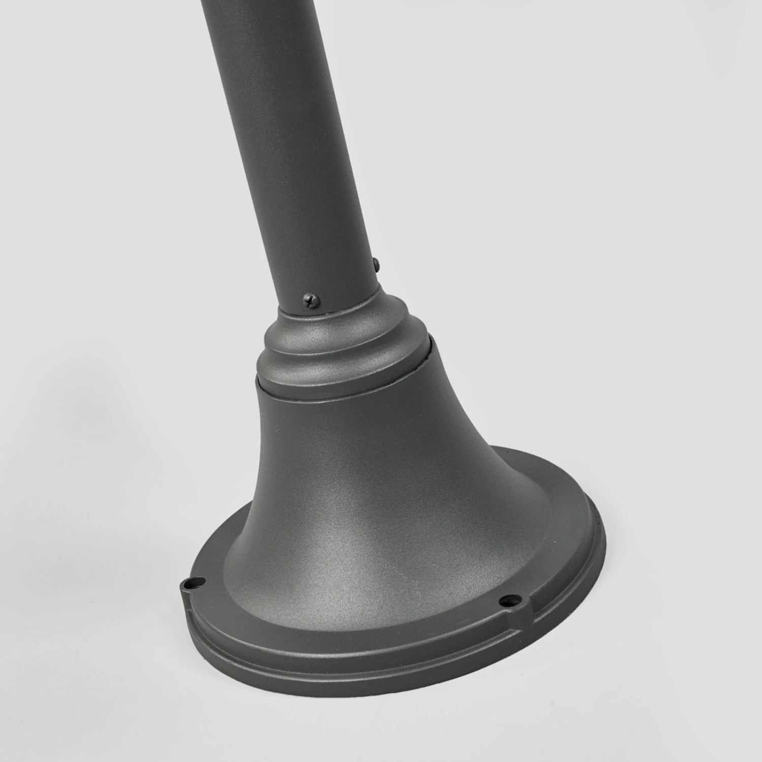 Der Kandelaber Madea passt zu vielen Umgebungen von Häusern bzw. Garten- und Parkanlagen und kann mit allen passenden Lampen, die einen E27-Sockel haben, bestückt werden. Dabei handelt es sich nicht nur um Glüh- und Halogenlampen, sondern auch um Energiespar- und LED-Leuchtmittel. Die grafitgraue Oberfläche wirkt zeitlos und dezent.