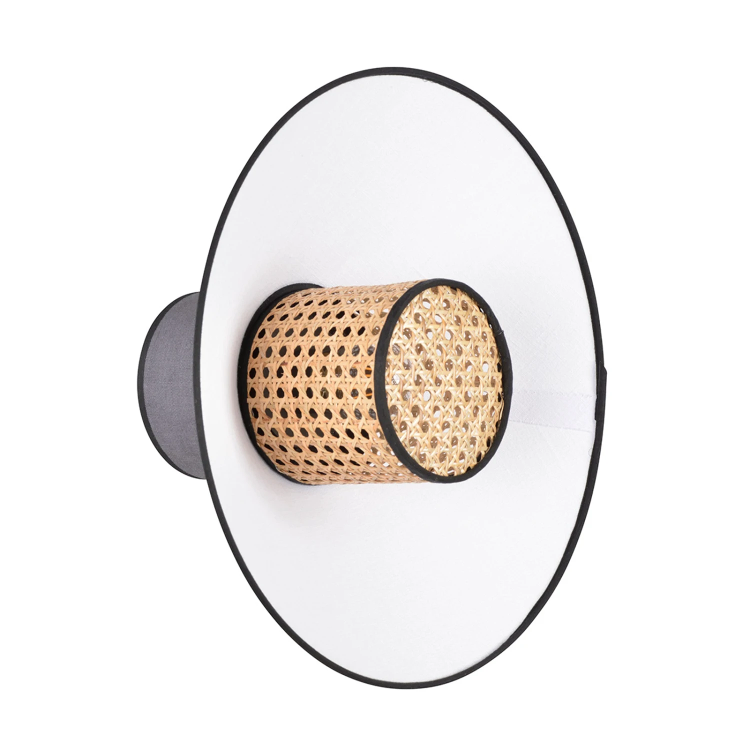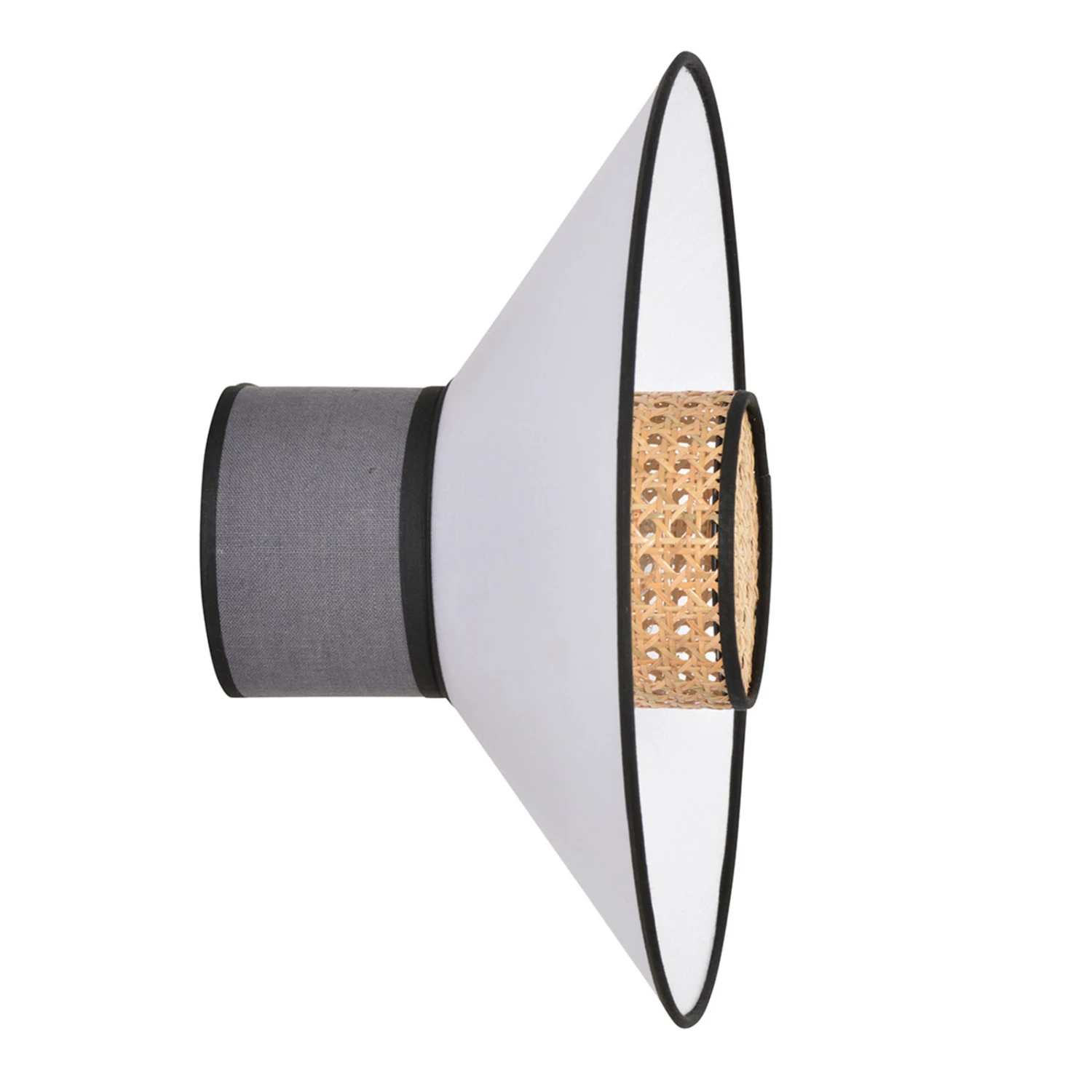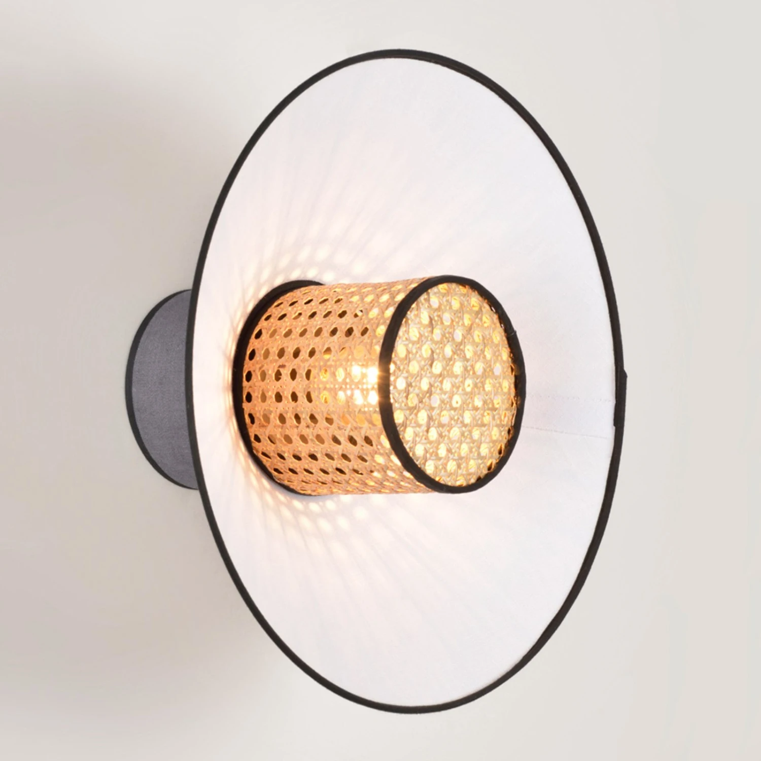 Beim Anblick der Wandleuchte Singapour werden Assoziationen mit Asien geweckt, was sich auch in der Namensgebung widerspiegelt. Die dekorative Optik wird von dem konischen Schirm aus Rattangeflecht bestimmt, der das Leuchtmittel umgibt. Das abstrahlende Licht der eingesetzten Lampe bewirkt eine Wiedergabe des Musters auf dem großen, runden Schirm aus gewaschenem Leinen, der zwischen dem Rattanschirm und der Wandhalterung aus Metall sitzt. Eine Wandleuchte, die sich einzeln oder im Duo für die angenehme Zusatzbeleuchtung anbietet, in größerer Stückzahl leuchtet sie auch einen langen Flur behaglich aus.
