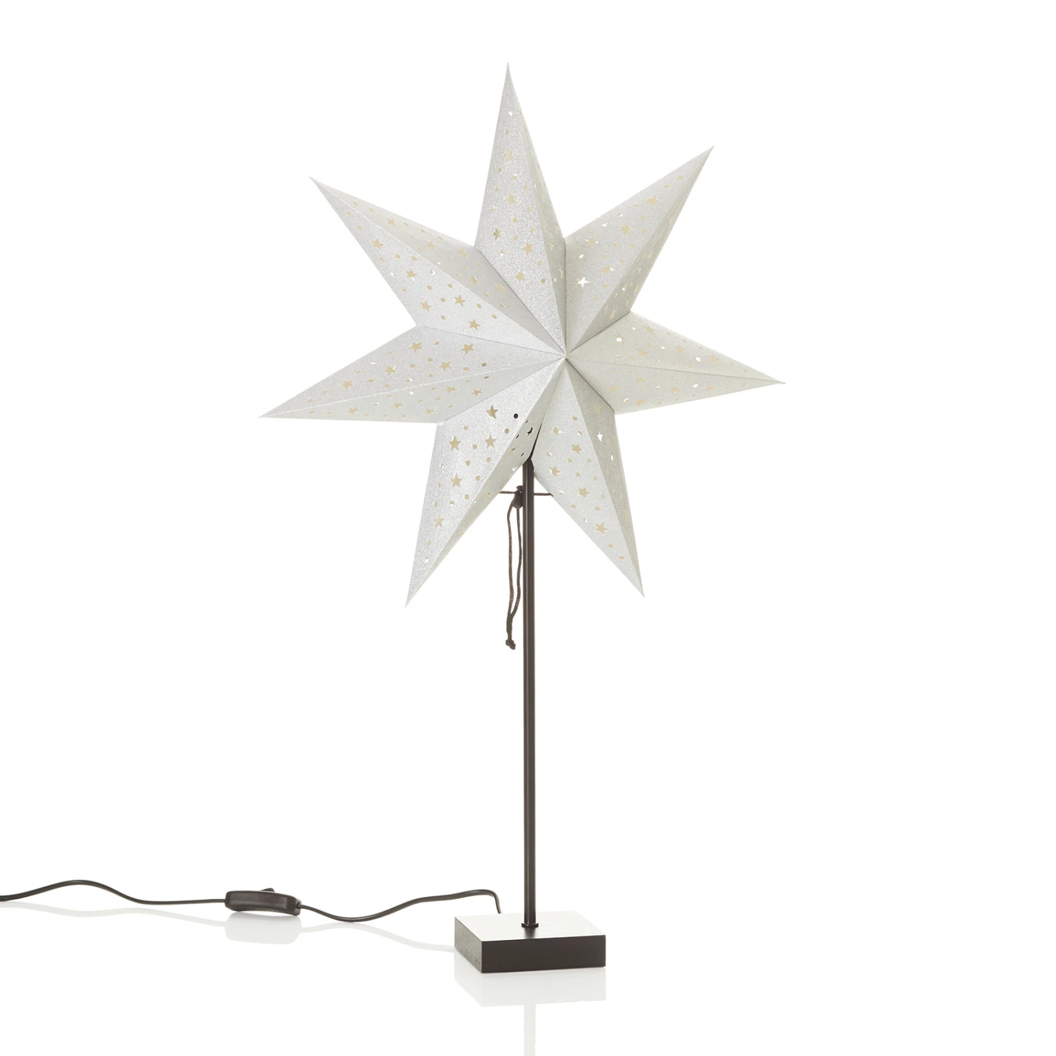Egal, wo der Stand-Stern Solvalla seinen Platz findet, ob auf einem Tischchen im Wohnzimmer, einer Kommode im Schlafraum oder vor einem Fenster – er wird überall Aufmerksamkeit erregen und beim Betrachter ein Gefühl der Vorfreude auf das Weihnachtsfest aufkommen lassen. Mit Kabelschalter ausgestattet.