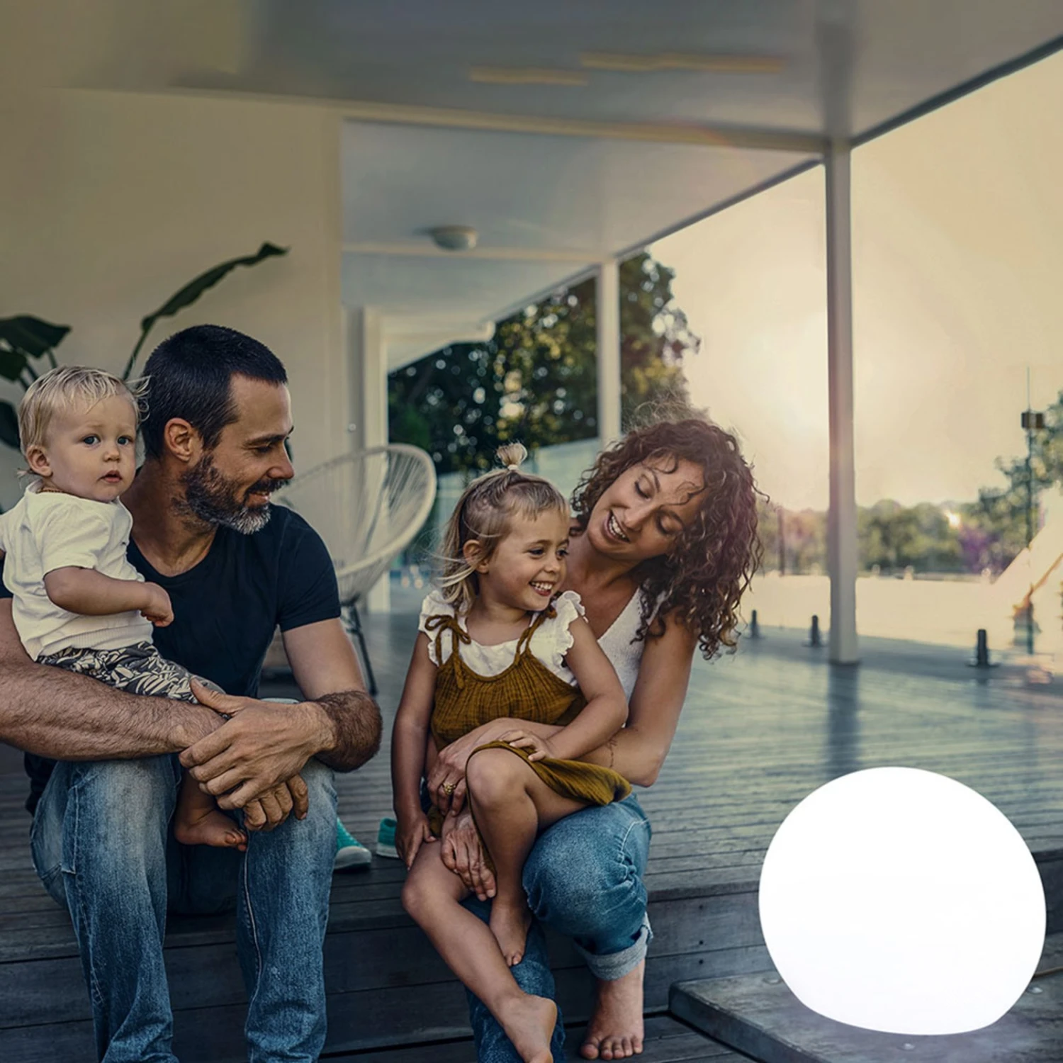 Aus wetterfestem, uv-beständigem Polyethylen besteht die Dekorationsleuchte Buly, die sich auf der Terrasse, auf dem Rasen oder in Beeten platzieren lässt und besonders in Kombination mit weiteren Leuchten der Serie als Ensemble zur leuchtenden Dekoration wird. Gleichmäßig wird der kugelförmige Korpus von einer LED-Lampe mit E27-Sockel im Innern beleuchtet. Das Leuchtmittel wird mitgeliefert und lässt sich auswechseln.