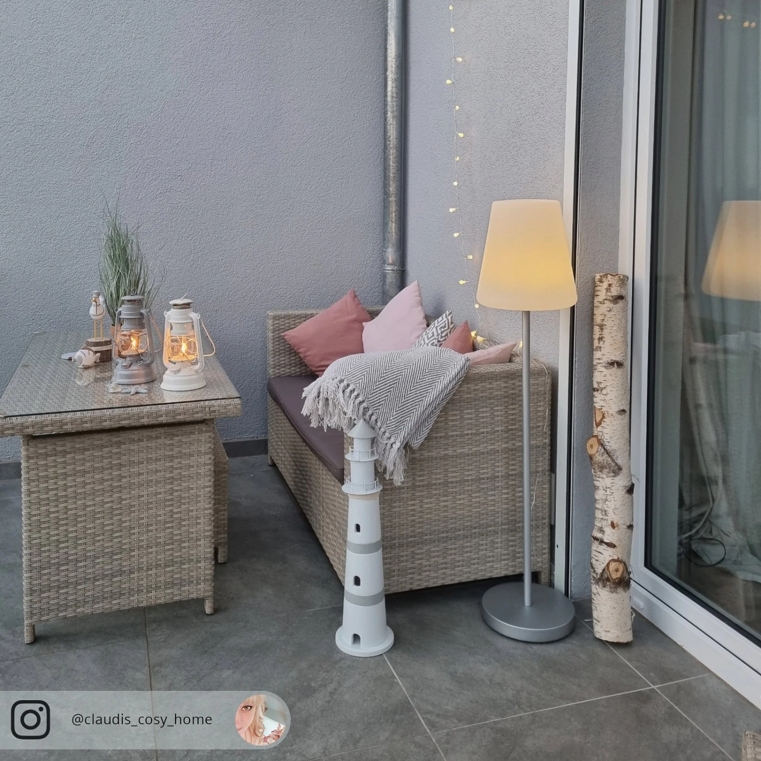 Die Ausstattung mit einem Solarpanel und einem Akku macht die Leuchte zu einer autarken Lichtquelle für Terrassen oder den Garten, auch in gastronomischen Bereichen. Im Akkubetrieb leuchtet sie für bis zu 20 Stunden, im Solarbetrieb für bis zu 6 Stunden. Über das mitgelieferte, 150 cm lange Ladekabel lässt sich der Akku an der Steckdose wieder aufladen, wenn die Sonne mal nicht scheint. Die Einschaltung des Lichts ist einstellbar und kann auf zwei Arten erfolgen: durch manuelles Einschalten oder automatisch über den integrierten Dämmerungssensor.