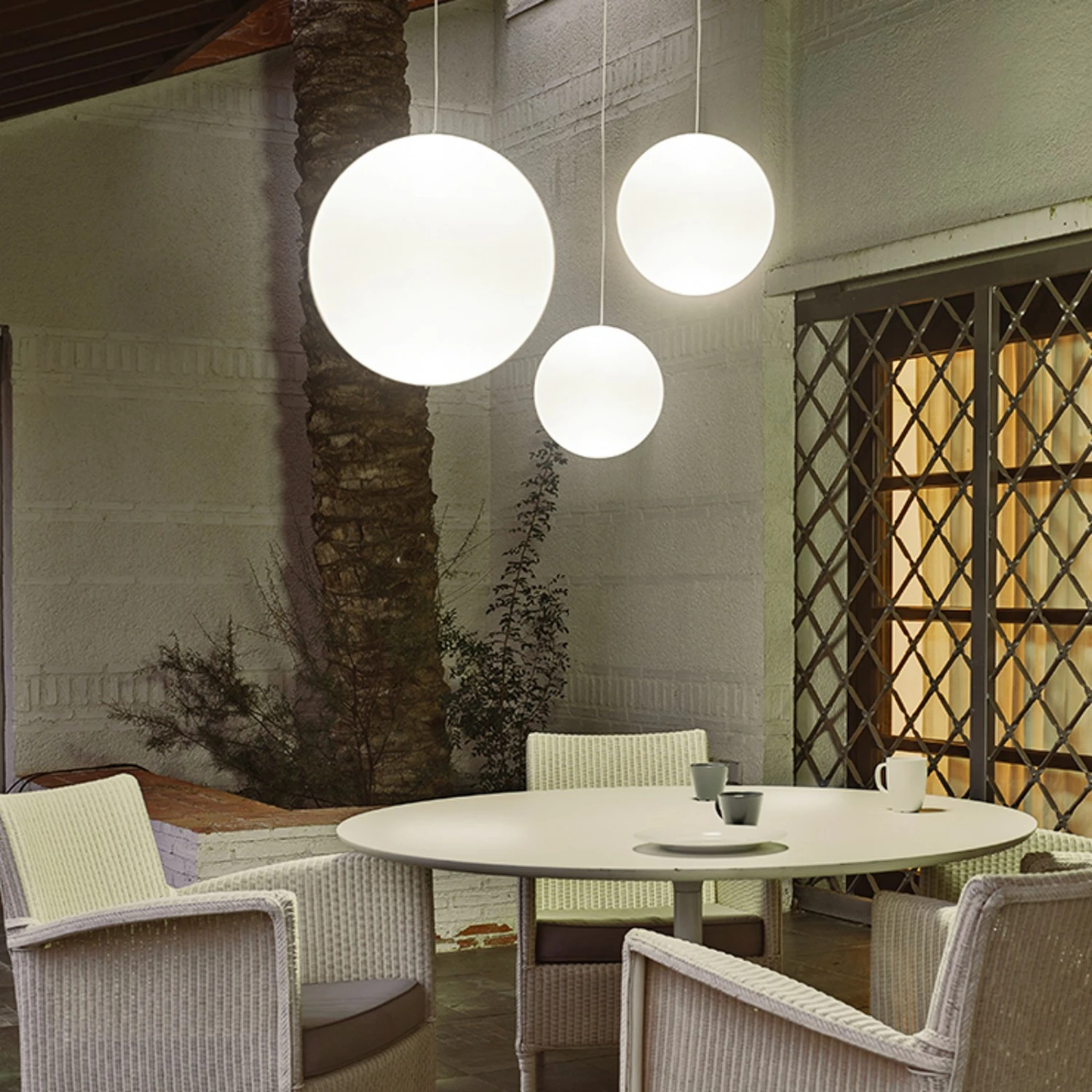 Die kugelförmige LED-Hängeleuchte Pianeta ist zeitlos gestaltet und fügt sich daher in zahlreiche Umgebungen problemlos ein. Sie kann beispielsweise auf dem Balkon, auf der Terrasse oder auch im Garten verwendet werden. Mit der beiliegenden Fernbedienung lässt sich die Pendellampe dimmen, außerdem kann die Lichtfarbe von Warmweiß bis Tageslicht variiert werden. So lassen sich die Lichtverhältnisse ideal den individuellen Bedürfnissen anpassen. Pianeta kann ganz bequem über das mitgelieferte USB-Kabel aufgeladen werden, sodass während des Betriebs kein Stromkabel benötigt wird und die Leuchte flexibel platziert werden kann.