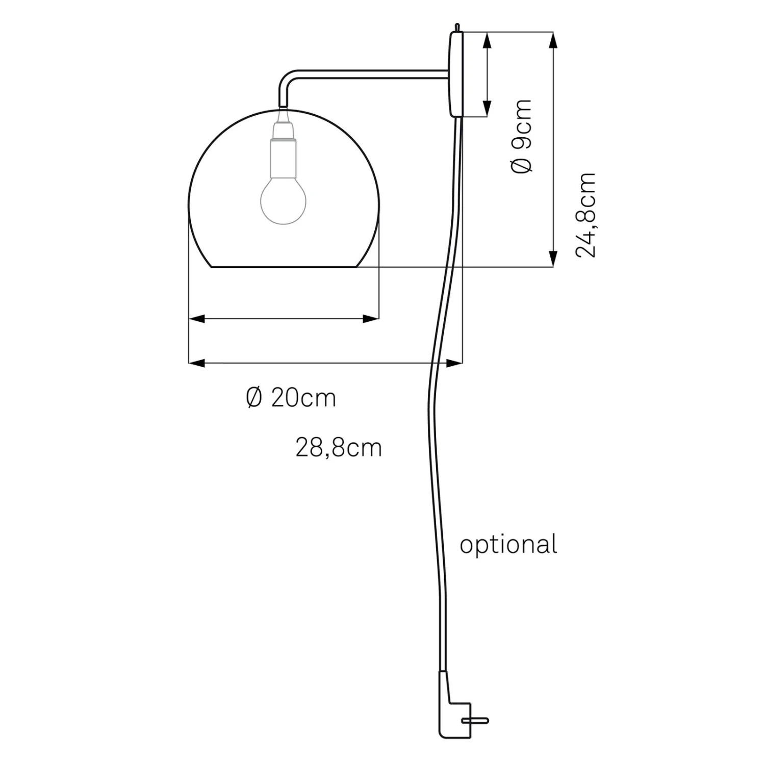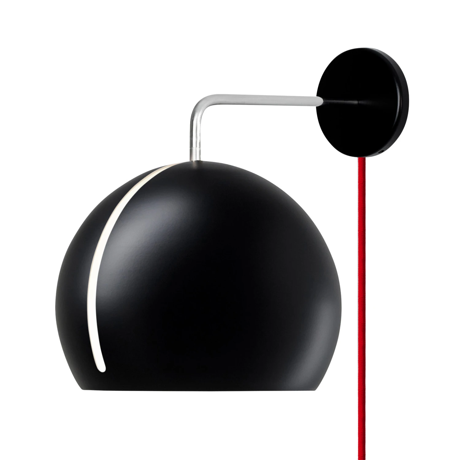 Tilt Globe Wall – funktionale Wandleuchte mit rotem Kabel und Stecker