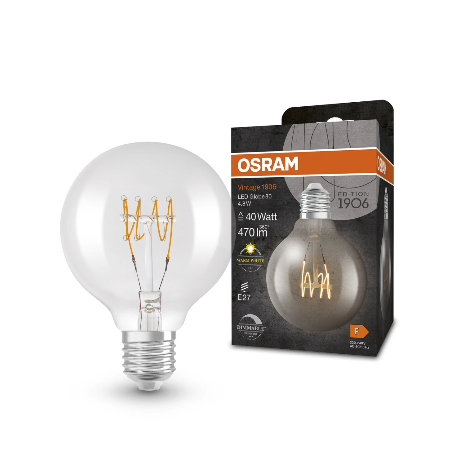 Dimmbar: E27 LED-Globelampe Classic G80, 4,8 W, 2.700 K