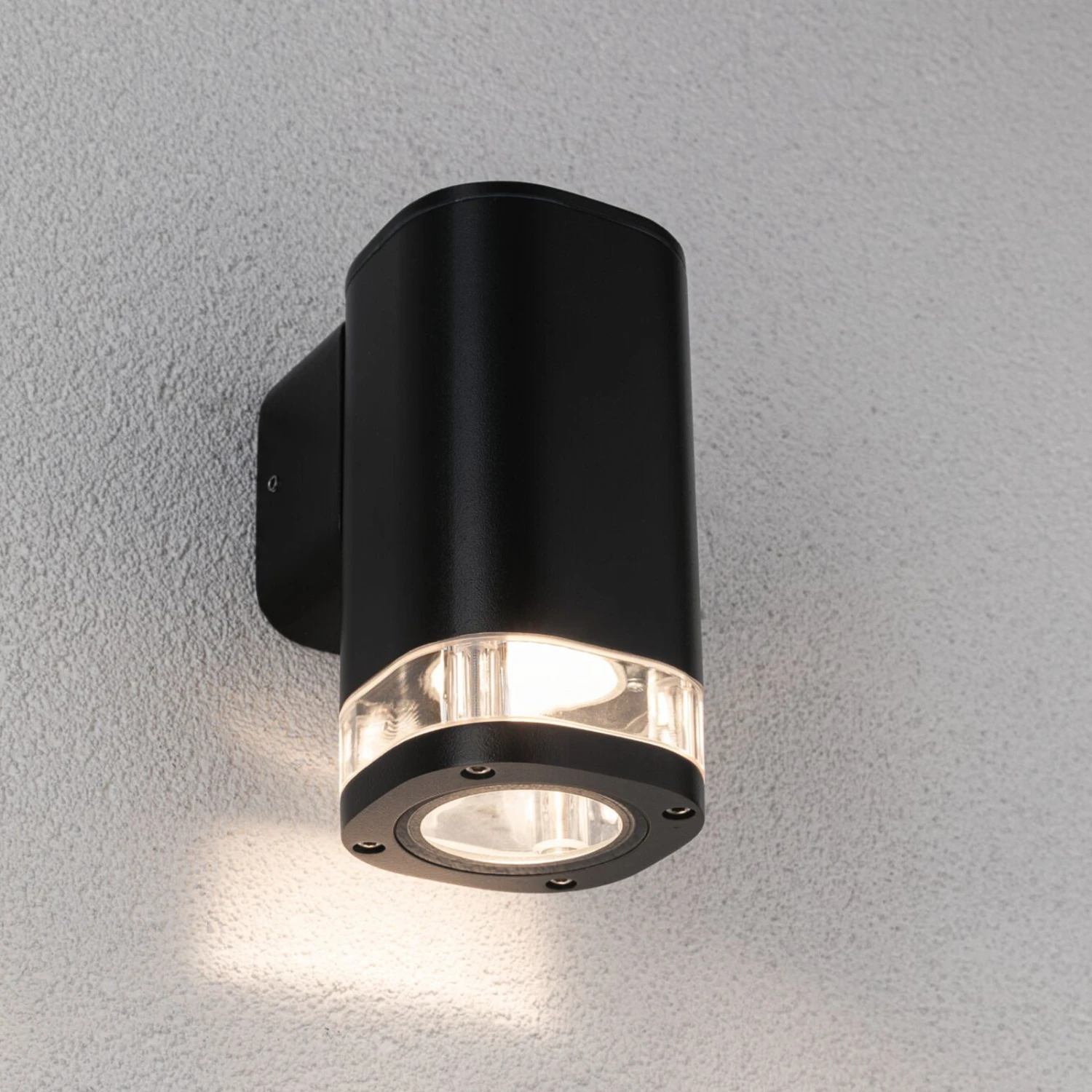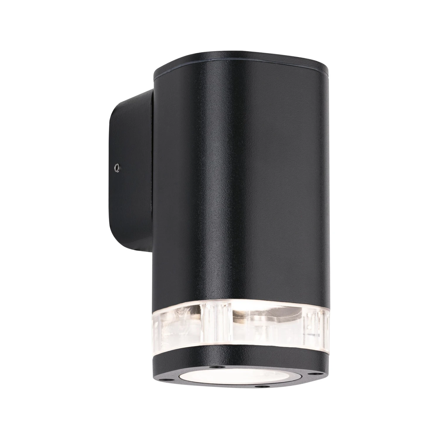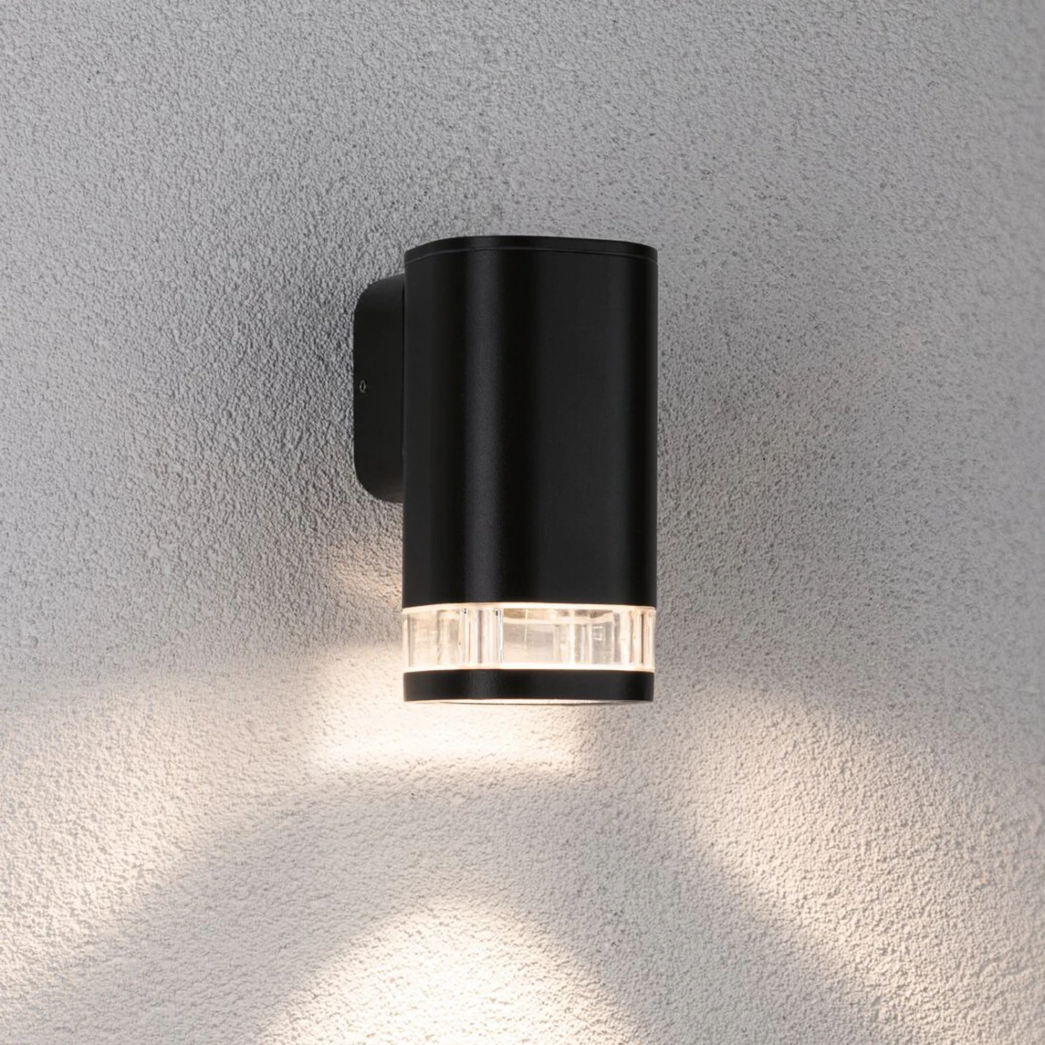 Mit der Außenwandleuchte Colum aus Aluminium, die mit Schutzart IP44 ausgestattet und seewasserbeständig ist, lassen sich Eingangsbereiche oder Terrassen auch in Küstenregionen effektvoll beleuchten. Der transparente Lichtaustritt im unteren Bereich der Leuchte lässt das Licht des eingesetzten Leuchtmittels in weitem Winkel in Richtung Boden strahlen und erzeugt zusätzlich einen schönen Lichteffekt an der Wand.