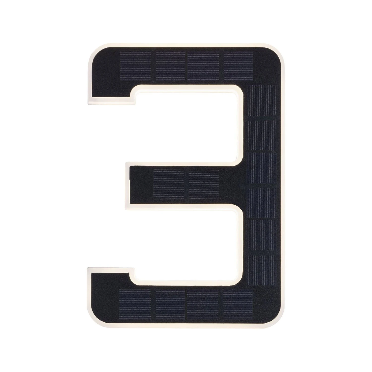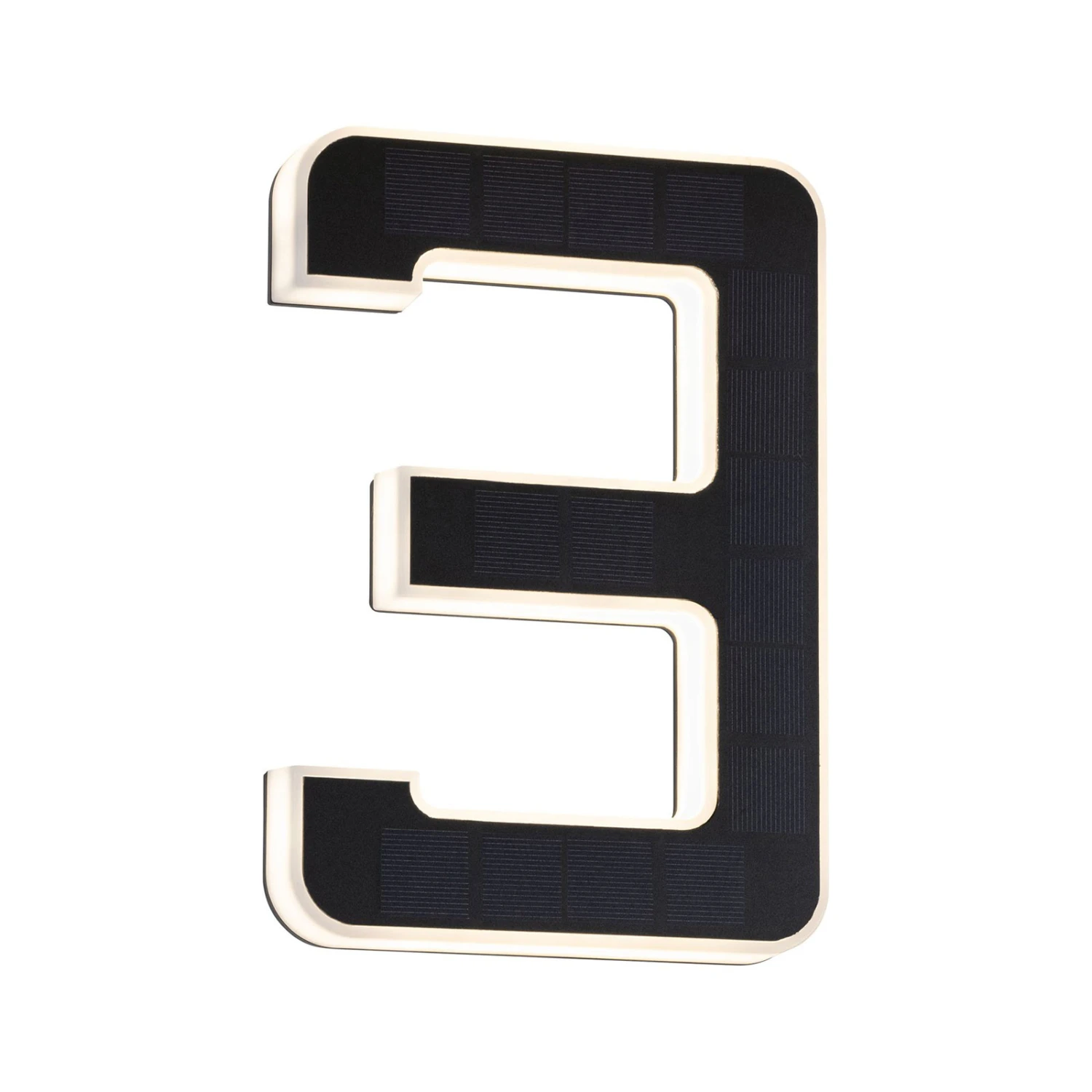 Outdoor-Solar-Hausnummer in Schwarz mit warmweißer Beleuchtung