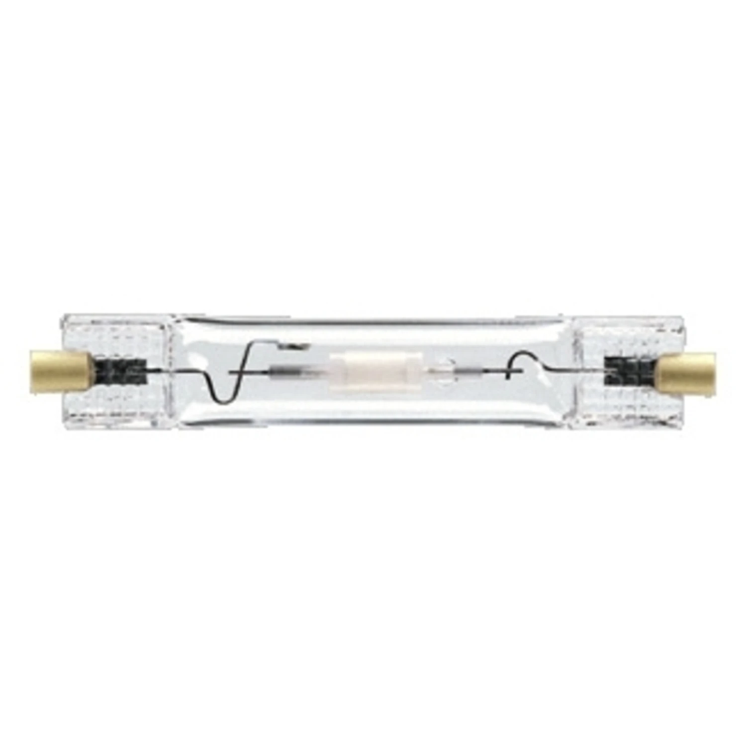 Zweiseitig-gesockelte, kompakte Metallhalogendampflampe.