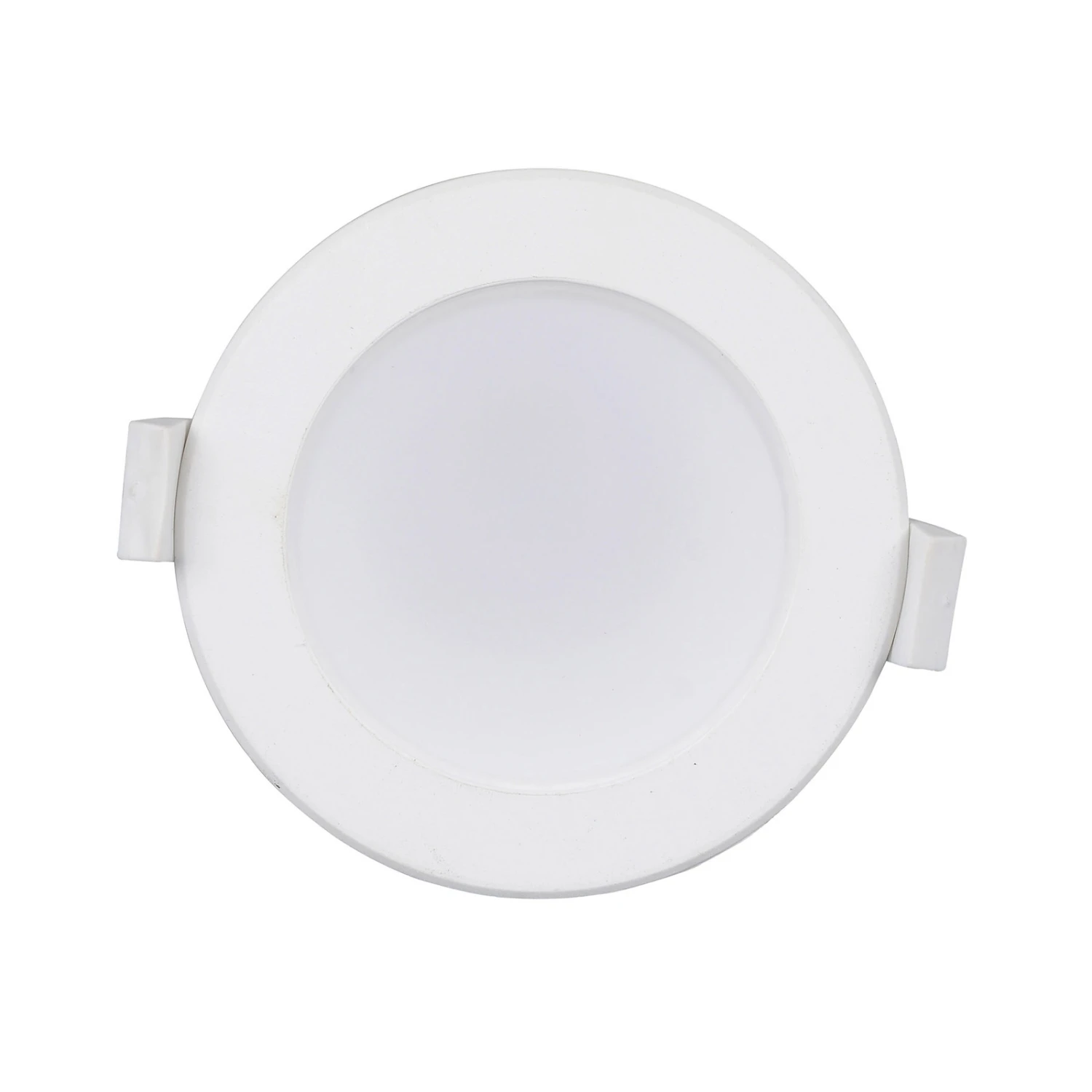 Großes, dimmbares LED-Downlight Rida mit runder, weißer Einfassung; Lichtfarbe steuerbar via DIP-Schalter, IP44, 3er-Set
