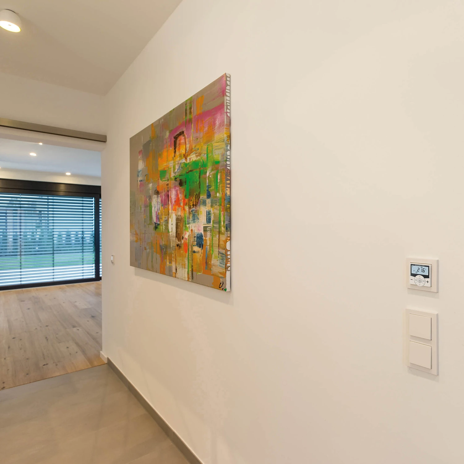 Über dieses Smart Home Wandthermostat mit DuoFern-Funkschnittstelle lässt sich die herkömmliche Fußbodenheizung oder Elektroheizung in die smarte HomePilot®-Steuerung einbinden, um diese via App zu bedienen. Hier können bis zu 20 DuoFern Geräte miteinander verknüpft werden. Bis zu sechs Schaltzeitpunkte und vier separat einstellbare Soll-Temperaturen und Tages- sowie Wochenprogramme stehen bereit, sodass über die Bedarfsgerechte Heizungssteuerung Energiekosten eingespart werden können. Bei HomePilot®-Einbindung lässt sich die bediente Heizung mit anderen Elementen des Systems koppeln, um zum Beispiel die Markise vor dem Wintergarten bei Erreichen der gewünschten Temperatur auszufahren.