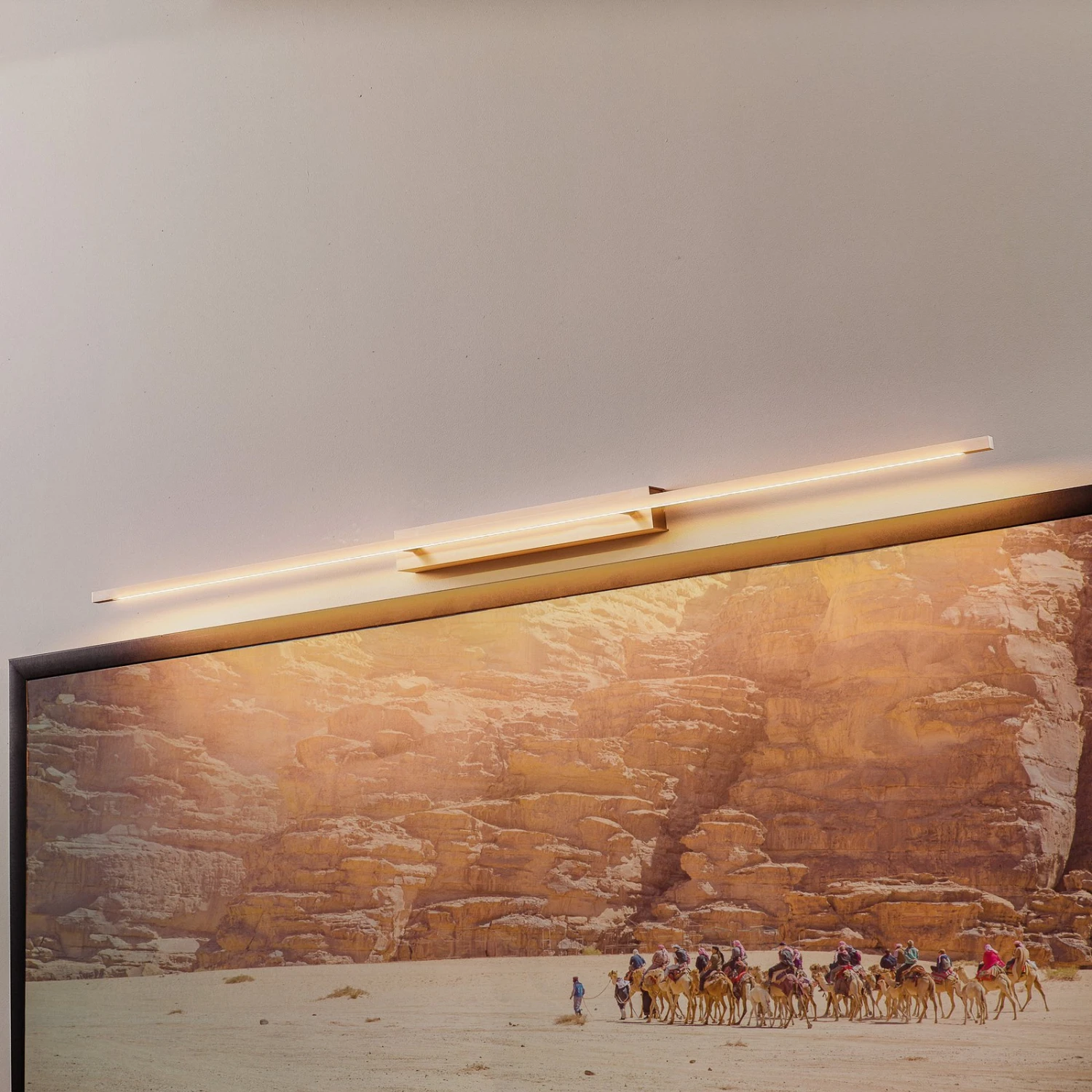 Die Helligkeit lässt sich bei Bedarf anpassen, indem man dafür einen Phasenan- oder -abschlussdimmer nutzt bzw. installiert. Über einen extragroßen Anschlusskasten erreicht man eine bequeme Montage der LED-Bilderleuchte und kann alles komfortabel in diesem Wandkasten verstauen. Das LED-Licht des durchgängigen LED-Bands ist nicht nur effizient und hell, sondern zeichnet sich auch durch Flickerfreiheit aus, so dass es als besonders angenehm wahrgenommen wird.
