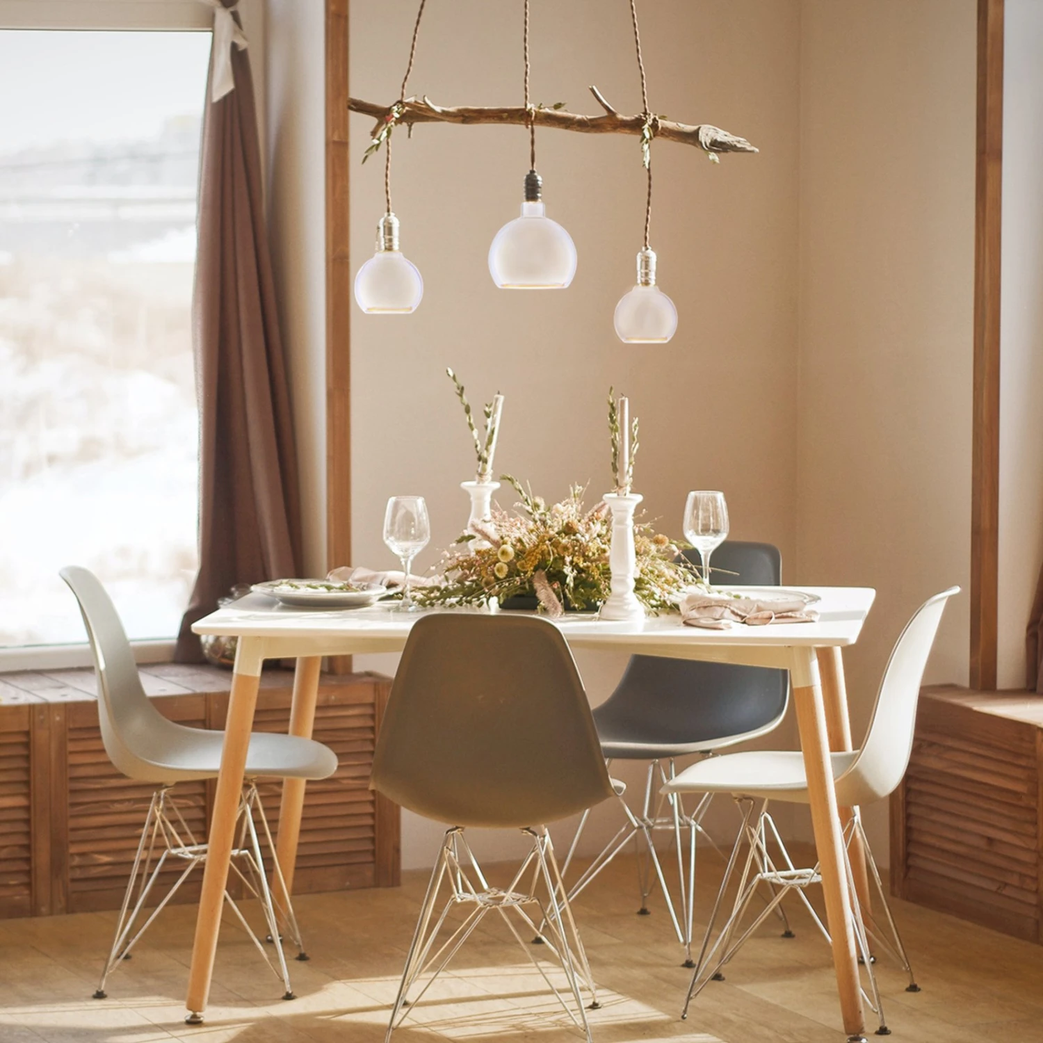 Die Form des Glasgehäuses, die Öffnung an der Oberseite und die matte Oberfläche machen die LED-Floating-Globelampe zu einem dekorativen Lichtspender, der vor allem in offen gestalteten Fassungsleuchten oder Leuchten ohne Schirm zu überzeugen weiß. Dank der dekorativen Optik wird die Lampe sowohl im ein- als auch im ausgeschalteten Zustand zu einem schönen Blickfang im Wohnbereich. Mit einem externen Phasendimmer ist es zudem möglich, die Helligkeit des Leuchtmittels zu regulieren. Dank der verbauten Ambient Dimming-Technologie wird die Lichtfarbe während des Dimmvorgangs wärmer und sorgt für eine angenehme Atmosphäre.