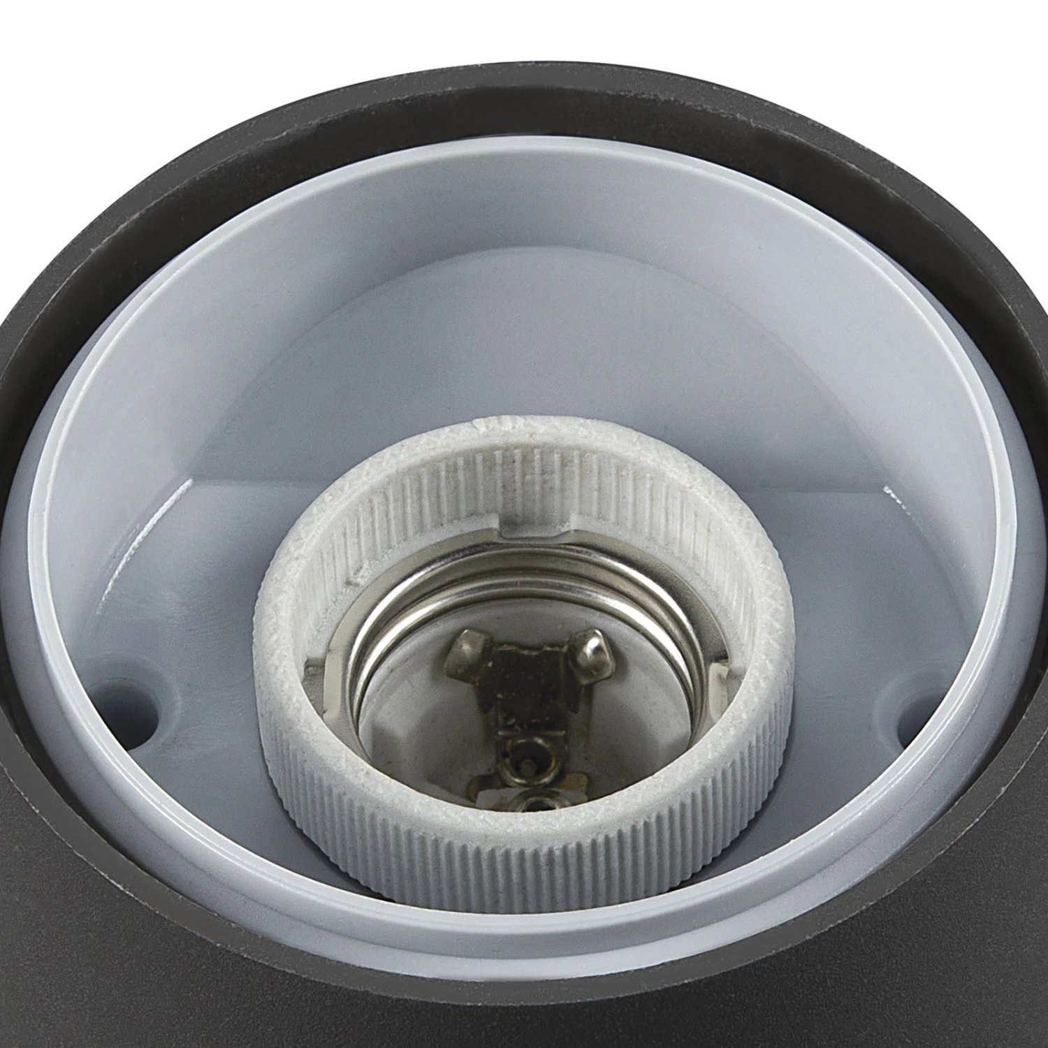 Ein Zylinder aus robustem Aluminium in anthrazitschwarzem Finish bildet den Korpus der Wegeleuchte Grafit. Hinzu kommt ein Schirm aus satiniertem Acryl, der den oberen Abschnitt bildet. Nach dem Einschalten wird das Licht der einzusetzenden Lampe zu allen Seiten gleichmäßig ausgestrahlt. Eine stilsichere Option, um Wege in der modern konzipierten Außenanlage adäquat auszuleuchten.