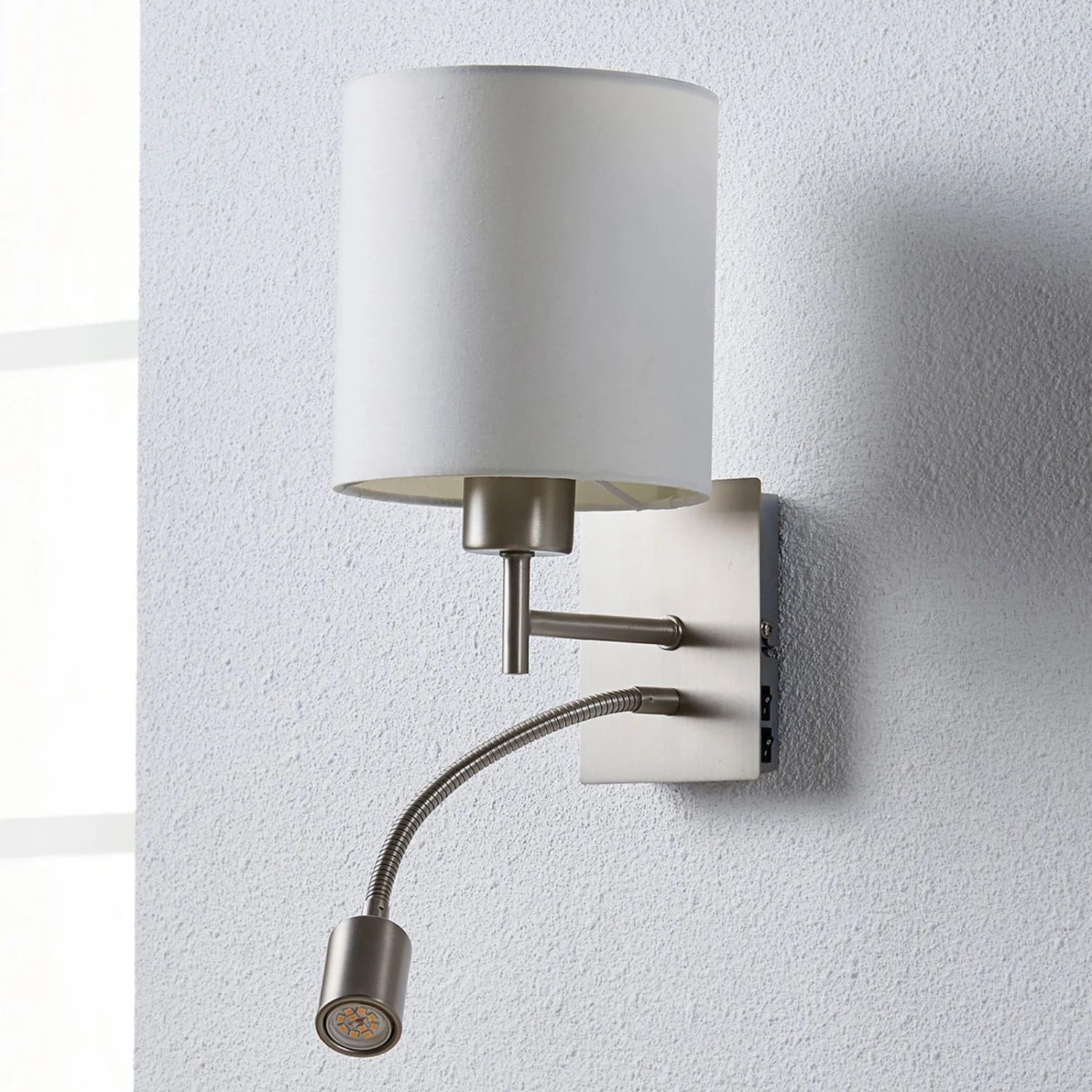 Eine schöne Ergänzung für Wohn- und Schlafzimmer: die Textilwandlampe Camilo mit eigenem LED-Leselicht