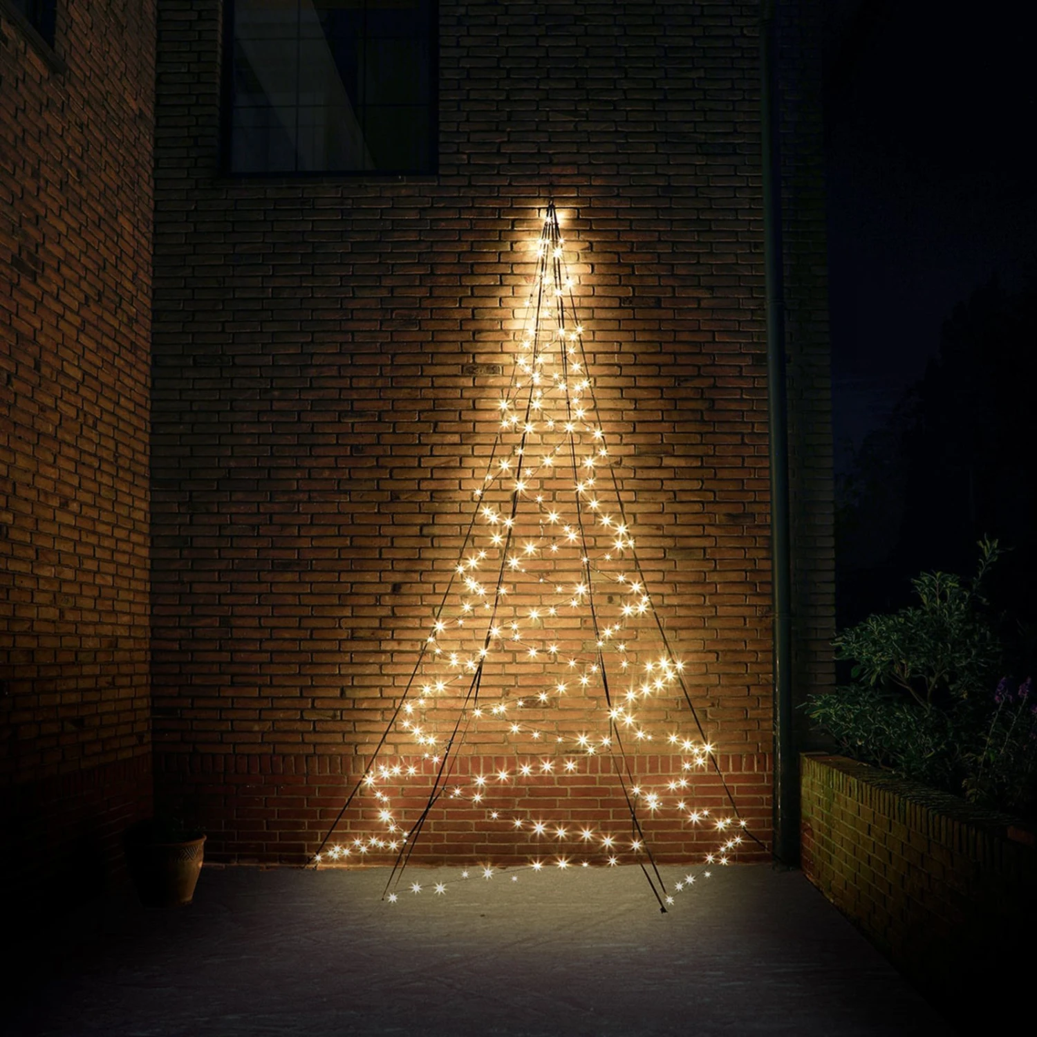 Der Wand-Weihnachtsbaum Fairybell® erzeugt mit einfachen Mitteln und wenig Platzbedarf eine unglaubliche Wirkung. An der Hauswand, einer Umzäunung oder auch an der Fassade eines gewerblichen Gebäudes platziert, entfaltet sich die Faszination dieses schönen Dekoaccessoires, sobald das Licht eingeschaltet wird und die zahlreichen LEDs ihr sanftes, warmweißes Licht erstrahlen lassen. Durch die Anordnung der Leuchtdioden entsteht eine geradezu magische Lichtwirkung. Mit wasserfestem Kabel aus Gummi bestückt.