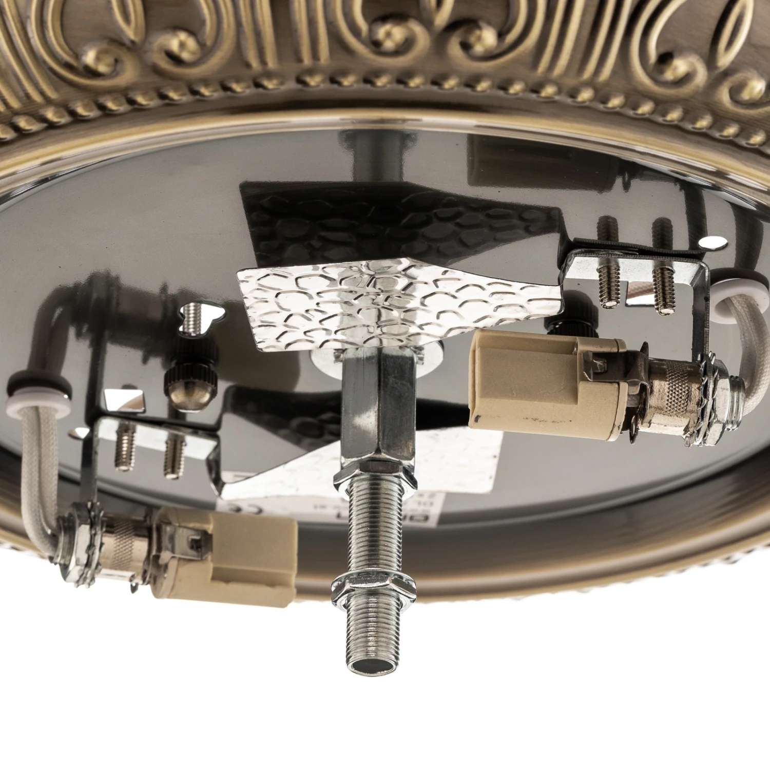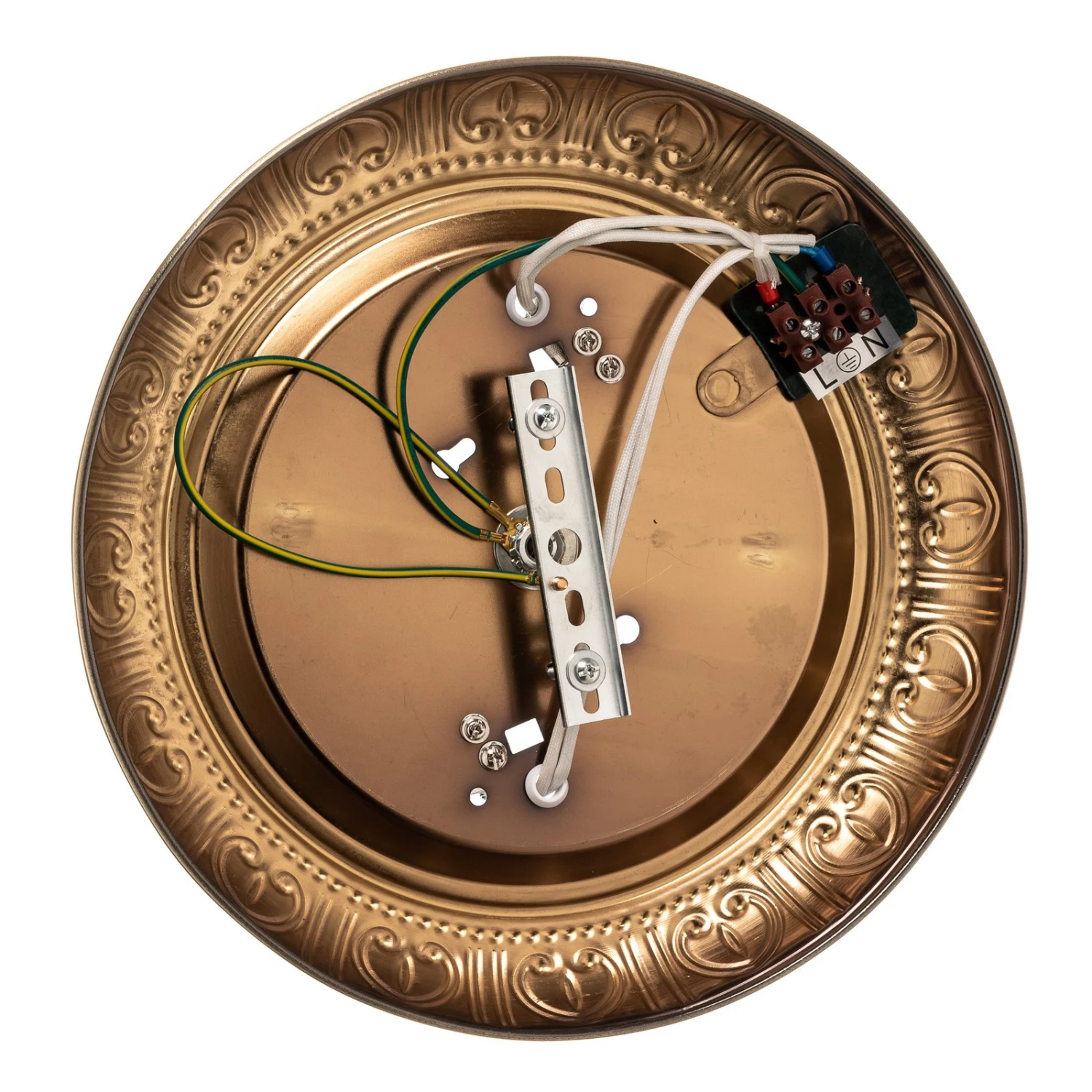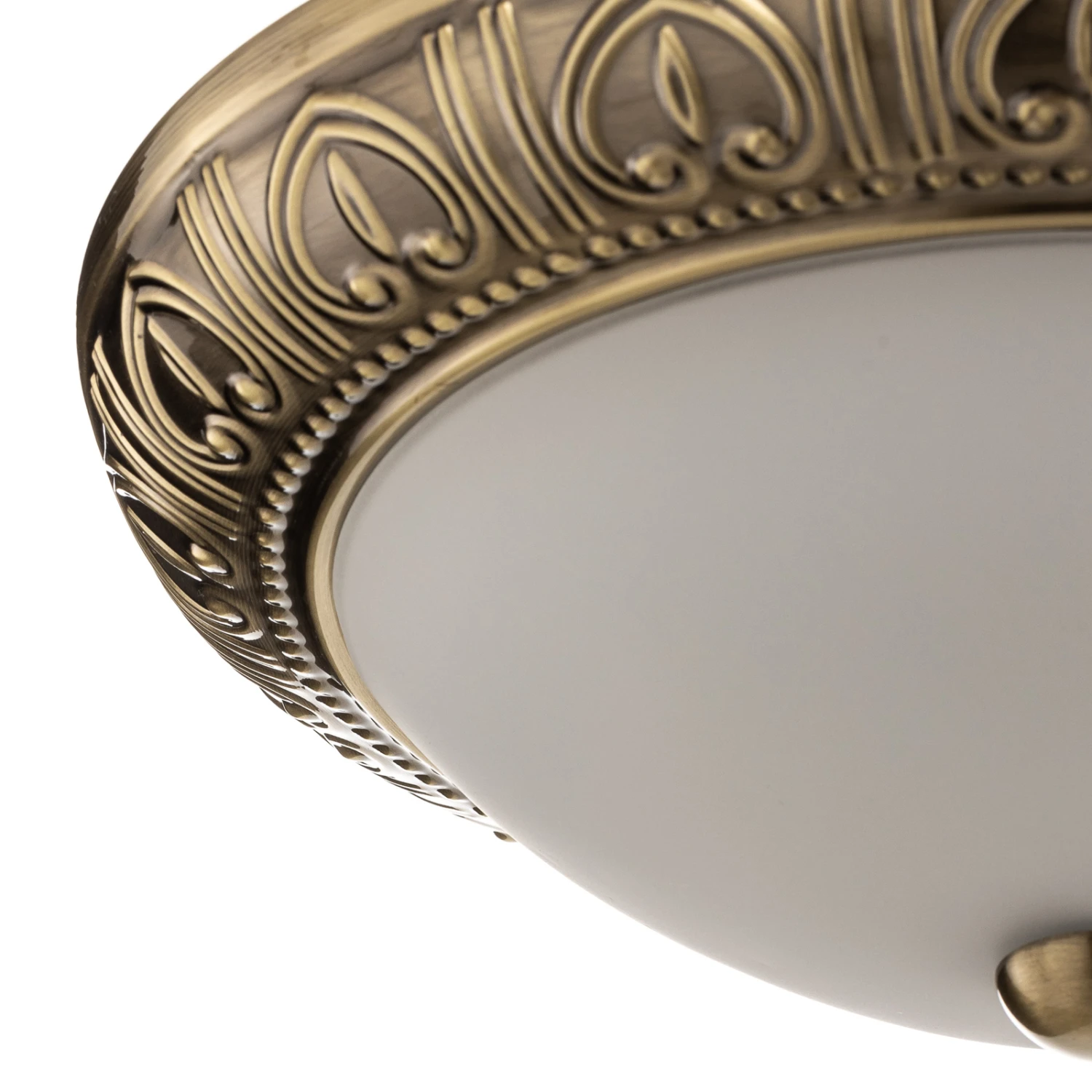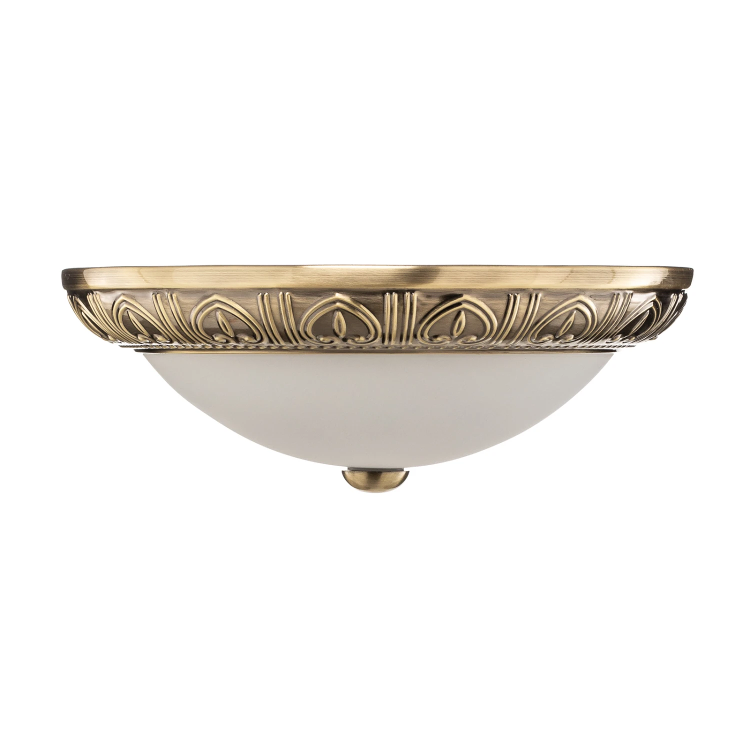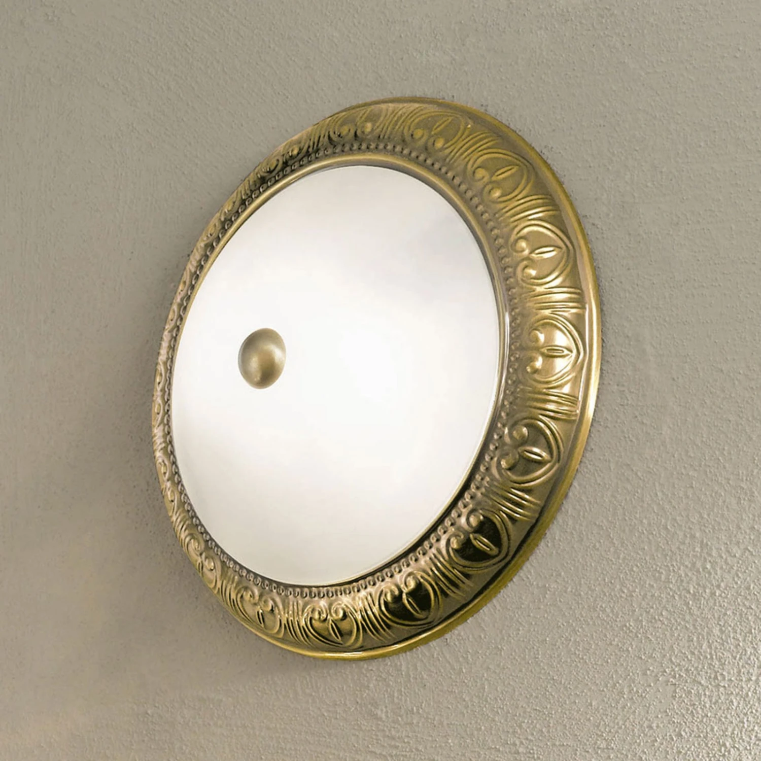 Dezent gestaltet und doch von unübersehbarer Präsenz ist die Deckenleuchte Lembit, deren weißes Opalglas von einer Armatur in Antikmessing umgeben ist, die mit einem fantasievollen Muster verziert ist. Das große Leuchtenglas sorgt für großflächige Lichtabgabe, die in jedem Wohnraum für eine adäquate Ausleuchtungt sorgt. Die Deckenleuchte Lembit ist auch zur Wandmontage geeignet.