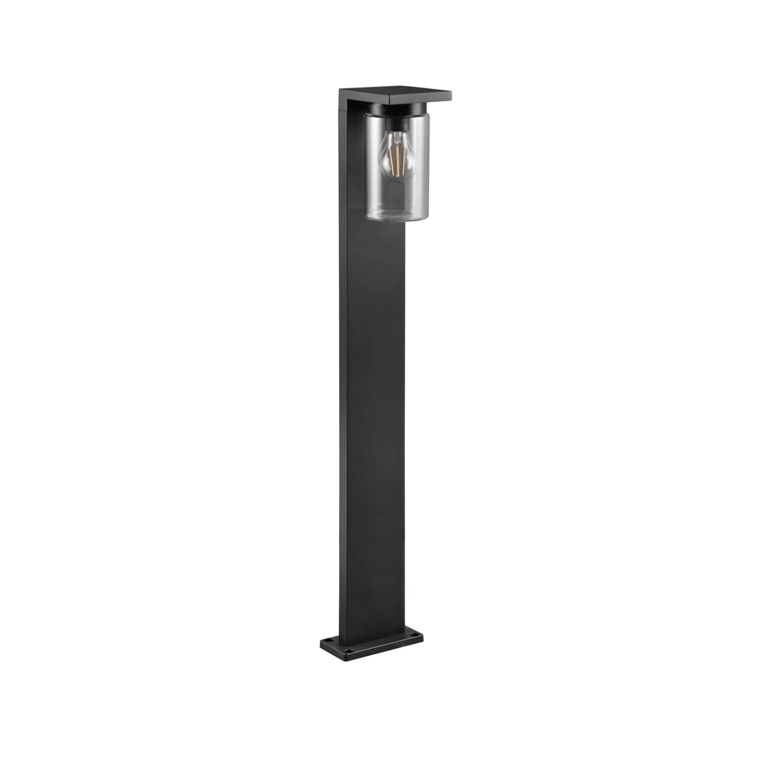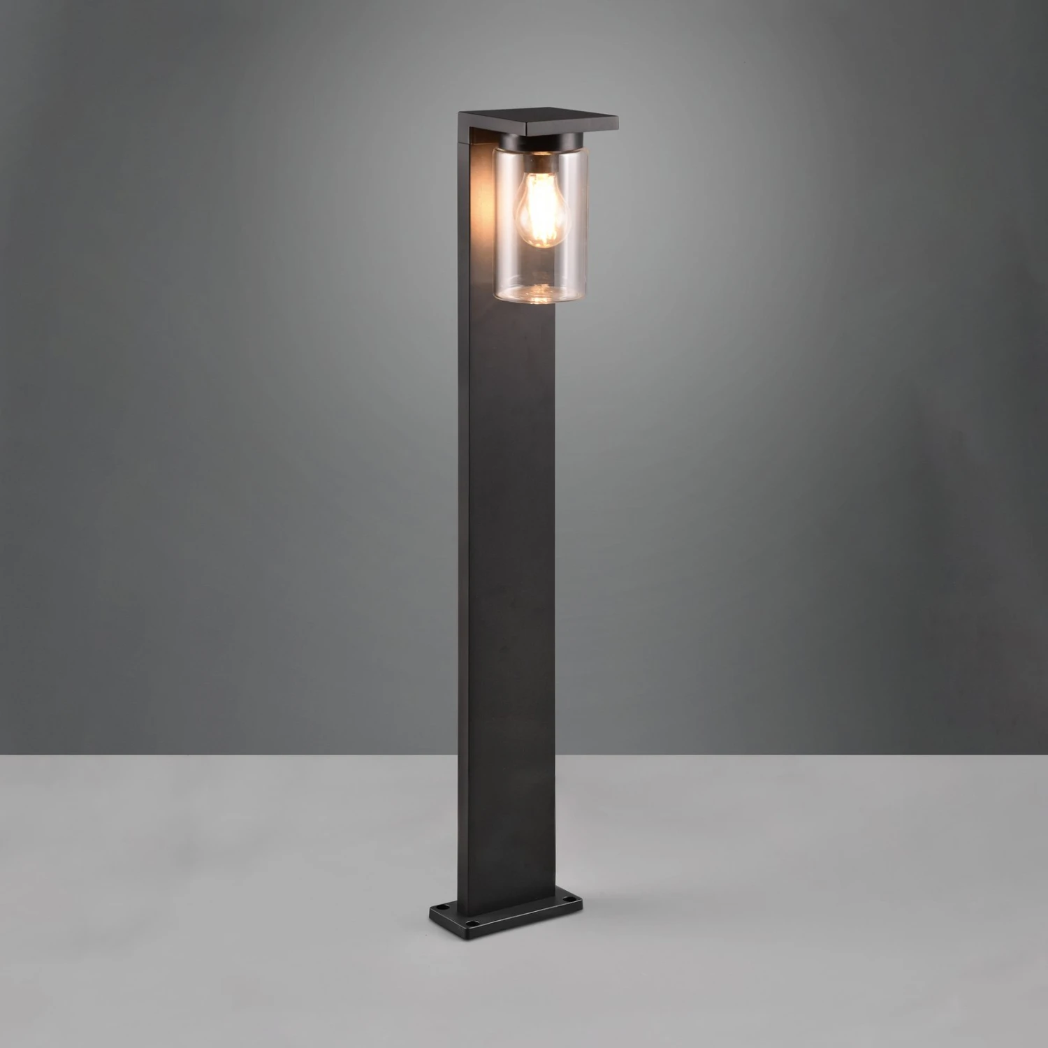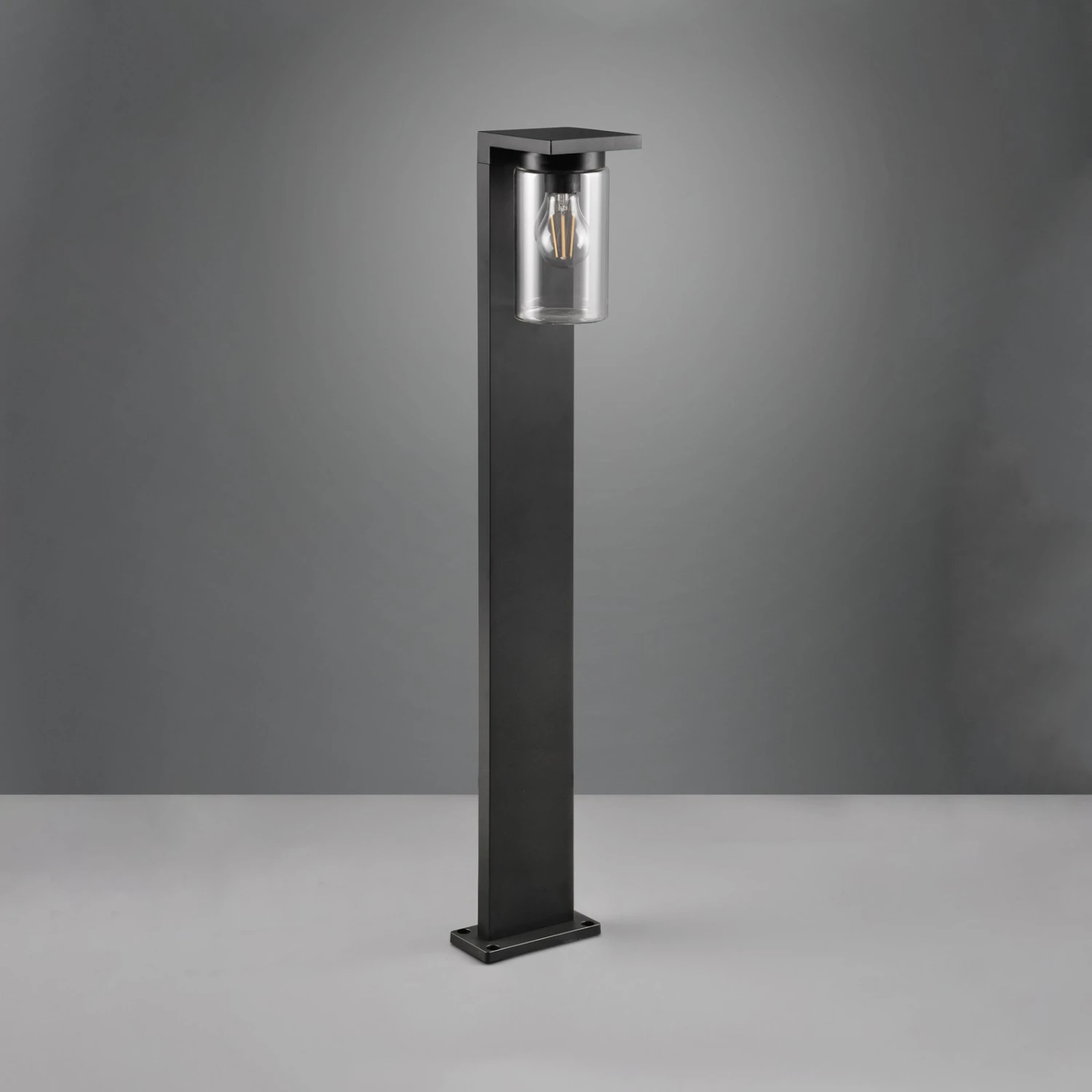 Der Schirm der Wegeleuchte Ardila wird aus klarem Glas gefertigt. Daher empfiehlt sich der Einsatz einer E27-Lampe mit sichtbaren Filamenten. Passende Leuchtmittel sind über das Zubehör separat erhältlich. Das Gehäuse besteht aus Aluminiumdruckguss und ist in einem matten Schwarz lackiert. Ardila ist gegen Spritzwasser geschützt und kann somit im Außenbereich verwendet werden. Der integrierte Dämmerungssensor lässt sich über einen Schalter am Gehäuse ein- und ausschalten.