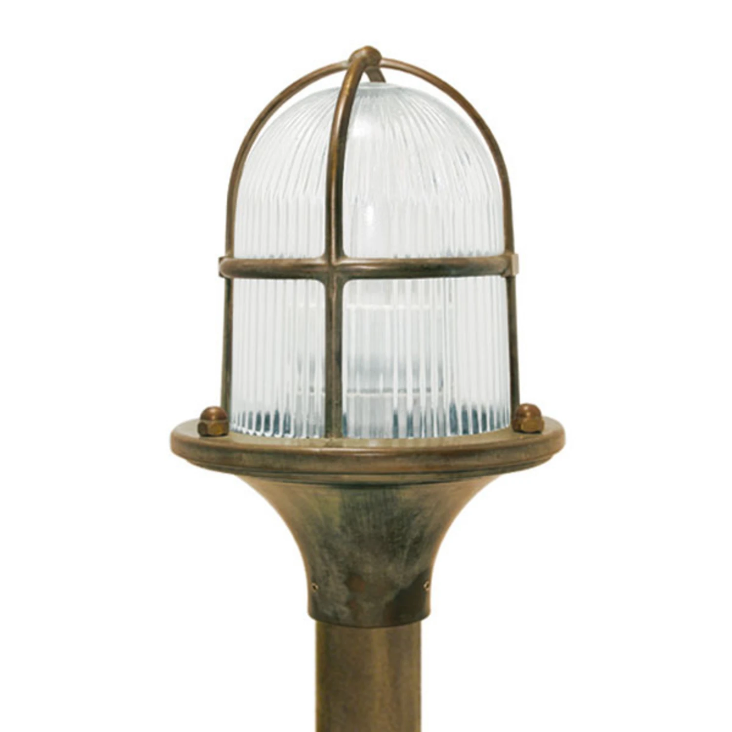 Die Wegeleuchte Ocean bietet eine solide Beleuchtung für den Außenbereich. Das Gestell aus Messing bietet dabei hohe Stabilität und eine gute Halterung für das große Glas. Dieses ist transparent und lässt das Licht großzügig austreten, wodurch die Leuchte als Wegeleuchte gut geeignet ist. Das Design erinnert dabei insgesamt dem Namen entsprechend an Leuchten aus dem maritimen Bereich.